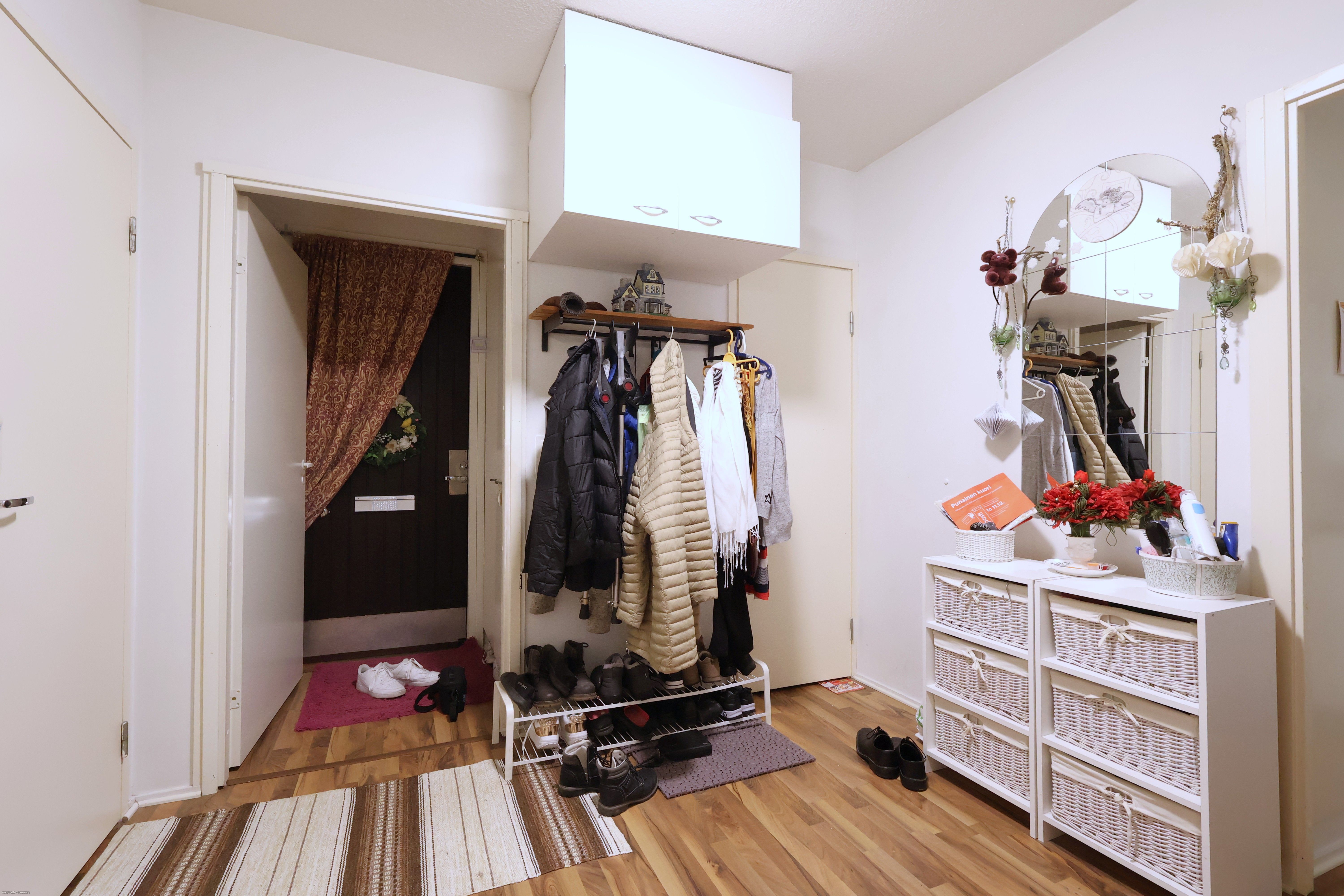 Hyväpohjainen asunto, jossa tehokkaasti käytetty neliöt ja tilava kylpyhuone. Lattioissa laminaatti, seinät siistit, kylpyhuoneessa laatta ja pesukoneliitäntä. Keittiöstä löytyy astianpesukone, mikä helpottaa arjen askareissa. Asunnossa on kaksi vaatehuonetta, joten tavaraa kyllä mahtuu. Reumantiellä asustelet kauniilla metsäisellä asuinalueella, missä on loisteliaat lenkkeilymahdollisuudet. Taloyhtiössä on sauna.