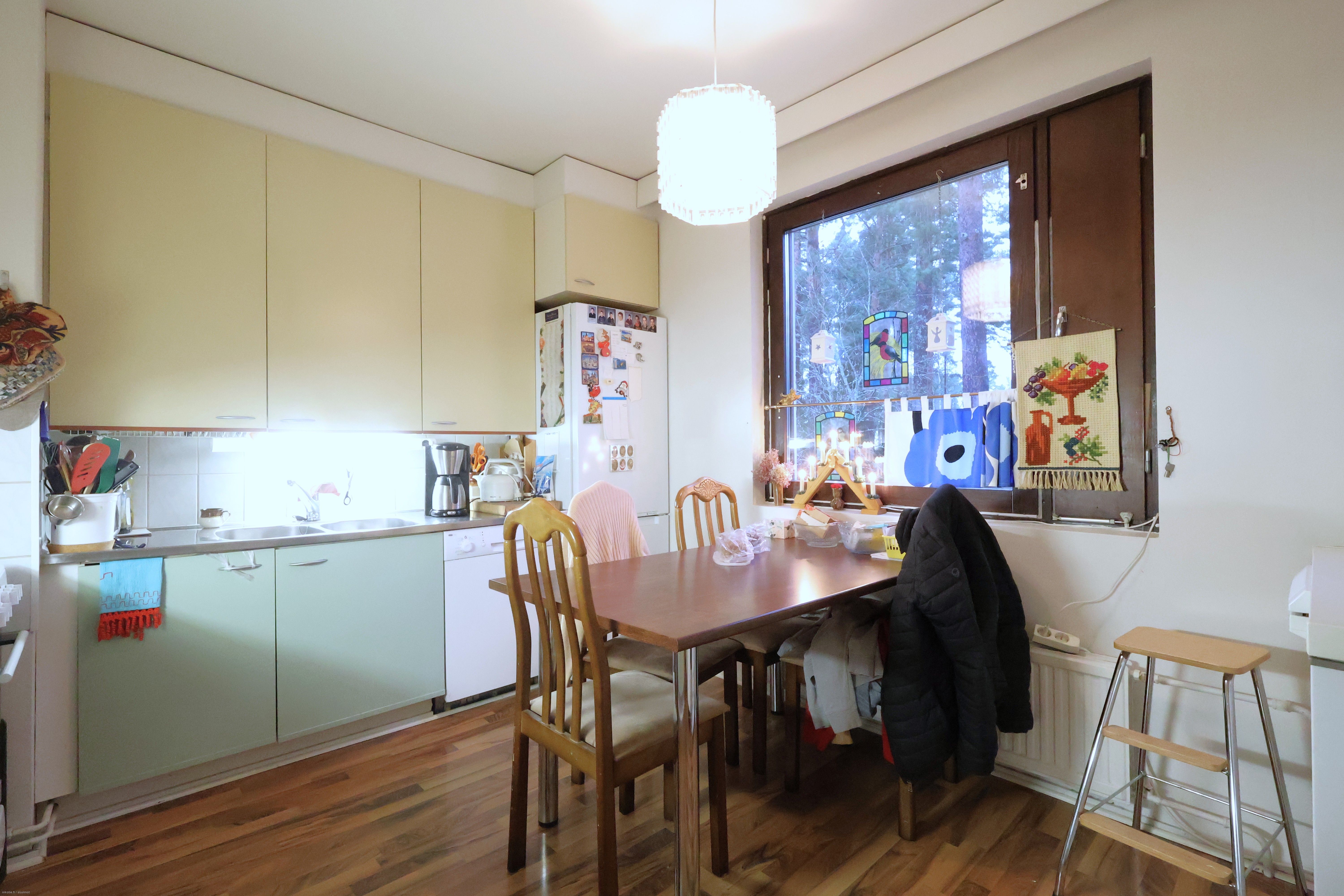 Vuokrattavana luhtitalon toisen kerroksen tilava kaksio ranskalaisella parvekkeella rauhallisella metsäisellä tontilla Kangasalan Pikonlinnassa.