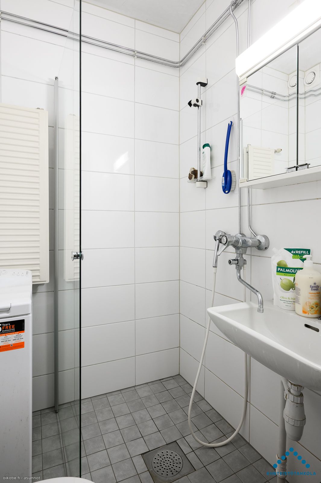 | Kylpyhuoneen varusteet | Varusteet: WC, Suihku, Pesukoneliitäntä, Suihkuseinä, Peilikaappi |