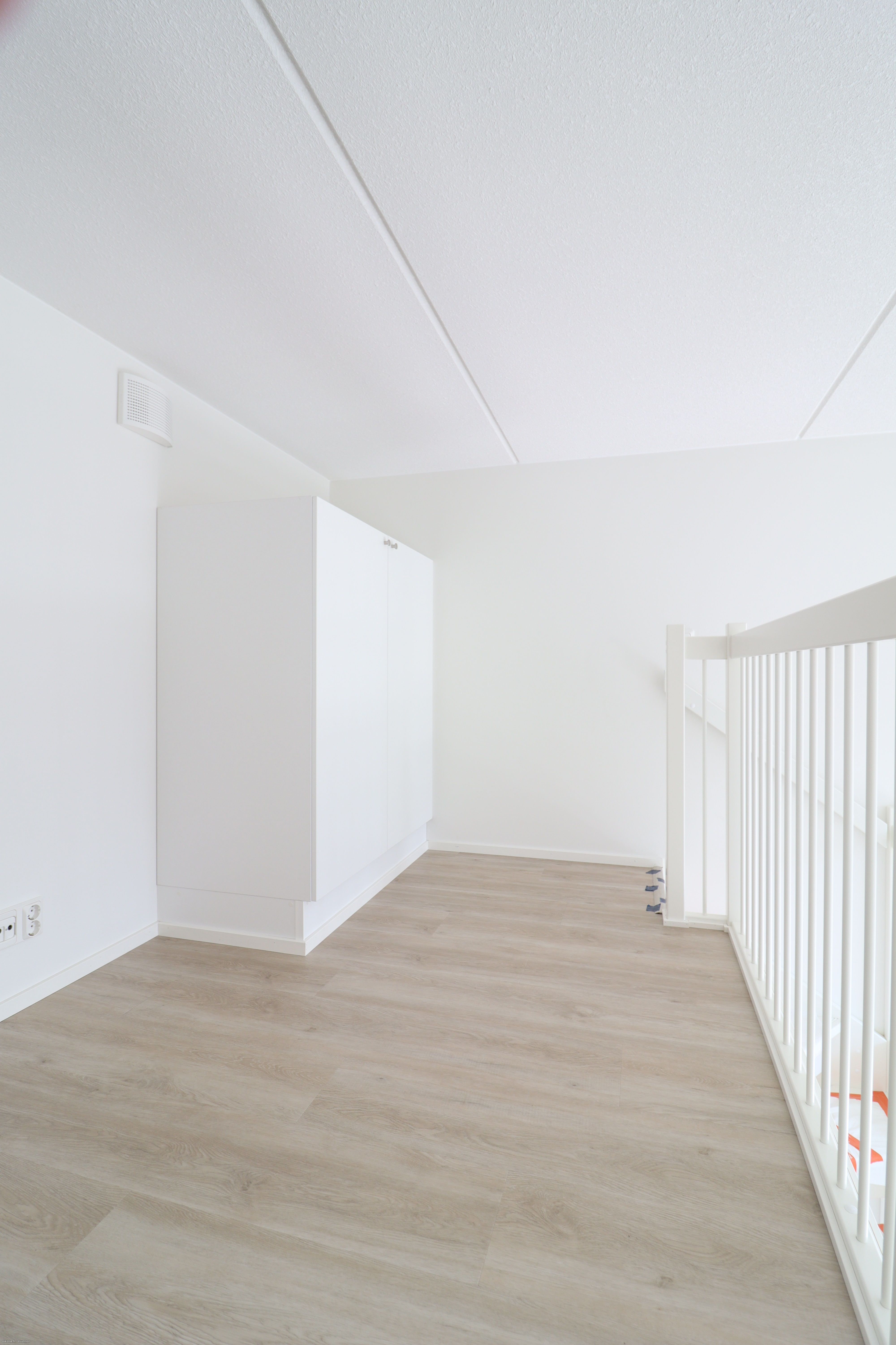 Tämän asunnon parhaita puolia ovat 7m2 parvi sekä 7,5m2 lasitettu parveke. Parven korkeus on n. 1,8m2, joten asumiseen tulee mukavasti lisätilaa. Asunnon lattiat vinyylilankkua ja seinät maalipinnoin. Lämmityksestä huolehtii vesikiertoinen lattialämmitys, joten patterit eivät olet haittaamassa sisustamista. Kylpyhuoneessa on liitäntämahdollisuus pesukoneelle.