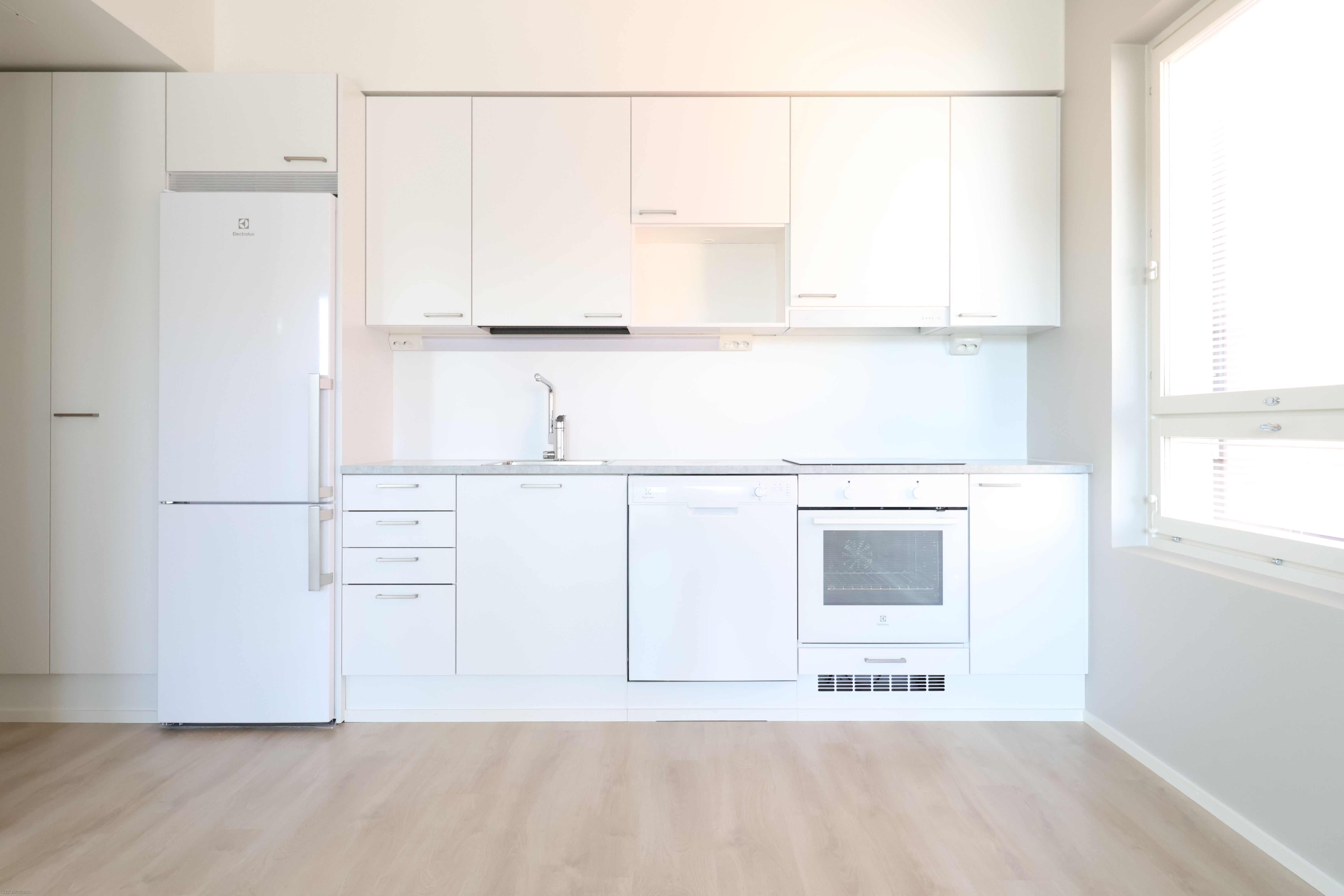 Tässä valoisassa asunnossa on hyvä pohjaratkaisu. Seinät ovat vaaleilla maalipinnoilla ja lattiana on puunsävyinen laminaatti. Keittiön varusteluun kuuluu astianpesukone, uuni, liesi sekä jääkaappi-pakastin. Kylpyhuoneesta löytyy paikka ja liitännät pesukoneelle. Asunnon makuuhuoneista löytyy kiinteät vaatekaapit. Asumismukavuutta tuo lasitettu parveke ja keskusilmanvaihto-viilennyksellä!