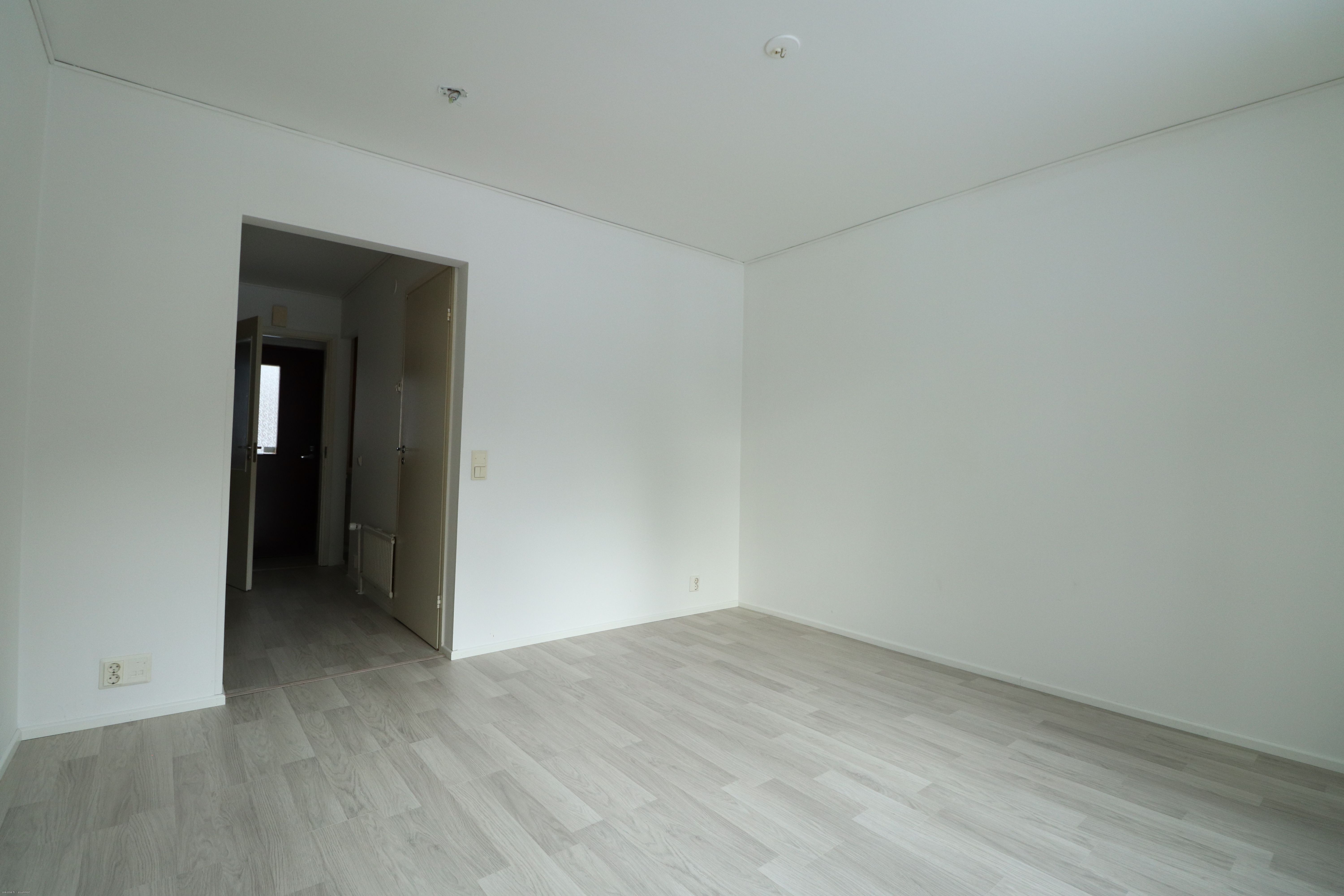 Tähän kotiin on tehty pientä pintaremonttia alkuvuodesta 2025, jossa maalattiin kaikki seinät valkoisella ja asennettiin vaalea laminaattilattia.