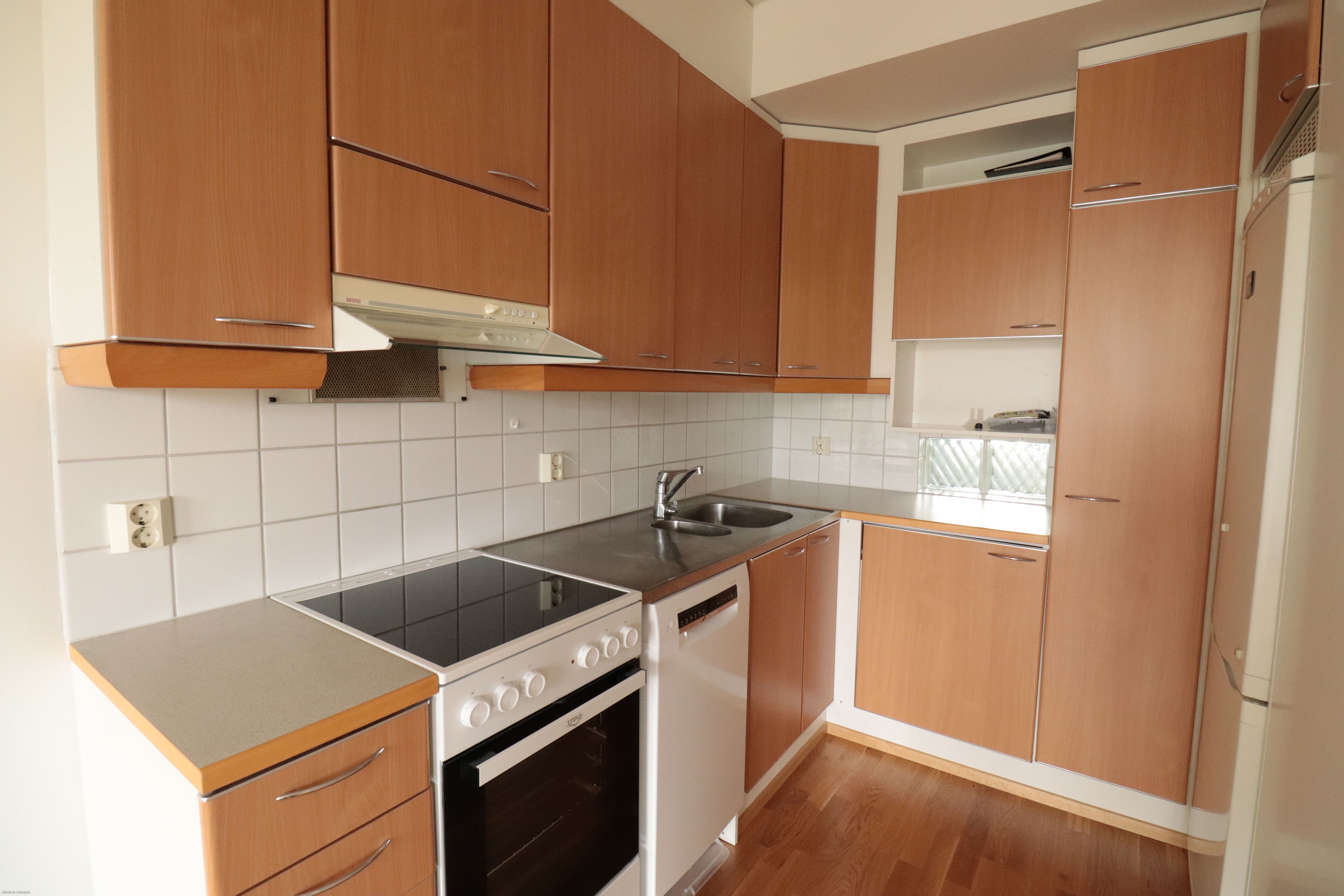 Tässä ylimmän (3/3) kerroksen asunnossa olohuoneen ja keittiön lattia laminaattia, seinät vaalein pinnoin. Keittiössä ajanmukaiset varustelut, kuten astianpesukone, uuni/hella, jääkaappipakastin sekä reilusti kaappitilaa. Makuuhuoneessa muovimattolattia. Kauttaaltaan kaakeloidussa kylpyhuoneessa paikka ja liitännät pyykinpesukoneelle. Oma sauna ja parveke lisäämässä asumismukavuutta. Parvekkeelta näet jopa merelle asti. Eteisessä hyvin säilytystilaa sekä valmiina peili.