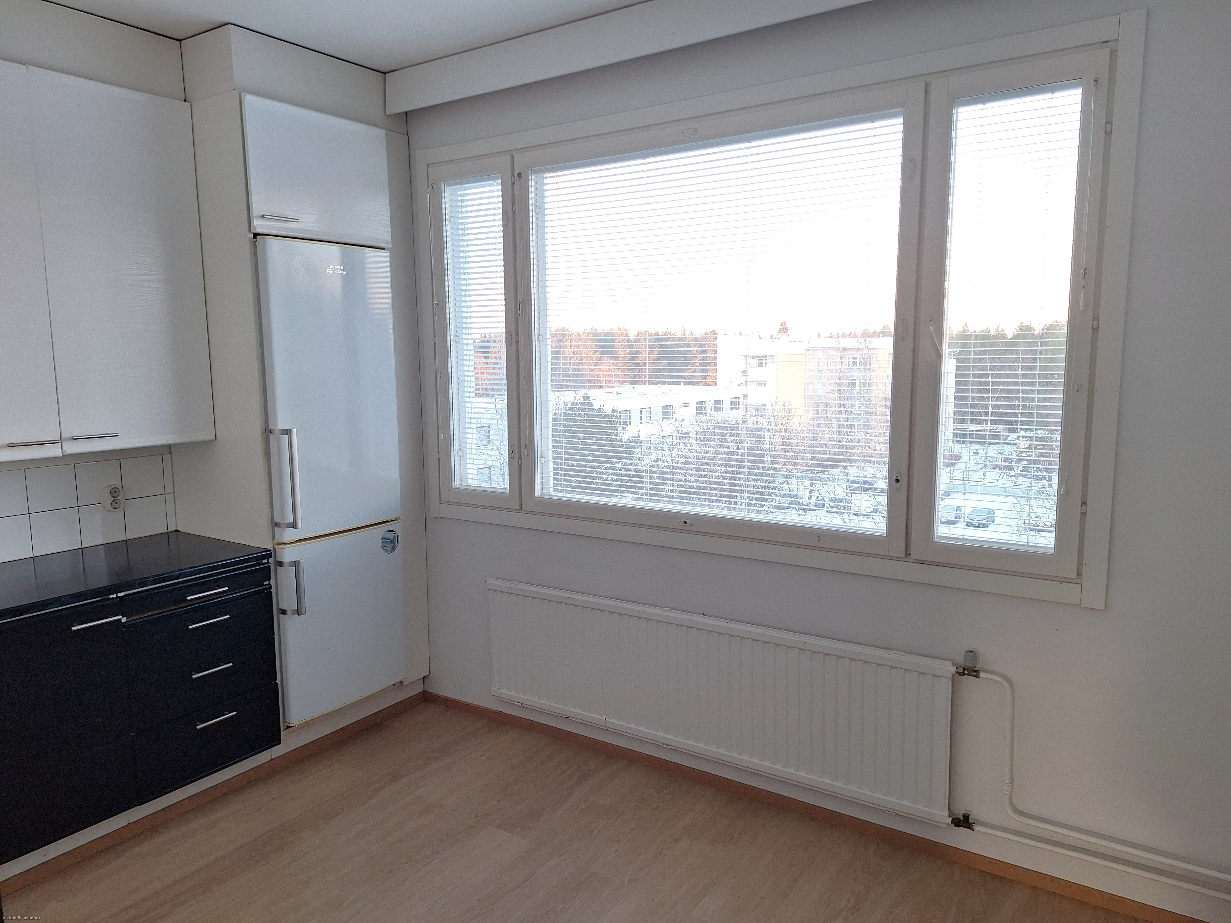 Vuokrattavana viidennen 5/8 kerroksen iso kaksio Rajakylästä hienoilla näkymillä! Asunto on pinnoiltaan oikein hyvässä kunnossa, lattiassa laminaattia ja seinät maalipinnoin. Keittiössä varusteluna liesi ja jääkaappipakastin. Kylpyhuone on kaakeloitu ja sieltä löytyy kylpyammeen lisäksi paikka ja liitäntä pyykinpesukoneelle.