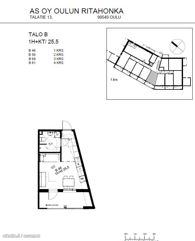 | Huoneiston kokoonpano | B80 1h,kt,wc,lasparv |