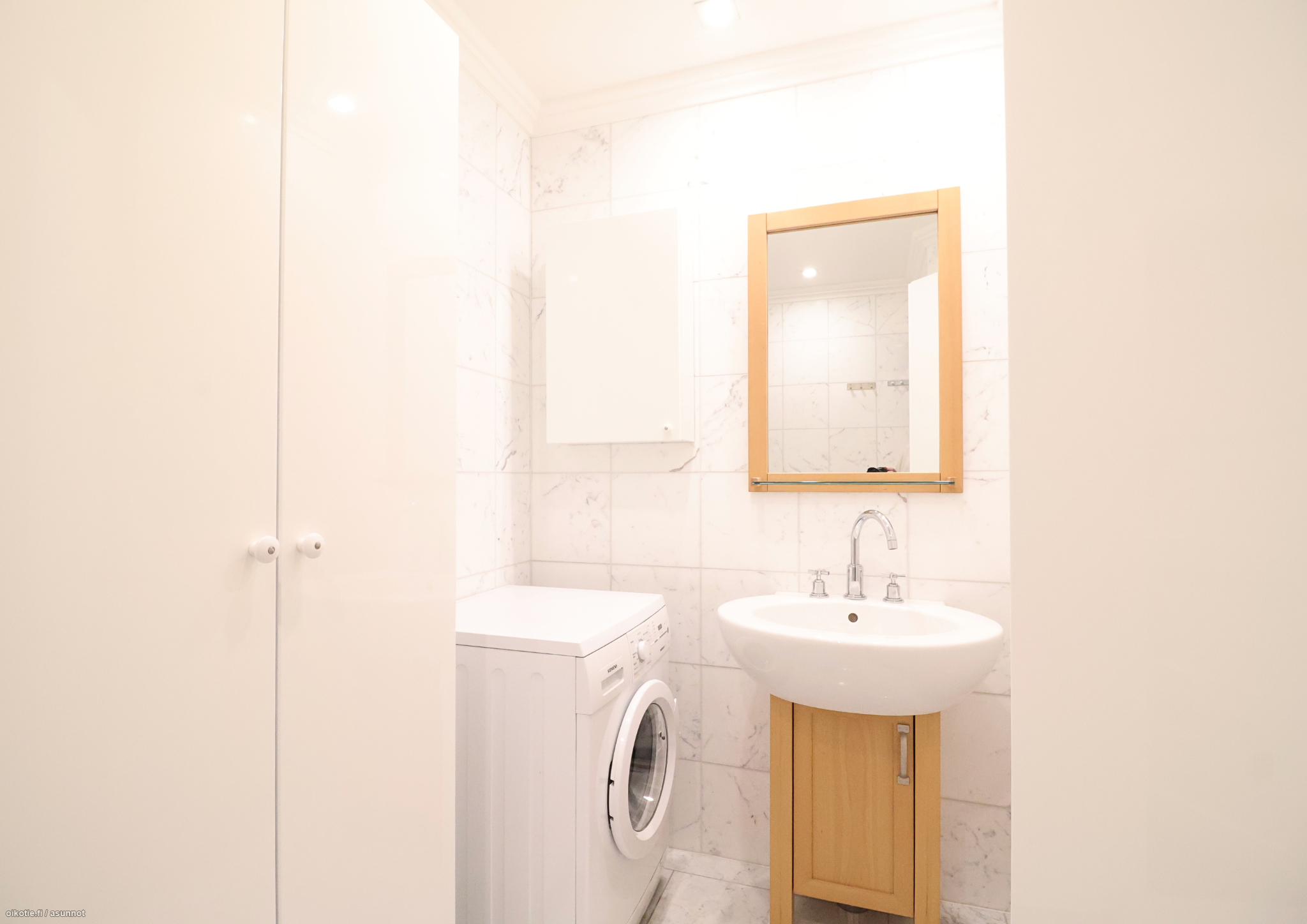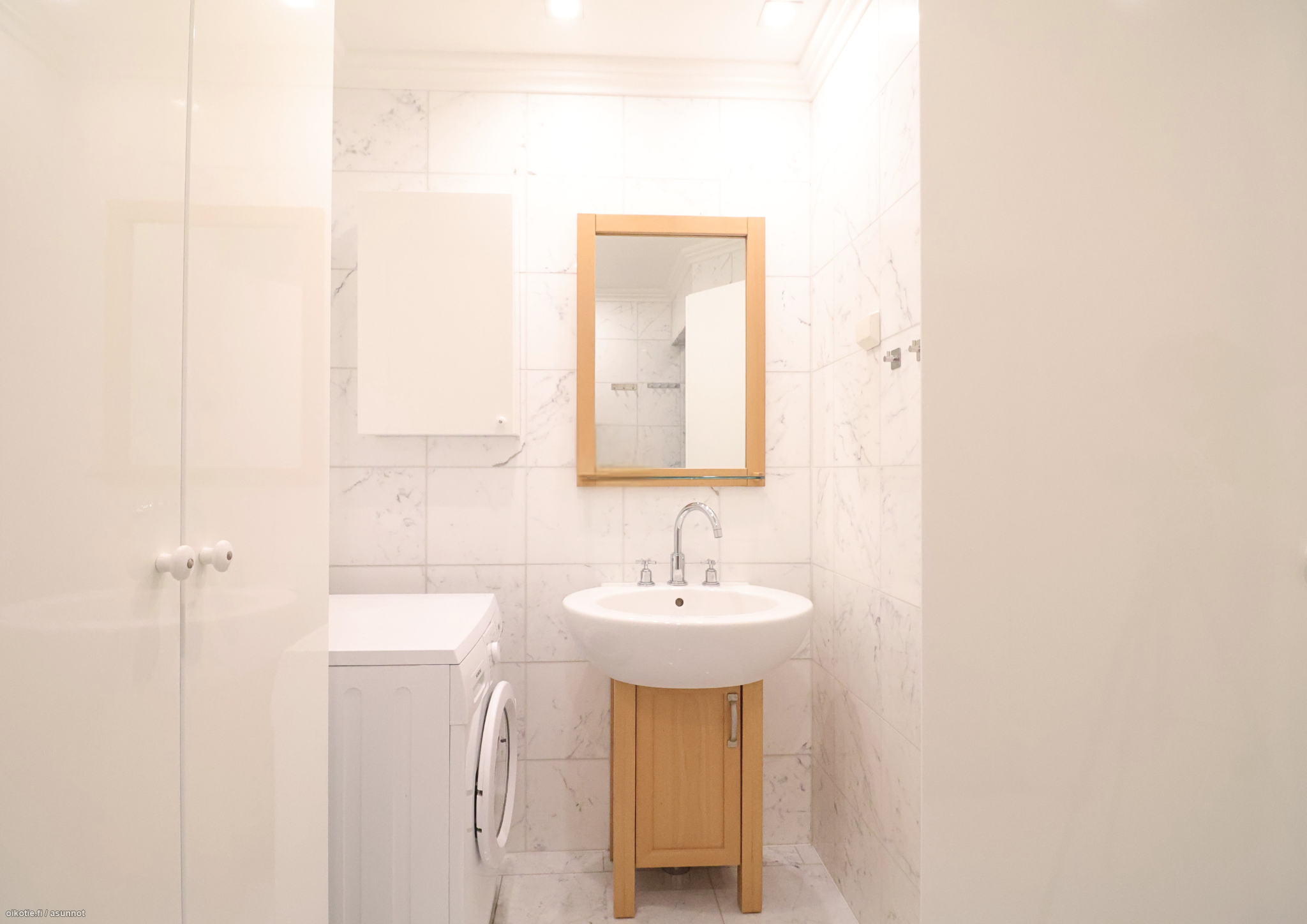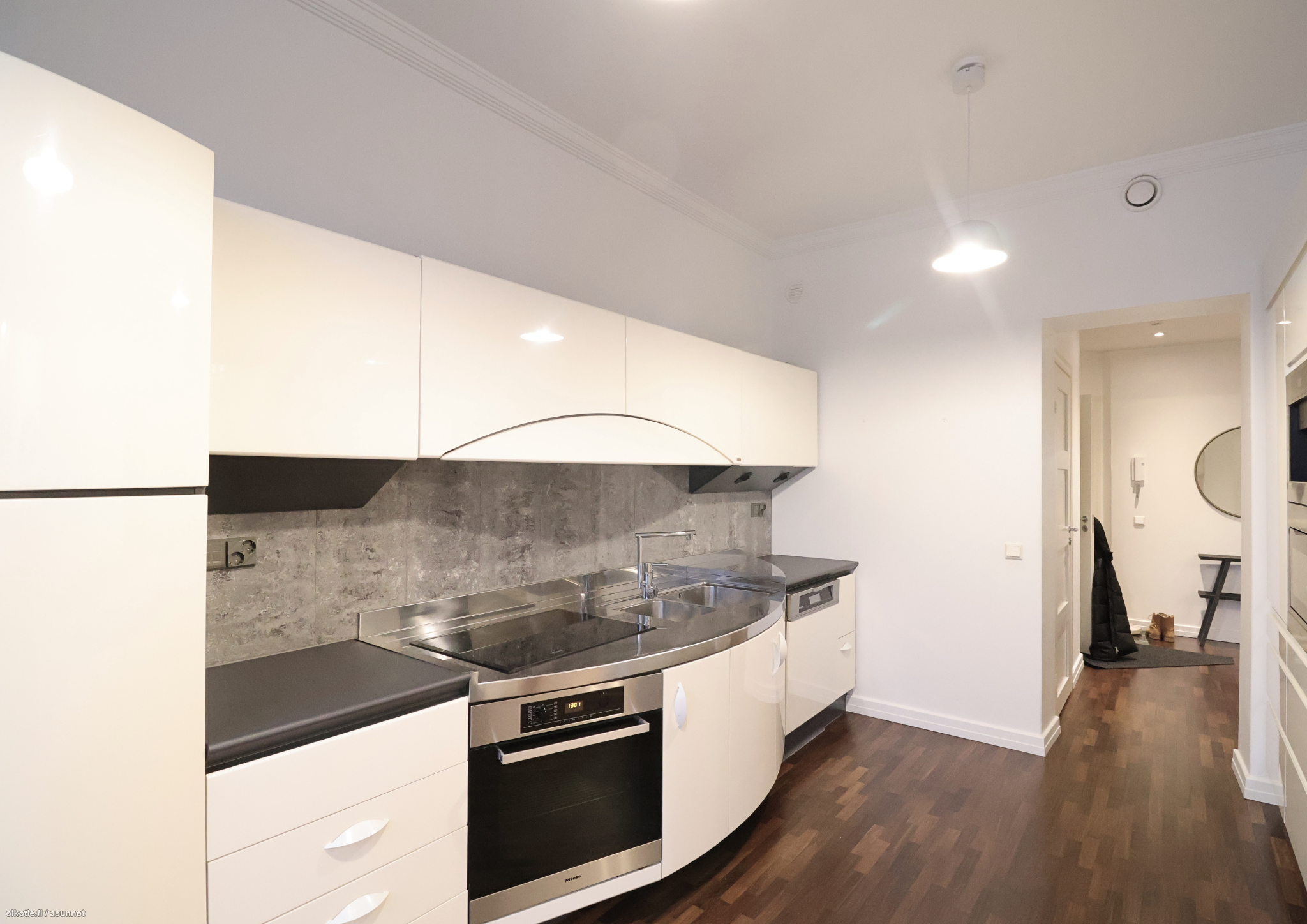 Asunto on upeassa kunnossa. Seinät ovat vaaleaksi maalatut ja lattia on kaunis tummanruskea. Keittiö on ainutlaatuinen uniikeilla keittiökalustevalinnoillaan. Varusteluun kuuluu muun muassa uuni ja liesi, astianpesukone, jääkaappipakastin, mikro, kahvikone sekä viinikaappi. Kaappitilaa löytyy runsain määrin. Kaunis ja tilava olohuone tarjoaa ihanat merimaisemat suurista ikkunoistaan. Takka toimii upeana sisustuselementtinä, sekä tuo tunnelmaa. Asunnossa on erillinen vessa ja saunallinen kylpyhuone. Kylpyhuone on remontoitu upeaan kuntoon. Sauna on tilava ja tuo luksusta arkeen. Kylpyhuoneessa tilavaraus ja liitännät pyykinpesukoneelle. Makuuhuoneen seinät ovat maalattu lempeän vihreiksi ja makuuhuoneen näkymä osoittaa talon rauhalliselle sisäpihalle. Makuuhuoneesta löytyy tilava vaatehuone tuomassa lisää säilytystilaa. Myös eteisestä löytyy riittävästi säilytystilaa suurien liukuovikaappien ansiosta.