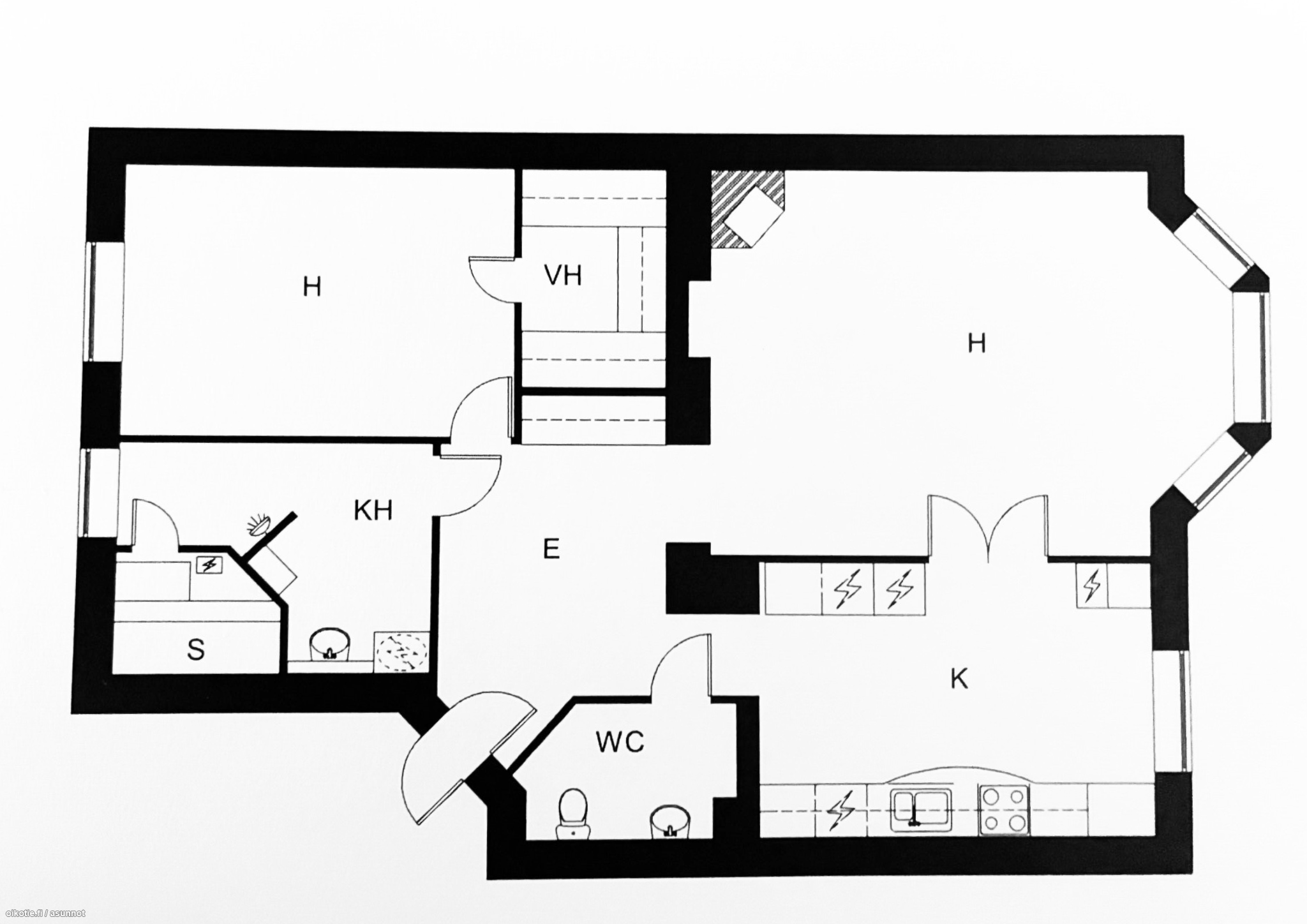 | Huoneiston kokoonpano | 2h,k,s |