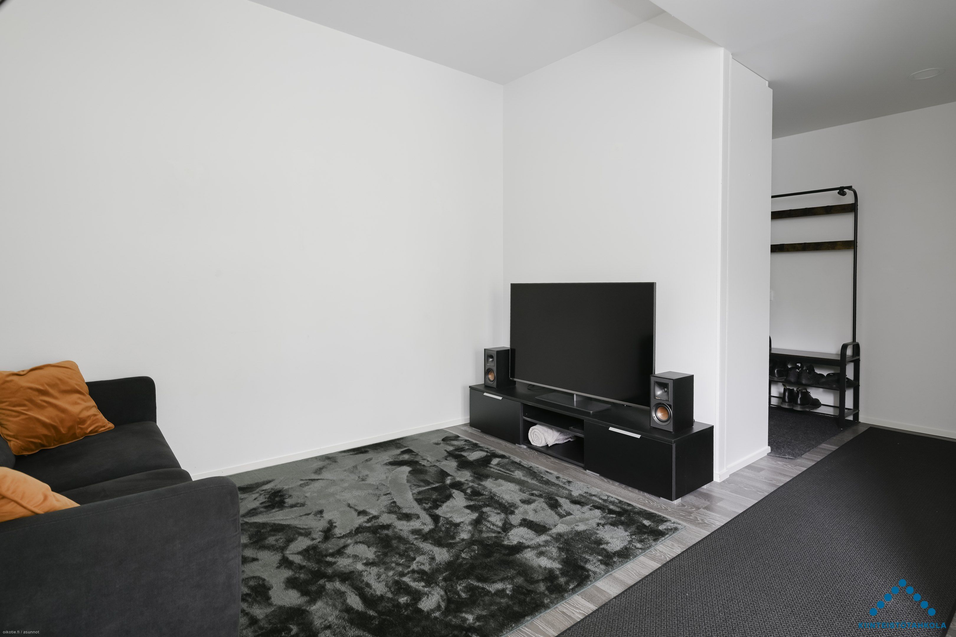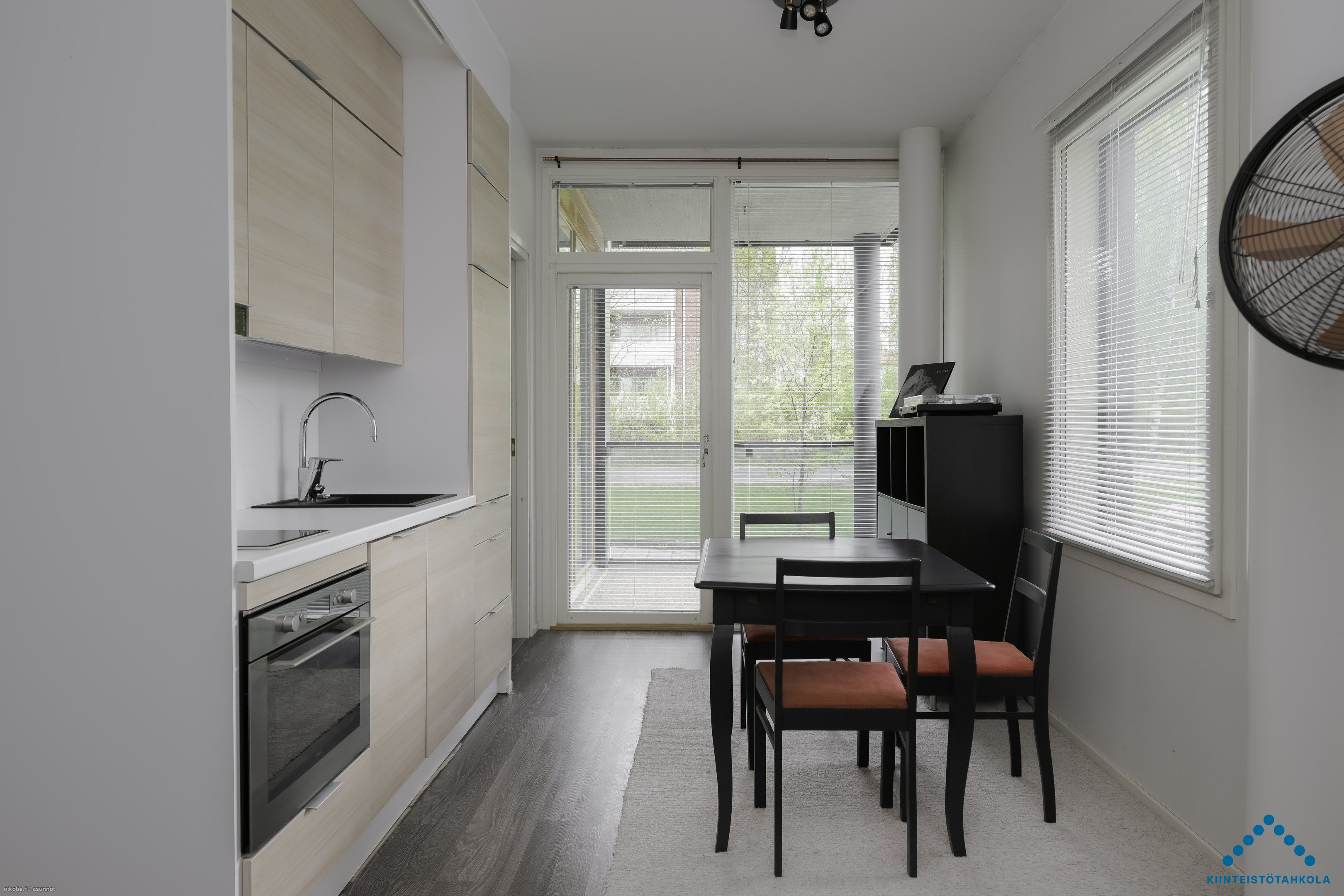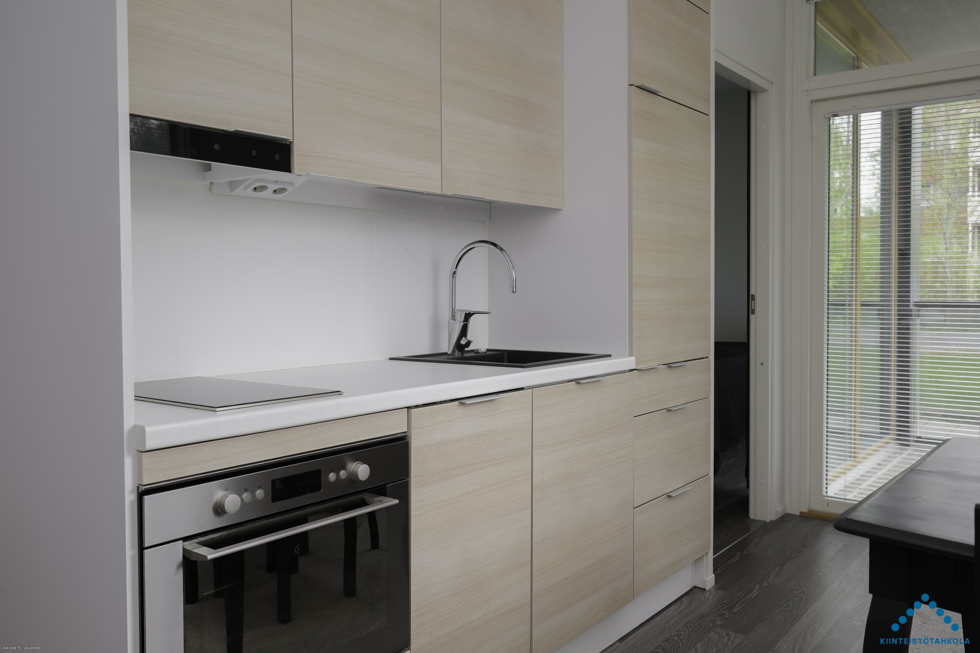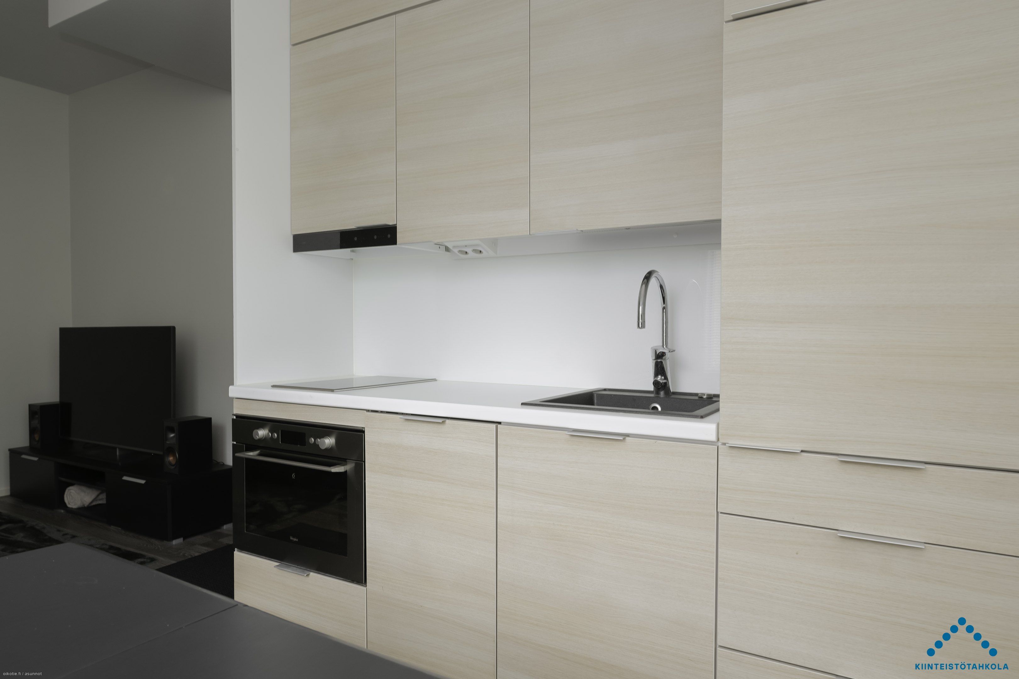 Asunnossa laminaattilattia ja seinät vaalealla maalipinnalla. Asunnossa on parveke, ja ikkunoissa sekä parvekeovissa on sälekaihtimet. Keittiössä jääkaappi pakastelokerolla ja astianpesukone sekä yhdistelmäuuni, joka toimii niin uunina kuin mikronakin. Kylpyhuoneessa tilaa ja liitäntä pyykinpesukoneelle. Asunnon kuivissa tiloissa vesikiertoinen lattialämmitys ja kylpyhuoneessa sähköinen lattialämmitys.