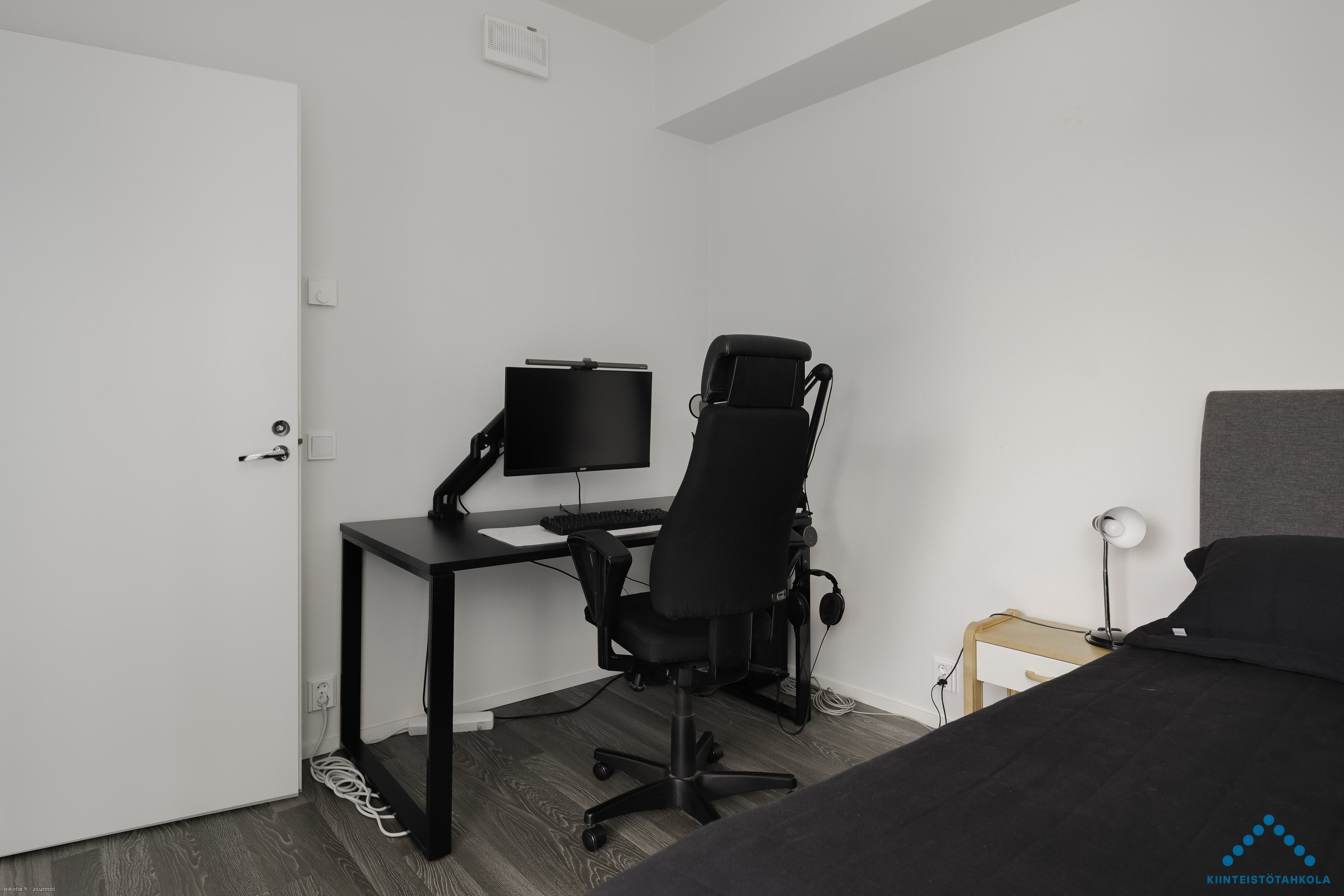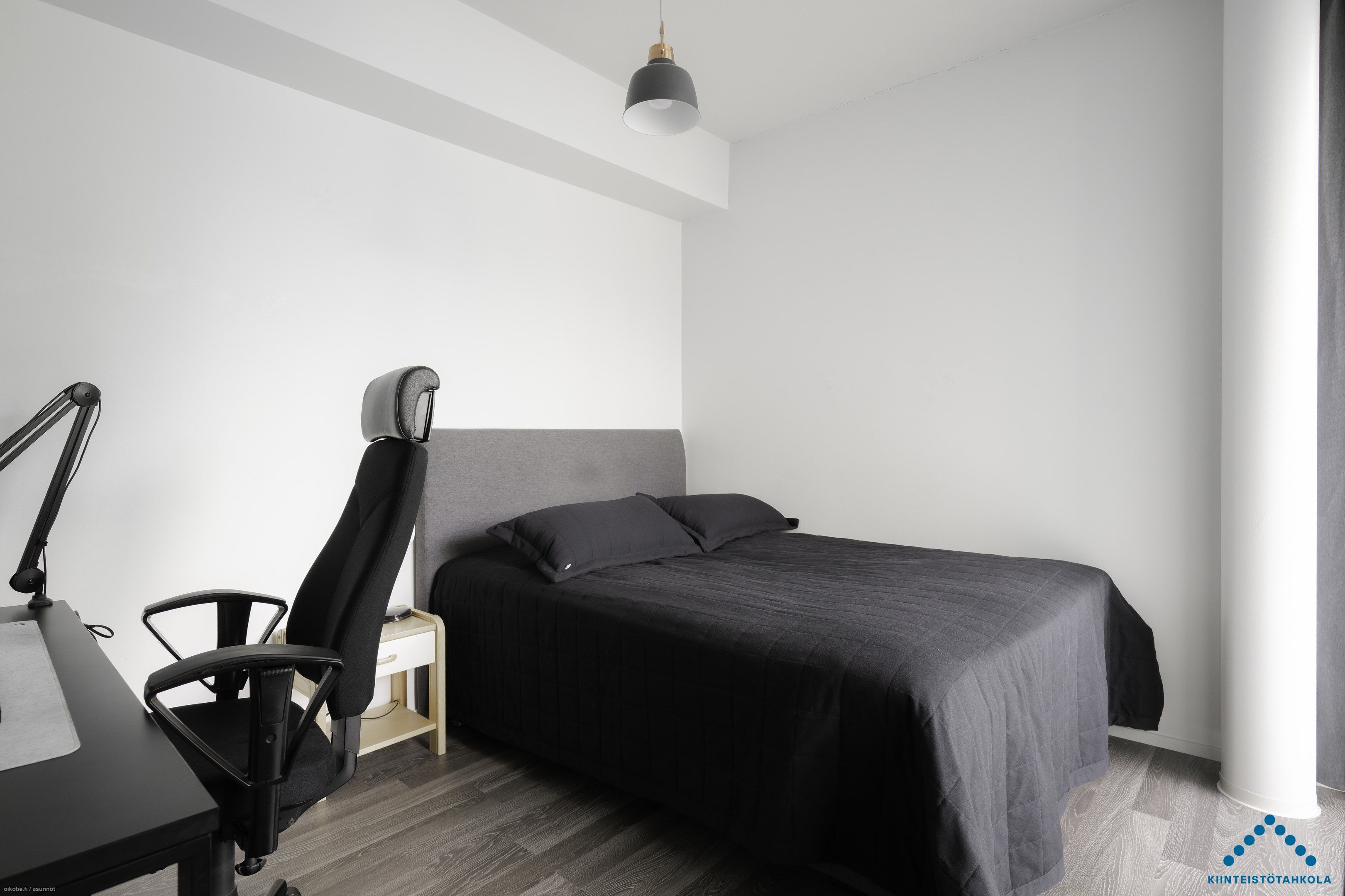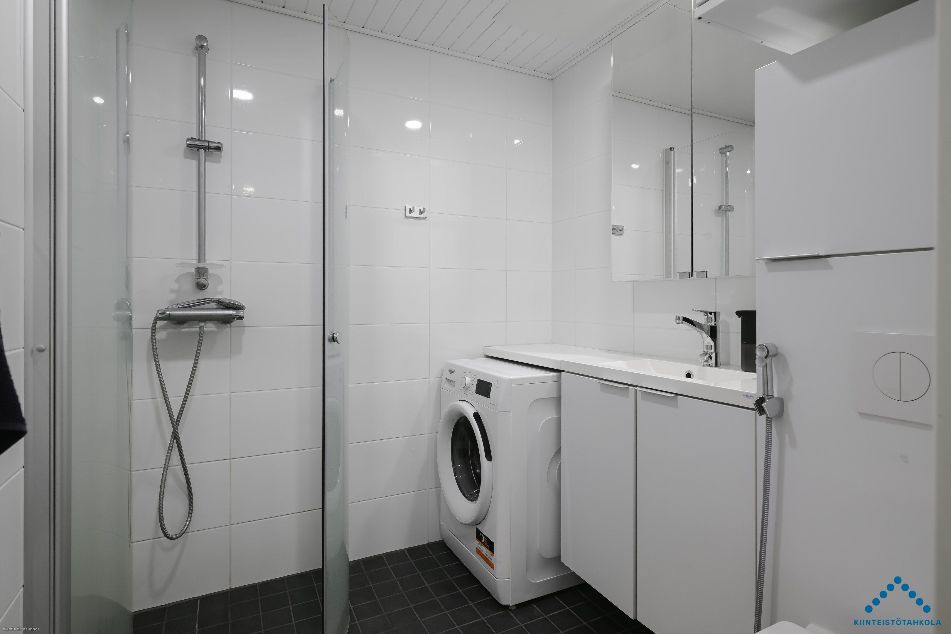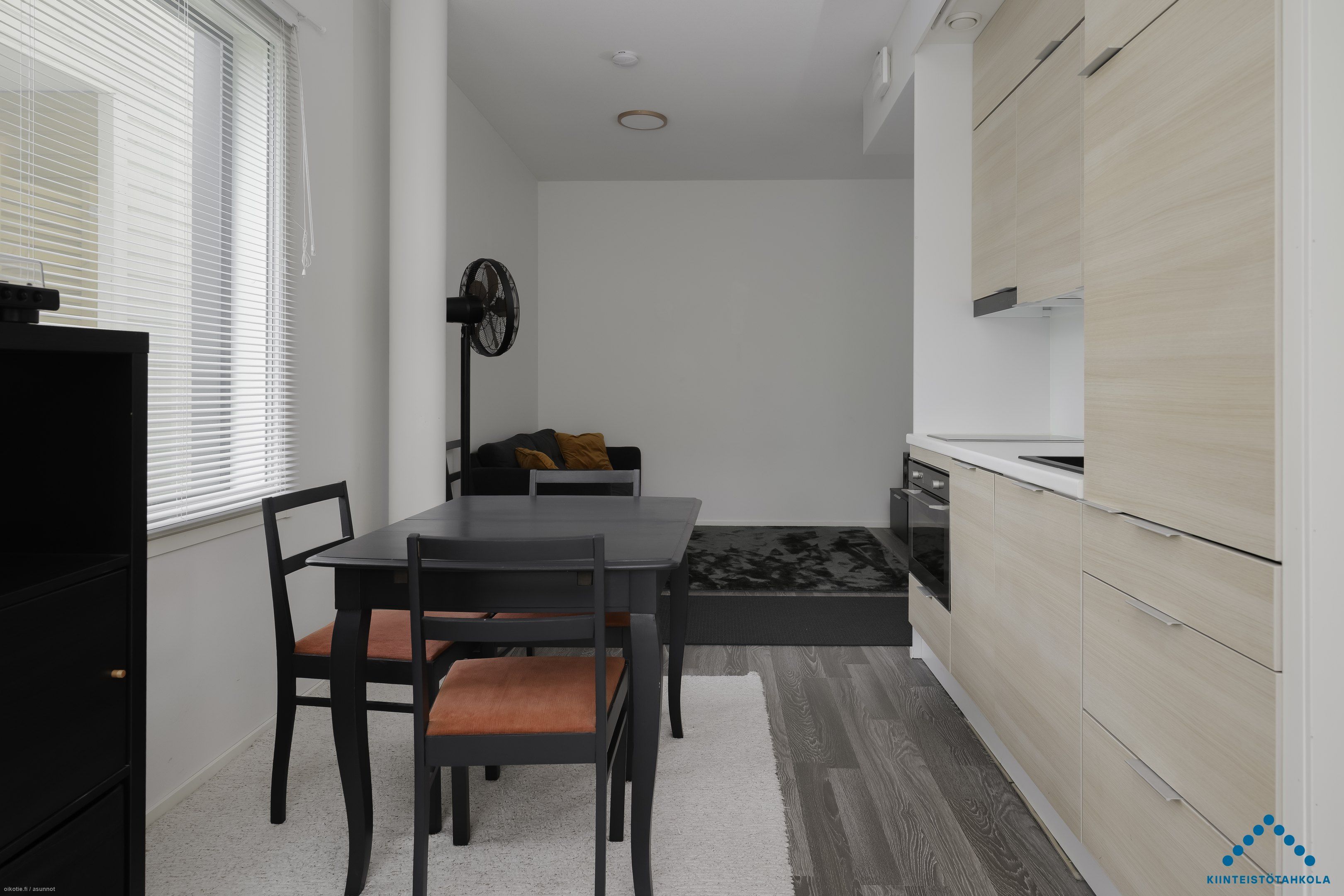 Asunnossa laminaattilattia ja seinät vaalealla maalipinnalla. Asunnossa on parveke, ja ikkunoissa sekä parvekeovissa on sälekaihtimet. Keittiössä jääkaappi pakastelokerolla ja astianpesukone sekä yhdistelmäuuni, joka toimii niin uunina kuin mikronakin. Kylpyhuoneessa tilaa ja liitäntä pyykinpesukoneelle. Asunnon kuivissa tiloissa vesikiertoinen lattialämmitys ja kylpyhuoneessa sähköinen lattialämmitys.
