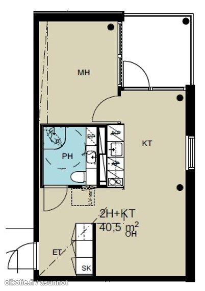 | Huoneiston kokoonpano | 2h+kt+parv. |
