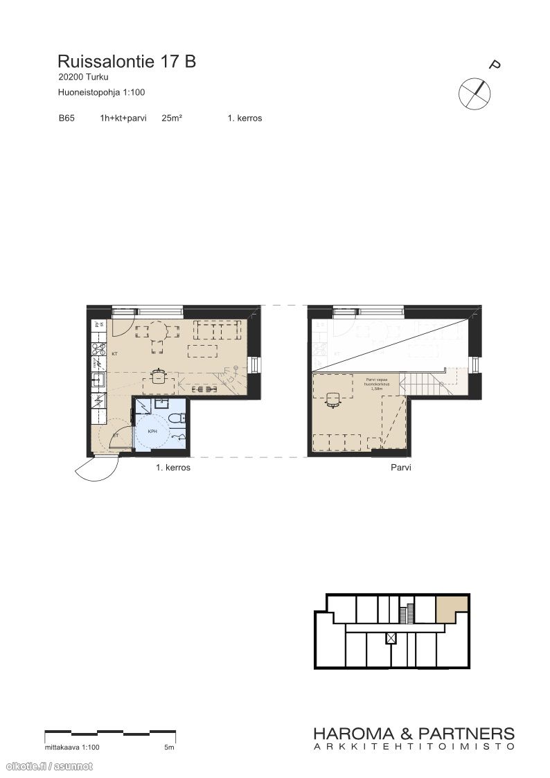 | Huoneiston kokoonpano | 1h+kt+parvi+rp |