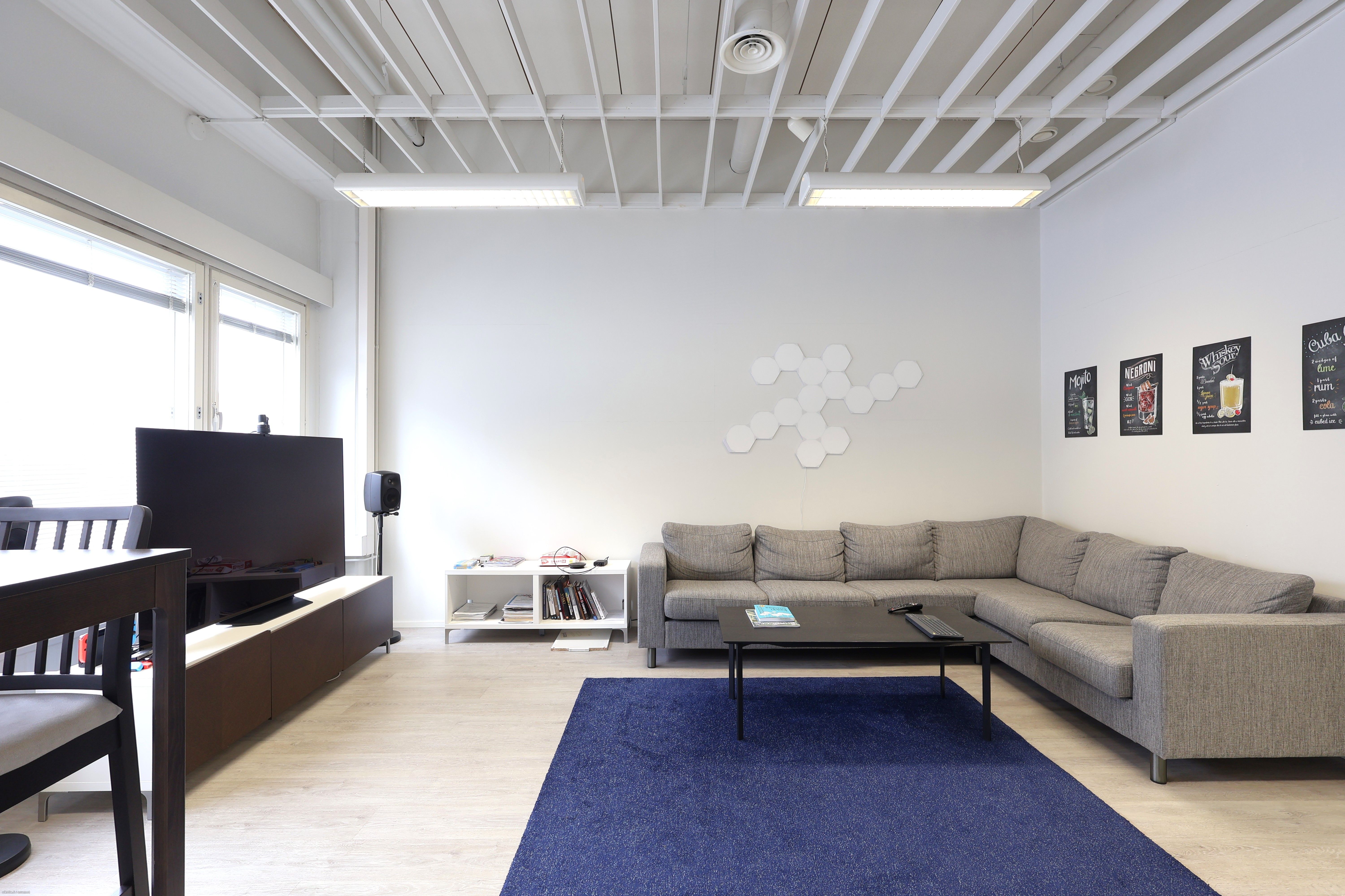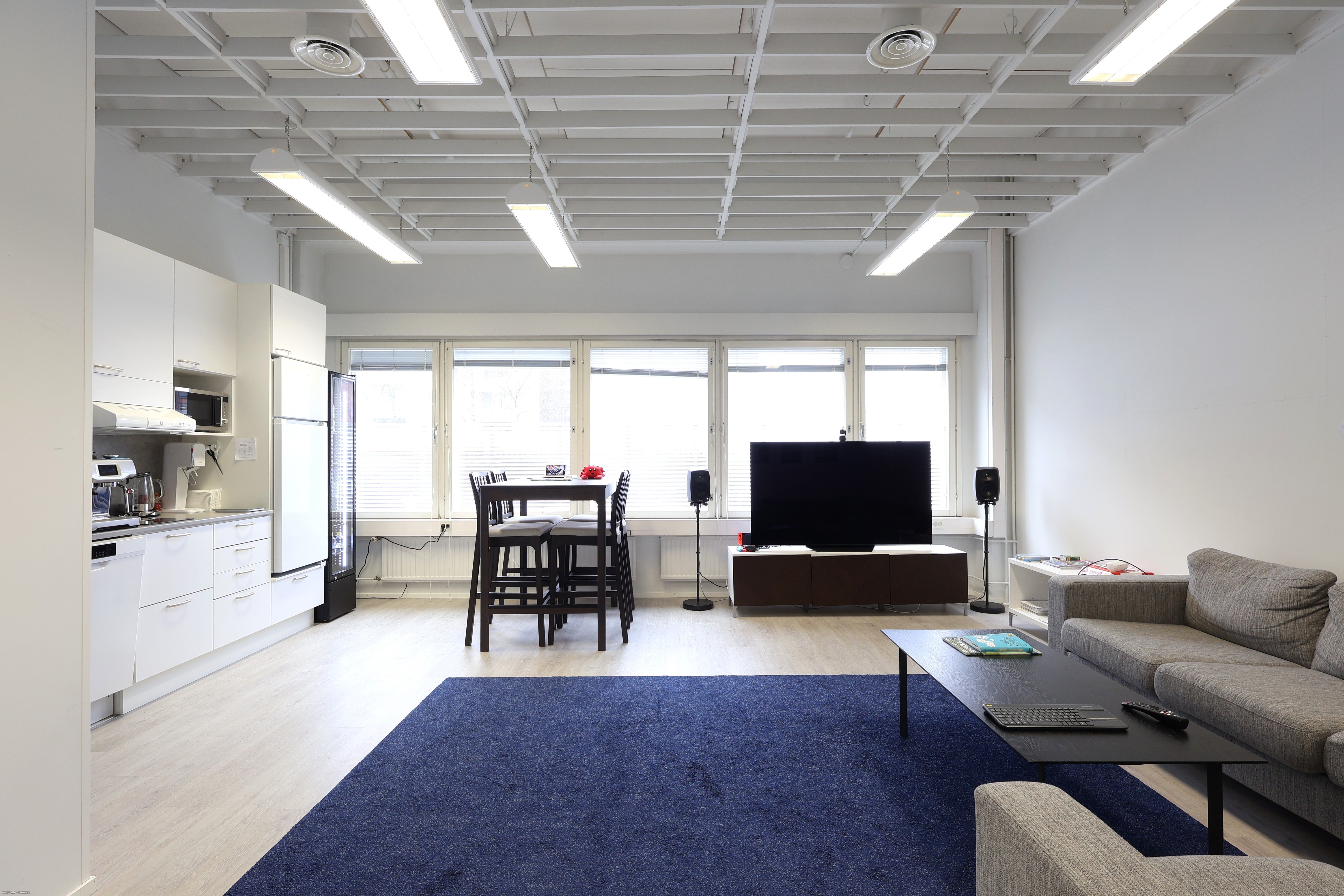 Tilasta löytyy iso keittiötila, neuvotteluhuone, yksi isompi huone, tilava aula sekä wc tila. Muokattavuus on helppoa väliseinien avulla.