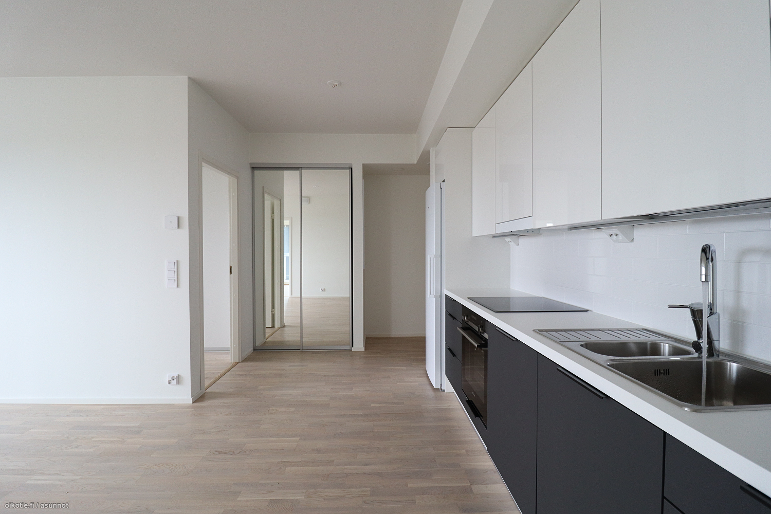 Asunto sijaitsee 14.kerroksessa tarjoten upeat maisemat. Laadukkaan keittiön varusteluun kuuluvat astianpesukone, uuni ja liesi sekä korkeat jääkaappi ja pakastin. Lasitettu parveke sekä oma sauna tuo lisämukavuutta asumiseen. Kylpyhuoneesta löytyy paikka ja liitännät pyykinpesukoneelle. Taloyhtiölaajakaista kuuluu vuokraan.