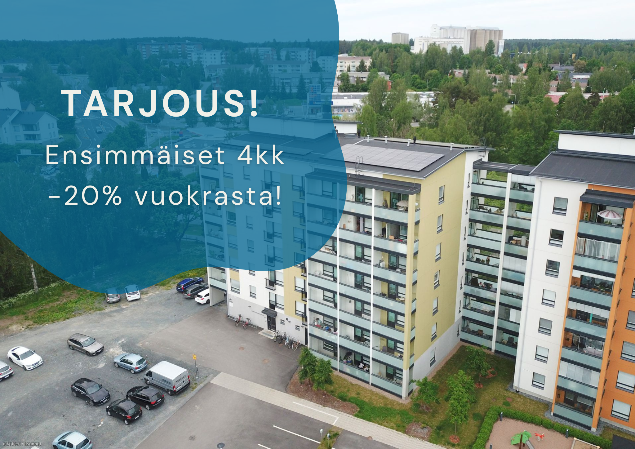 **TARJOUS** Ensimmäiset neljä kuukautta asunnon vuokra hintaan 570€/kk sopimuksen alkaessa viimeistään 1.2.2026.