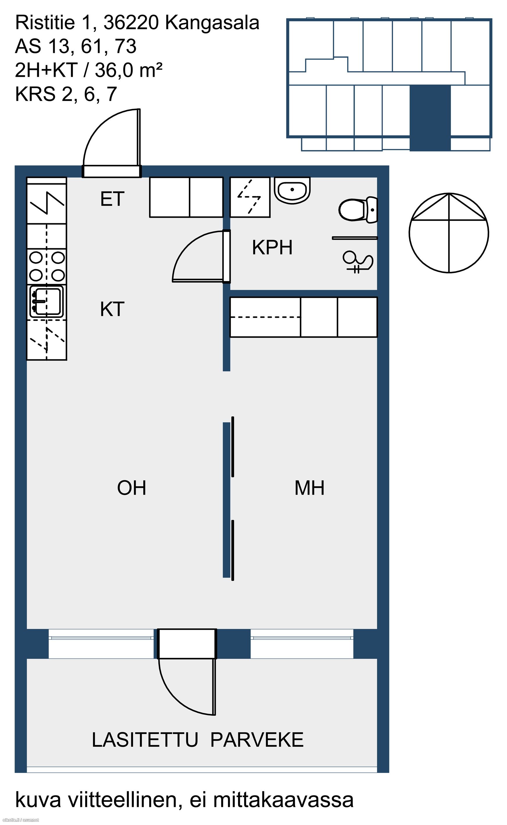 | Huoneiston kokoonpano | 2h+kt+las.parveke |