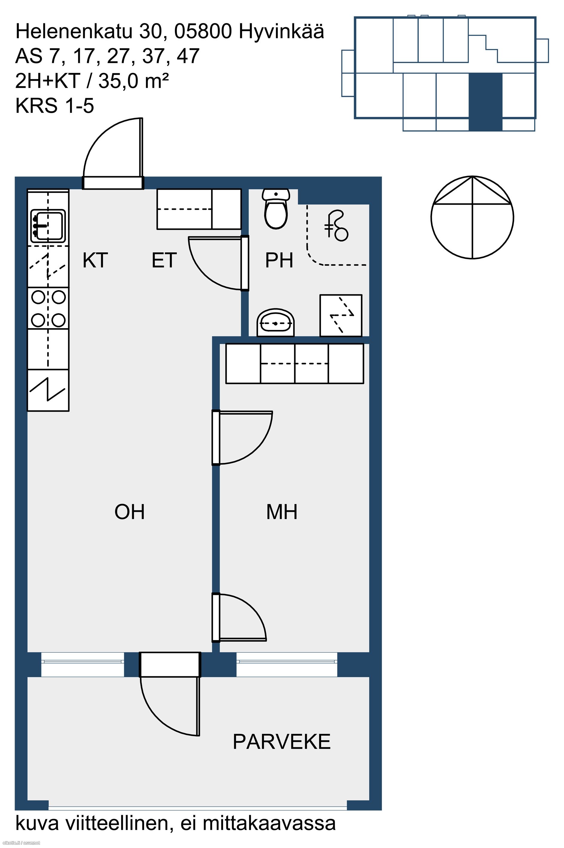 | Huoneiston kokoonpano | 2H+KT+PARV. |