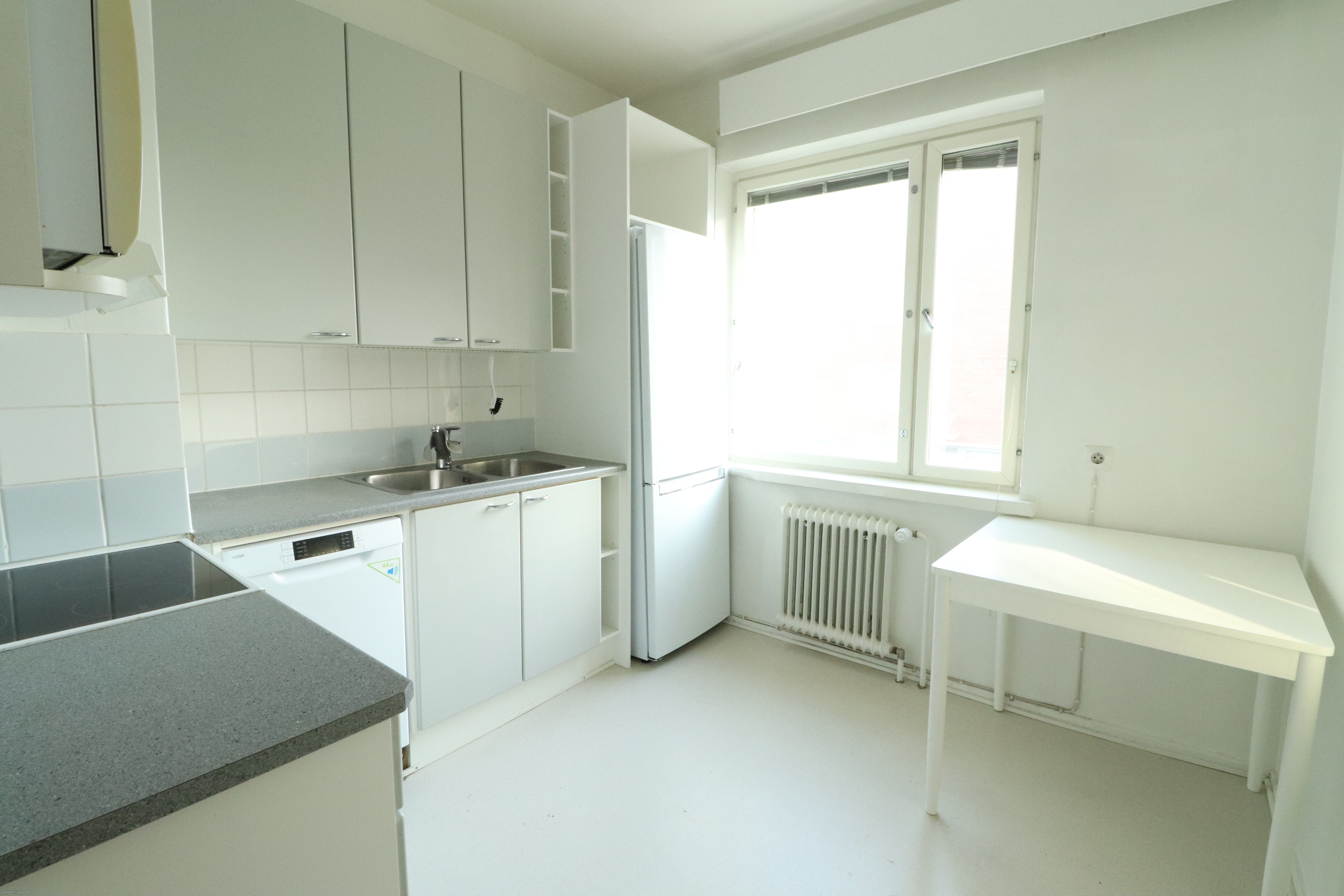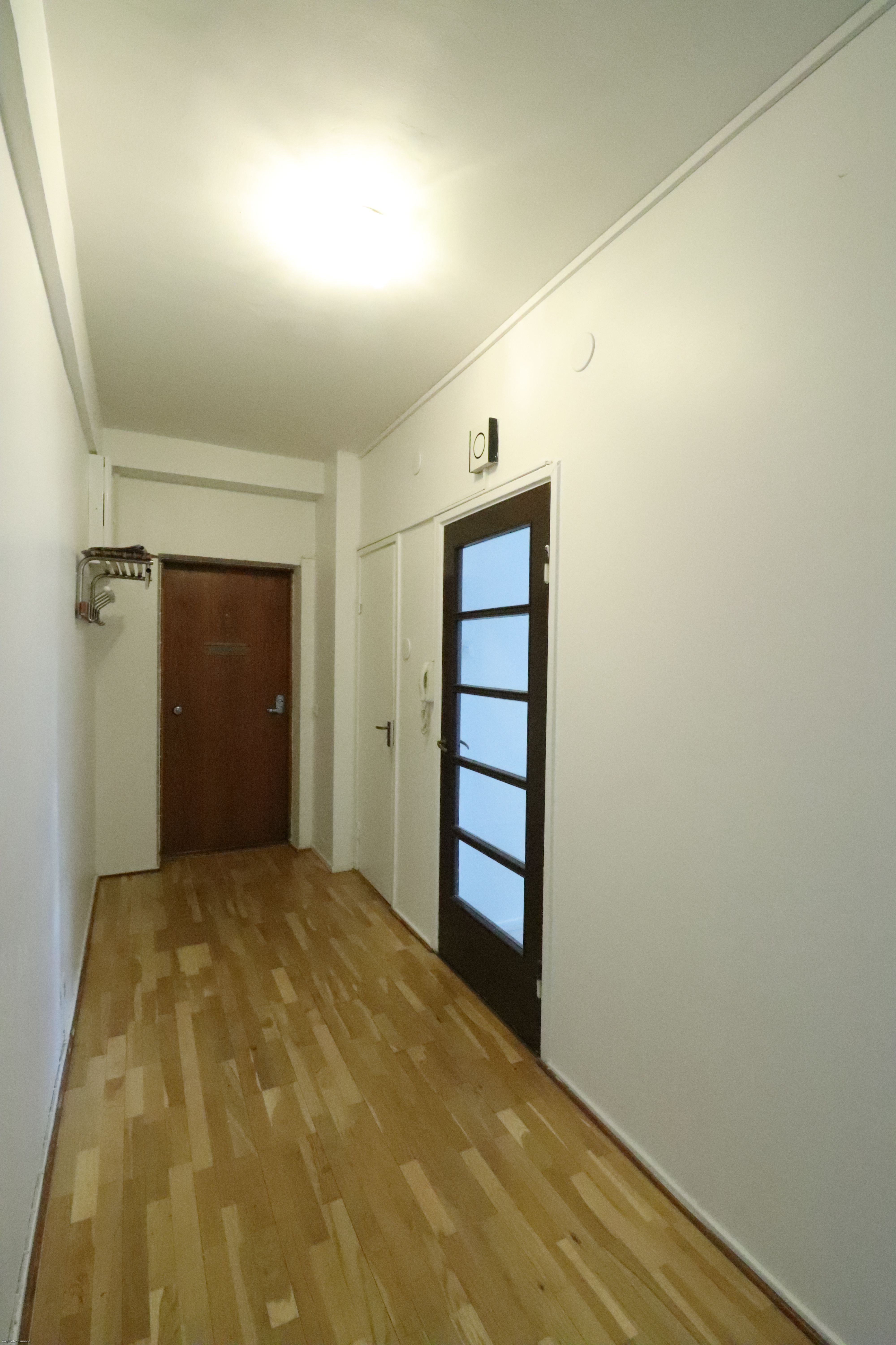 Asunto sijaitsee talon toisessa (2/4) kerroksessa, ei hissiä. Tässä kodissa on kauniit 50-luvun lasiovet, jotka päästävät hyvin valoa huoneisiin. Eteiskäytävältä pääsy kylpyhuoneeseen, keittiöön sekä olohuoneeseen. Keittiön kautta kuljetaan makuuhuoneeseen. Asunnon materiaaleina kauniit parkettilattiat sekä valkoisiksi maalatut seinät. Kylpyhuone kaakeloitu ja siellä on valmiina pyykinpesukone. Keittiön varusteluna liesi, uuni, jääkaappipakastin, reilusti säilytystilaa, sekä astianpesukone.