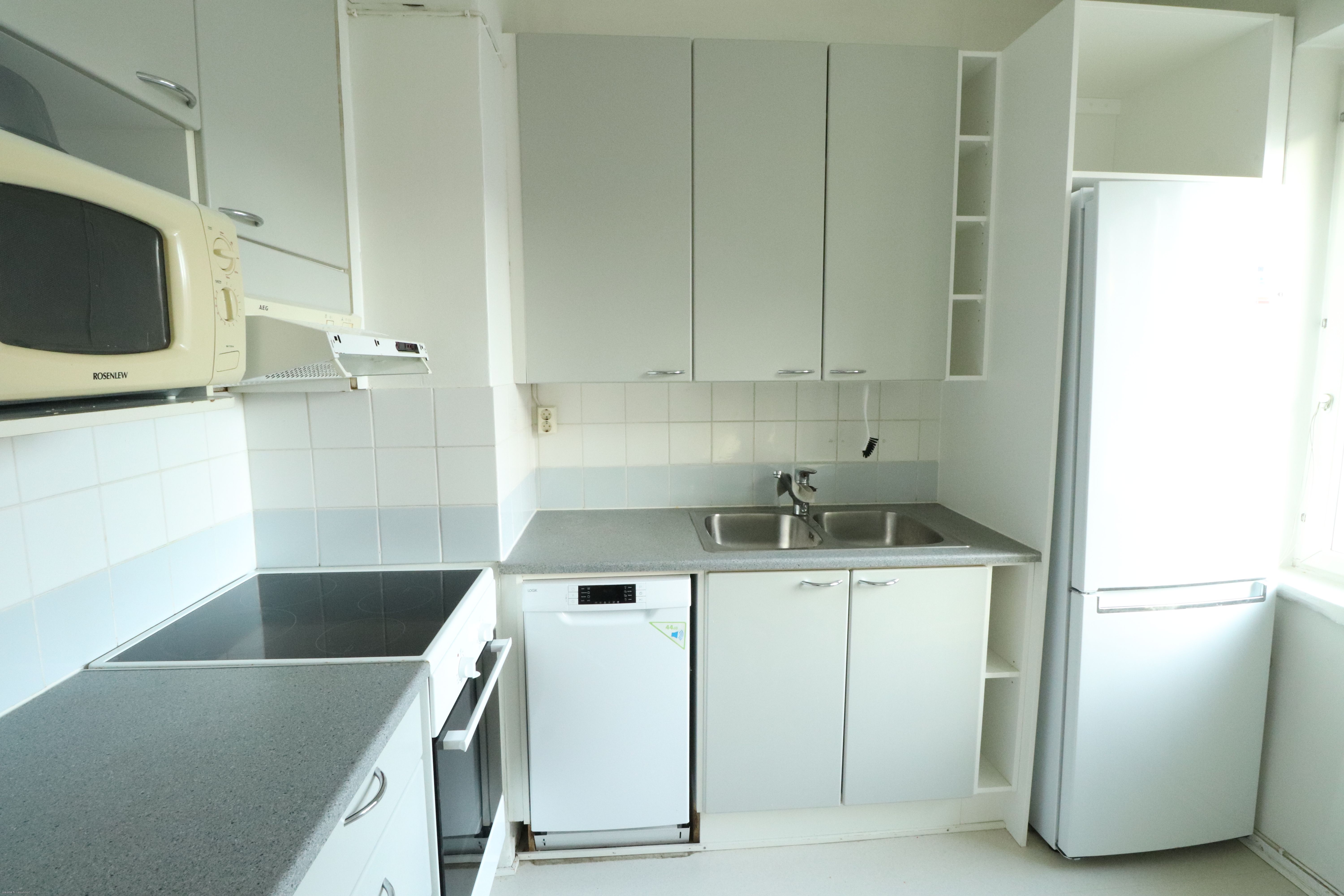 Asunto vuokrataan ensisijaisesti kalustettuna, jolloin kalustoon kuuluu päältä täytettävä pyykinpesukone, ruokapöytä, parisänky sekä tummanharmaa kankainen vuodesohva.