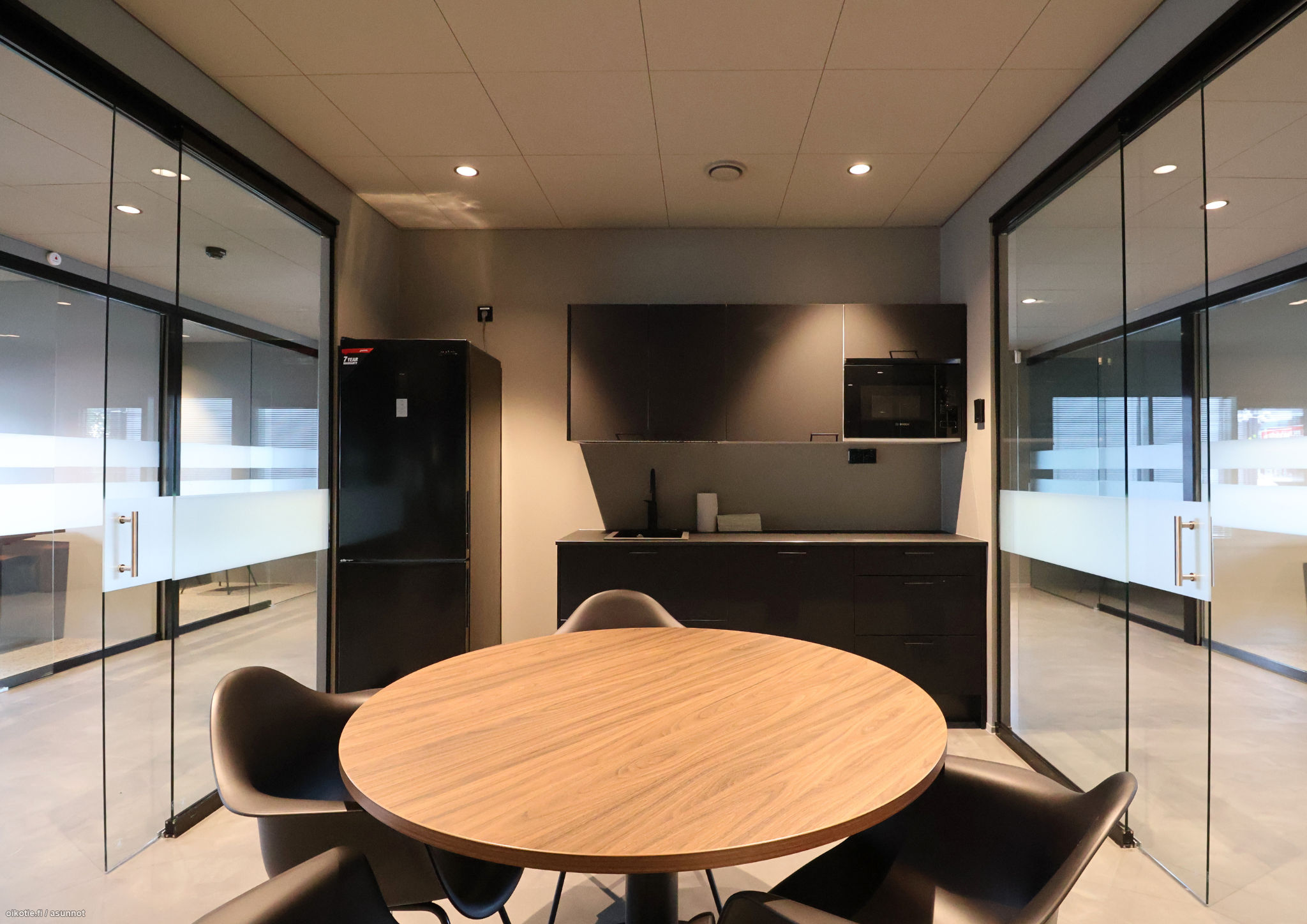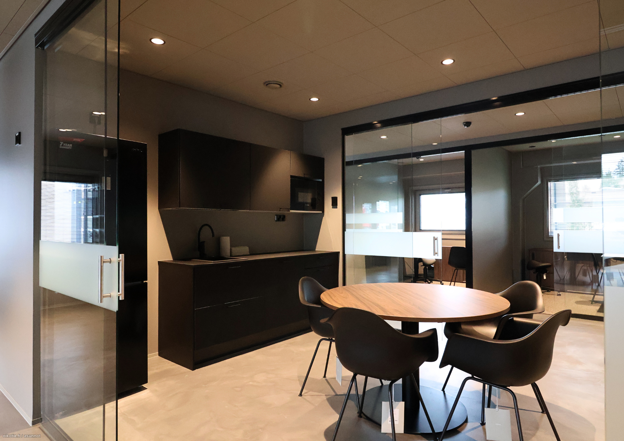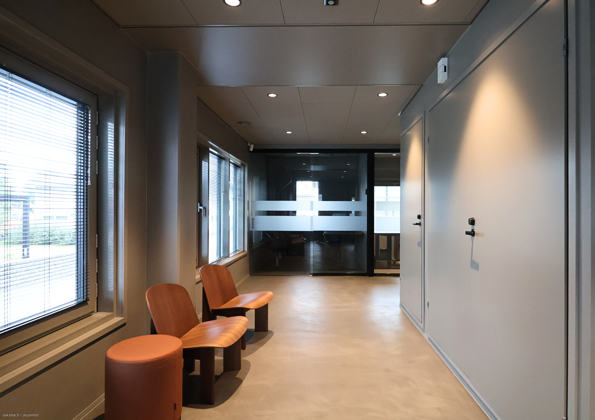 Sisustuksessa on panostettu lämpimiin sävyihin ja laadukkaisiin design-huonekaluihin, jotka tekevät tiloista edustavat ja miellyttävät niin henkilöstölle kuin asiakkaille.