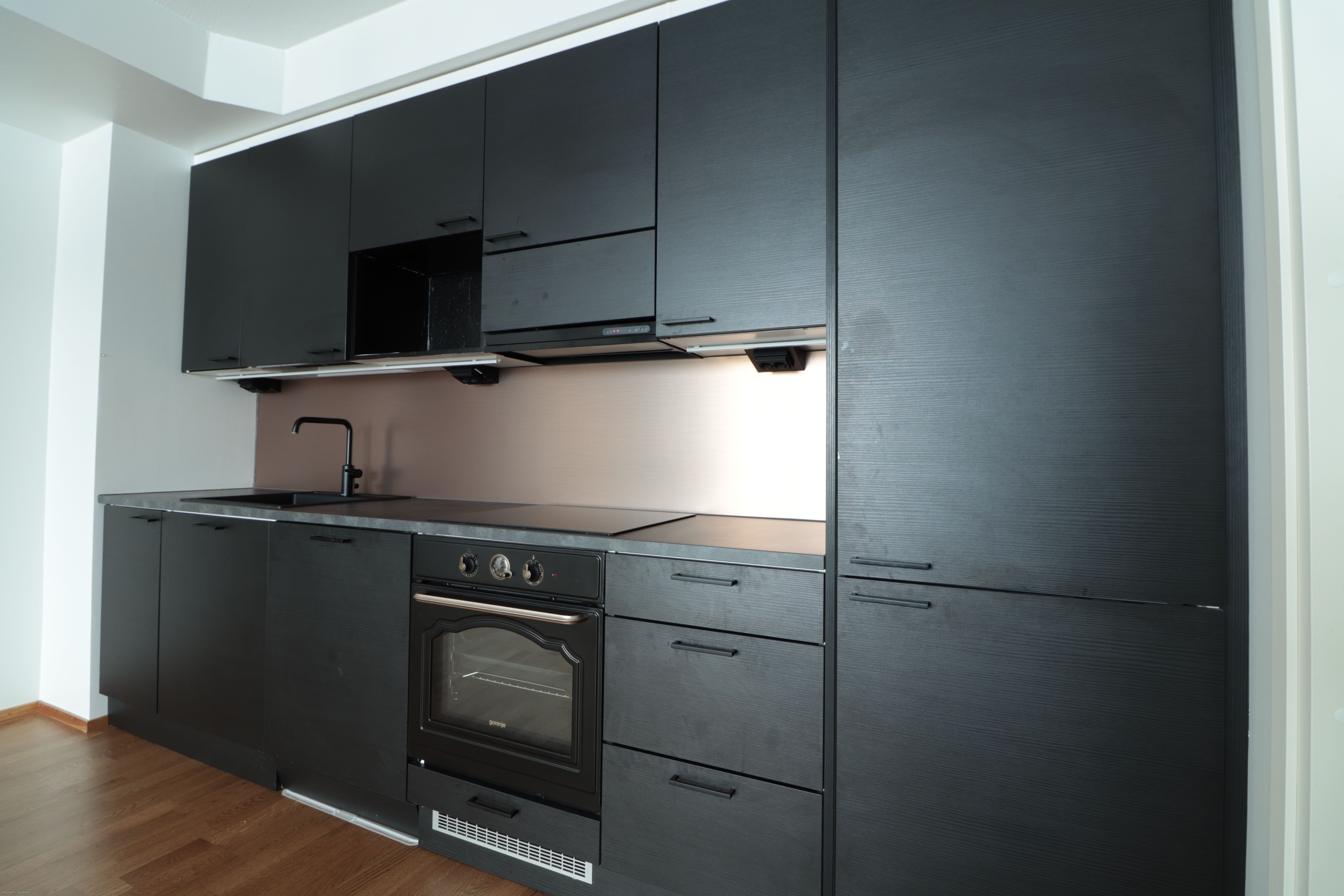 Asunto on talon ensimmäisessä (1/8) kerroksessa. Järkevällä pohjaratkaisulla varustettu asunto, upeassa mustassa keittiössä varustuksena astianpesukone, induktioliesi, erillisuuni, jääkaappipakastin. Olohuoneessa ilmalämpöpumppu tuomassa viileyttä kesäpäiviin. Makuuhuoneessa liukuovikaapistot peilillä. Tummilla yksityiskohdilla varustetussa tilavassa kylpyhuoneessa on paikka ja liitännät omalle pyykinpesukoneelle sekä arjen luksus, oma sauna. Lasitettu, reilun kokoinen parveke etelän suuntaan tuomassa lisää asumismukavuutta.