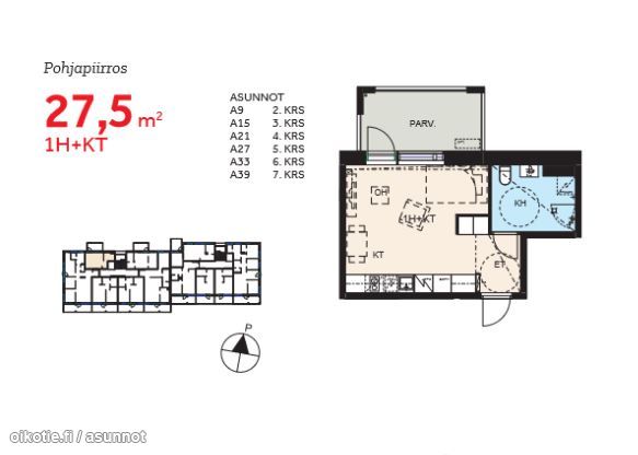 | Huoneiston kokoonpano | 1h,kt,kh,las.parv. |