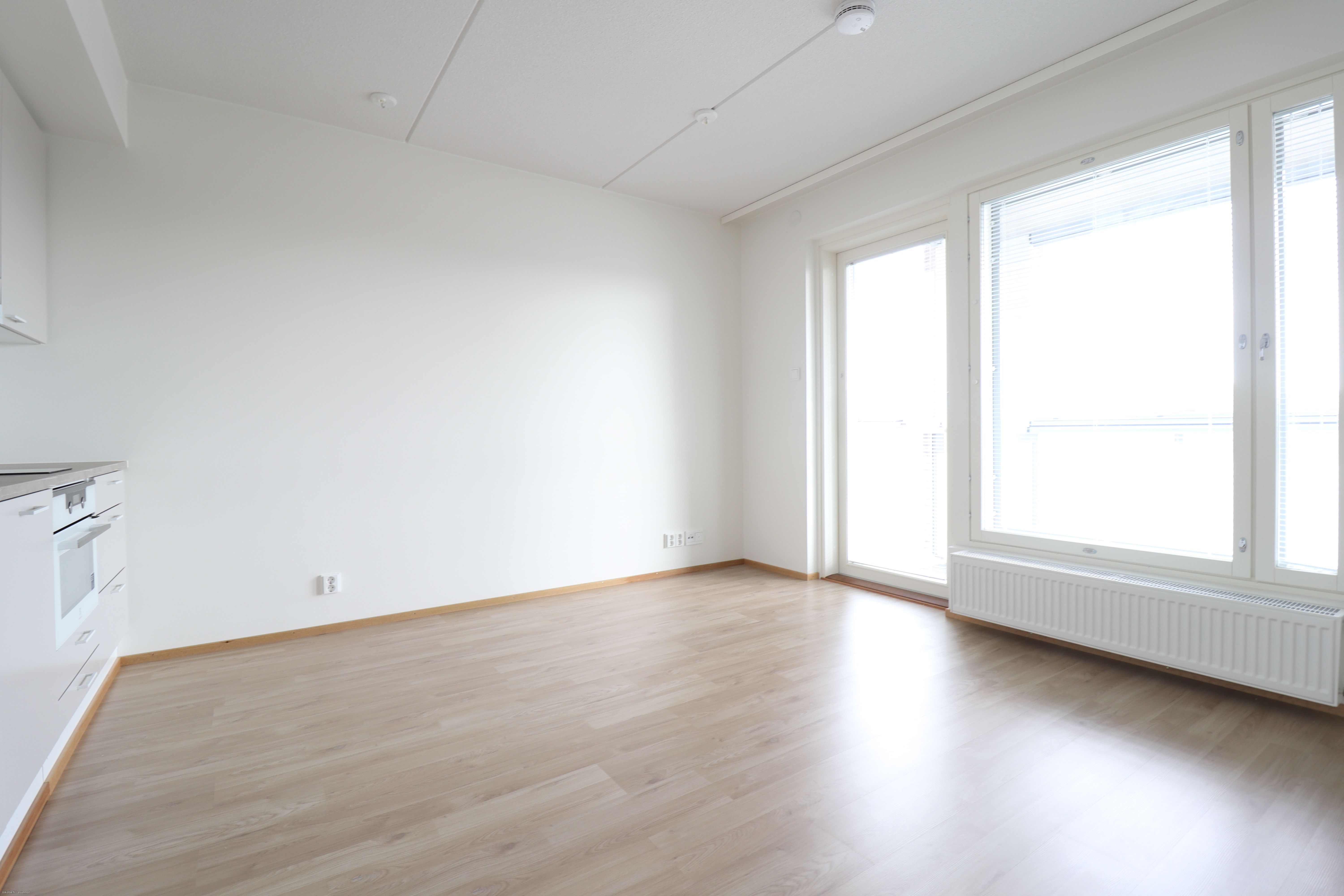 Asunnon lattiat ovat laadukasta laminaattia. Tähän asuntoon on valittu upea musta keittiö. Keittiön varustukseen kuuluu keraaminen keittotaso, kalusteuuni, astianpesukone sekä jääkaappipakastin. Lasitetulla parvekkeella kelpaa nautiskella. Tilavassa kylpyhuoneessa on liitännät pyykinpesukoneelle.