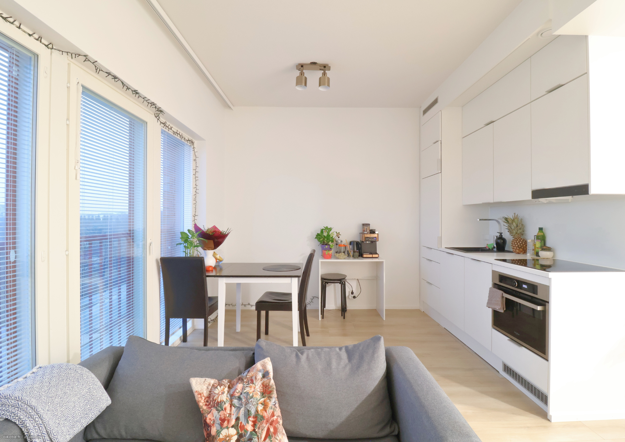 Asunto itsessään on varustettu todella fiksulla pohjalla, joten se on helppo kalustaa. Lämmitys hoituu vesikiertoisella lattialämmityksellä, joten myöskään pattereita ei ole sisustamisen tiellä. Asunnossa on runsaasti kaappitilaa. Keittiön varustukseen kuuluu liesi, erillisuuni, astianpesukone sekä jääkaappi. Kylpyhuoneessa on paikka ja liitännät pyykinpesukoneelle.