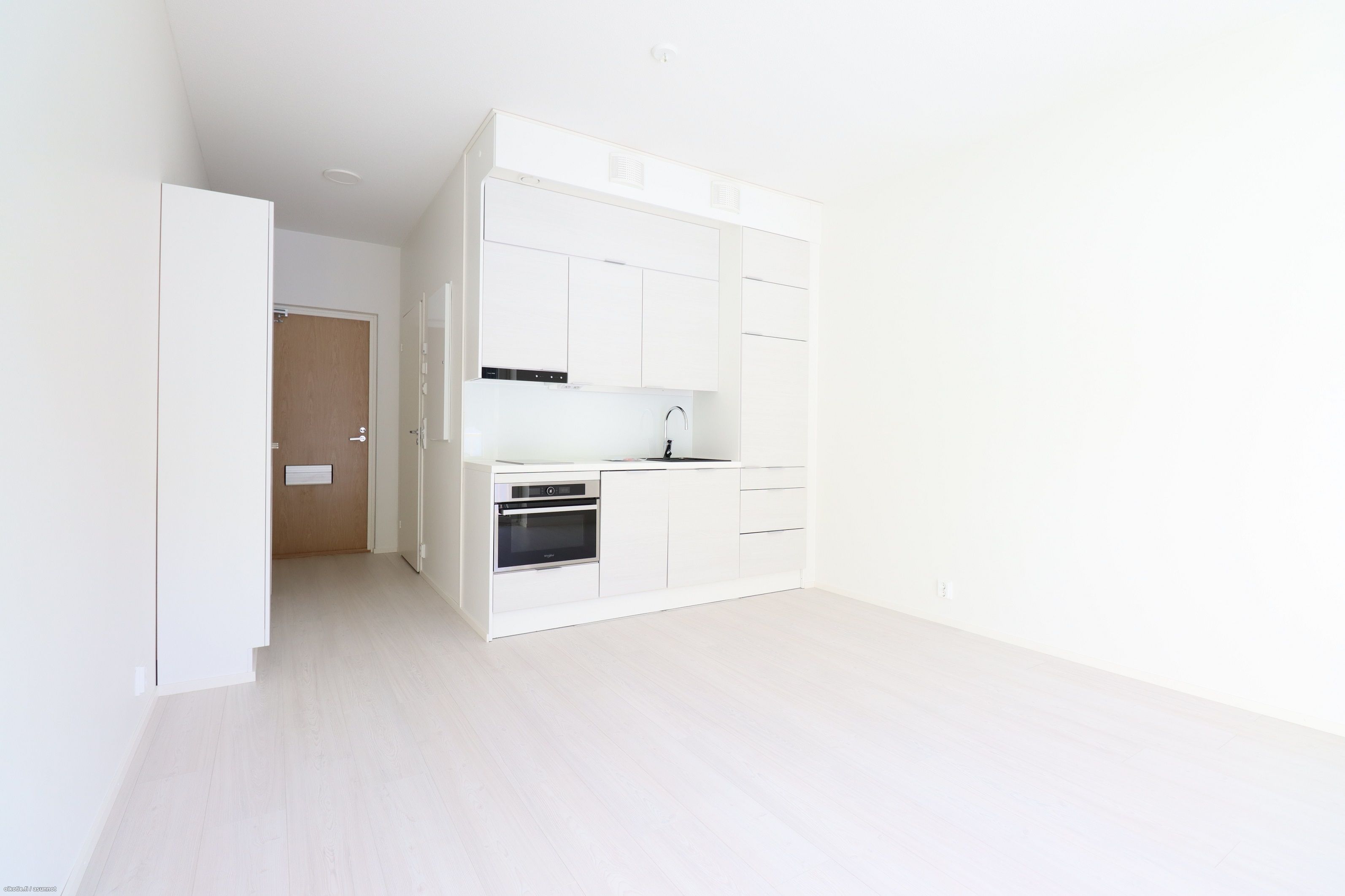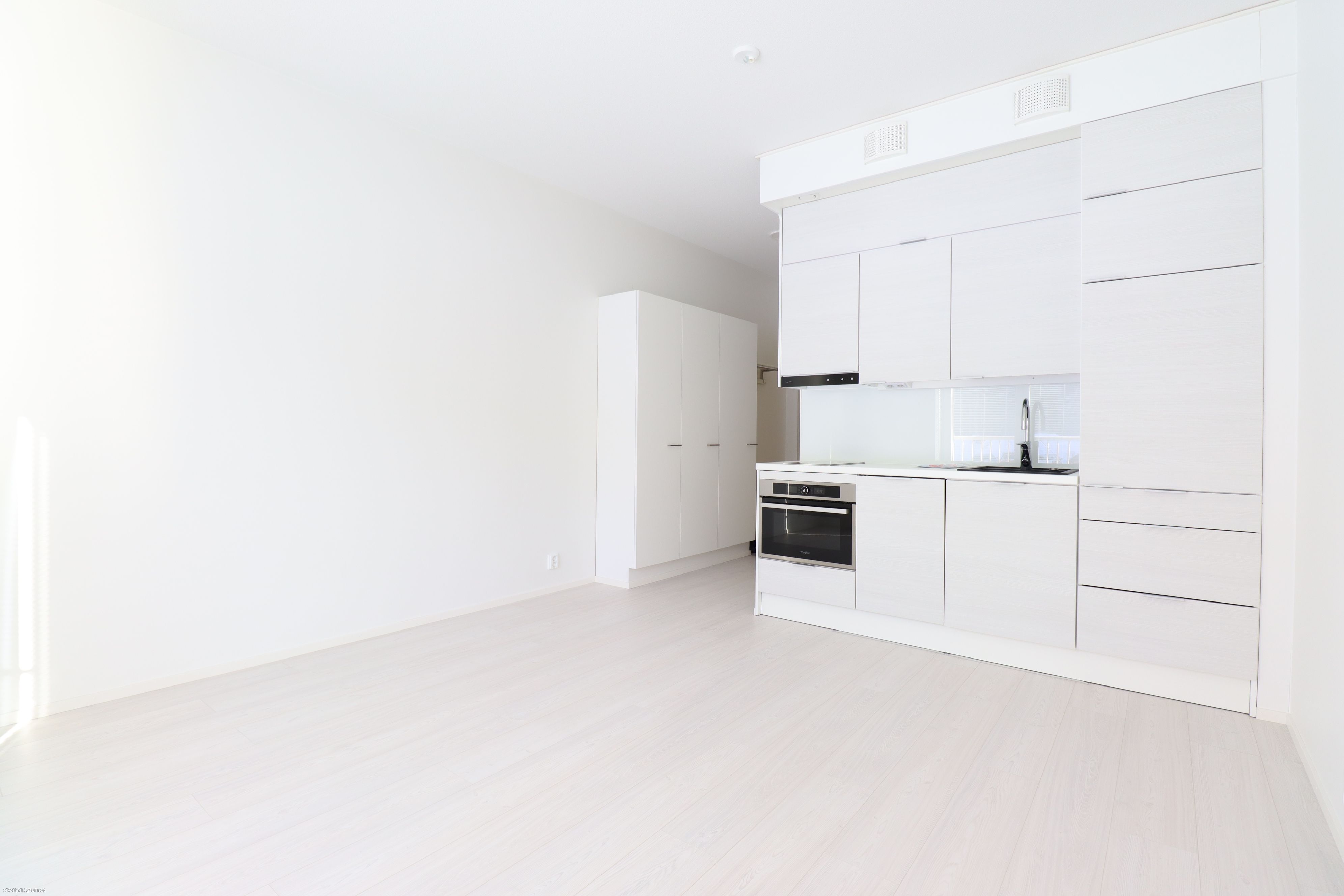 Ensimmäisen kerroksen yksiössä on laminaattilattia ja vaaleat maalipinnat seinissä. Asunnossa on ranskalainen parveke ja ikkunoissa sälekaihtimet. Keittiöistä löytyy jääkaappi pakastelokerolla ja astianpesukone. Kylpyhuoneessa tilaa ja liitäntä pyykinpesukoneelle. Asuntojen kuivissa tiloissa vesikiertoinen lattialämmitys ja kylpyhuoneissa sähköinen lattialämmitys.