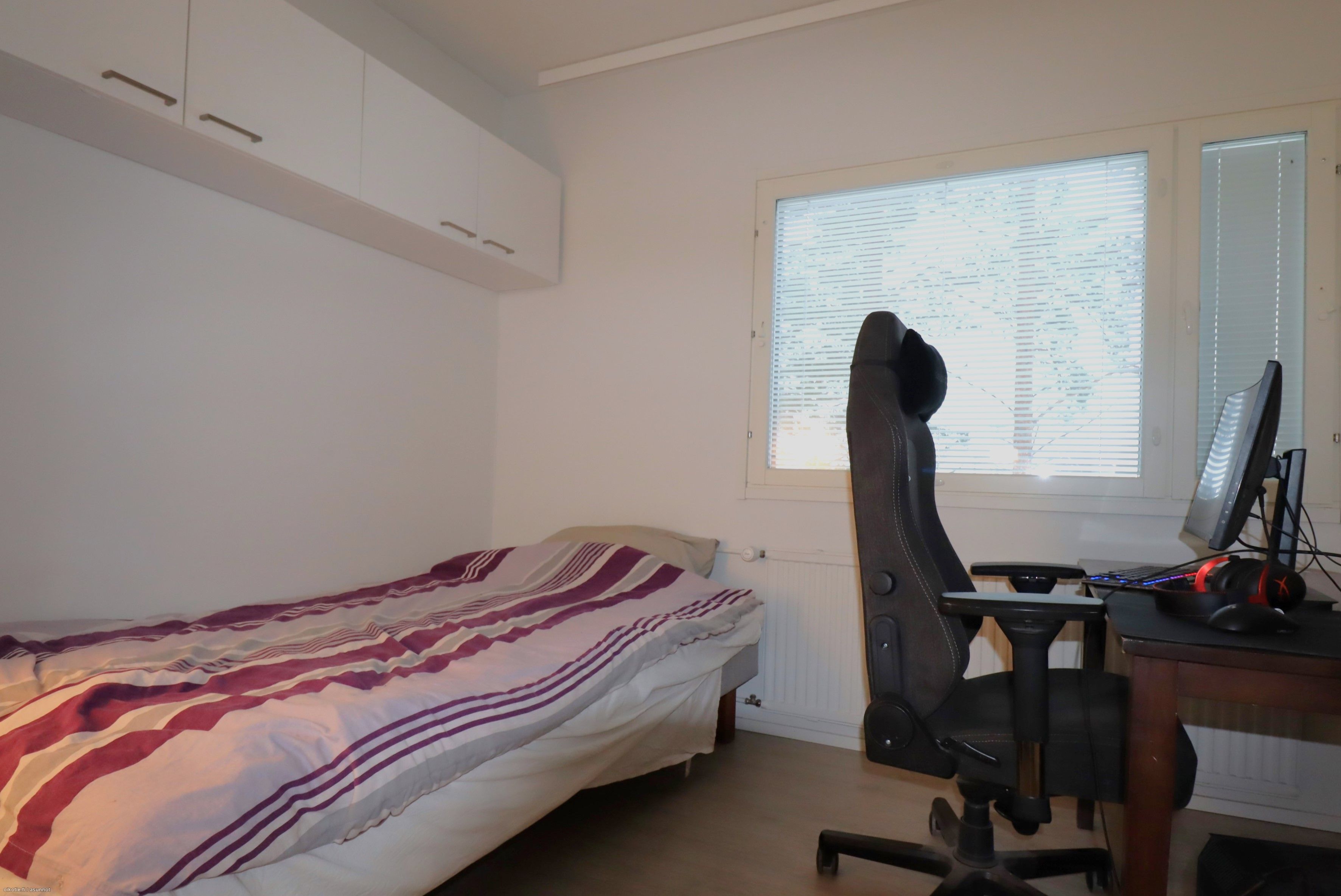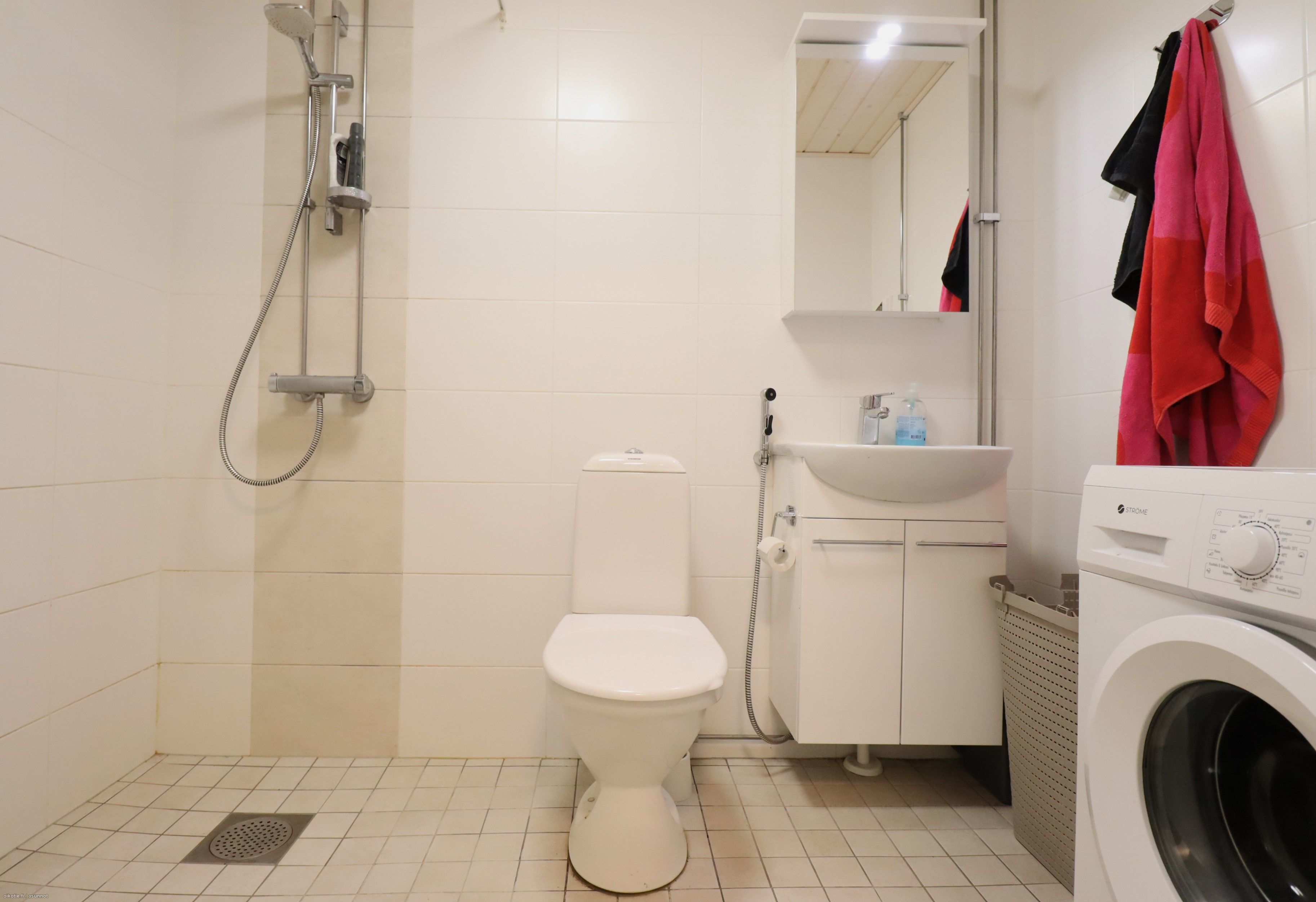 Asunnon lattiat ovat laminaattia ja seinät vaalealla maalipinnalla. Astianpesukone, jääkaappi/pakastin, uuni ja liesitaso kuuluvat keittiön varusteluun. Keittiössä lisäksi hyvin kaappitilaa astioille ja muille keittovälineille. Makuuhuoneessa on kiinteää kaappitilaa vaatteita, petivaatteita, yms. varten. Kylpyhuoneessa tilaa ja liitäntä pyykinpesukoneelle. Asunnossa on viihtyisä lasitettu parveke.
