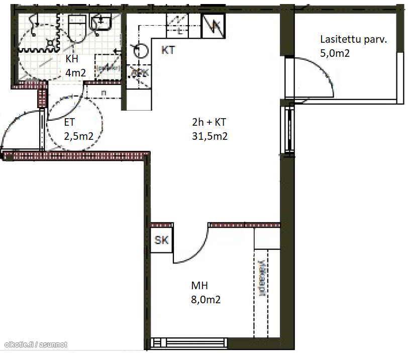 | Huoneiston kokoonpano | 2 h + avok + p + kph |