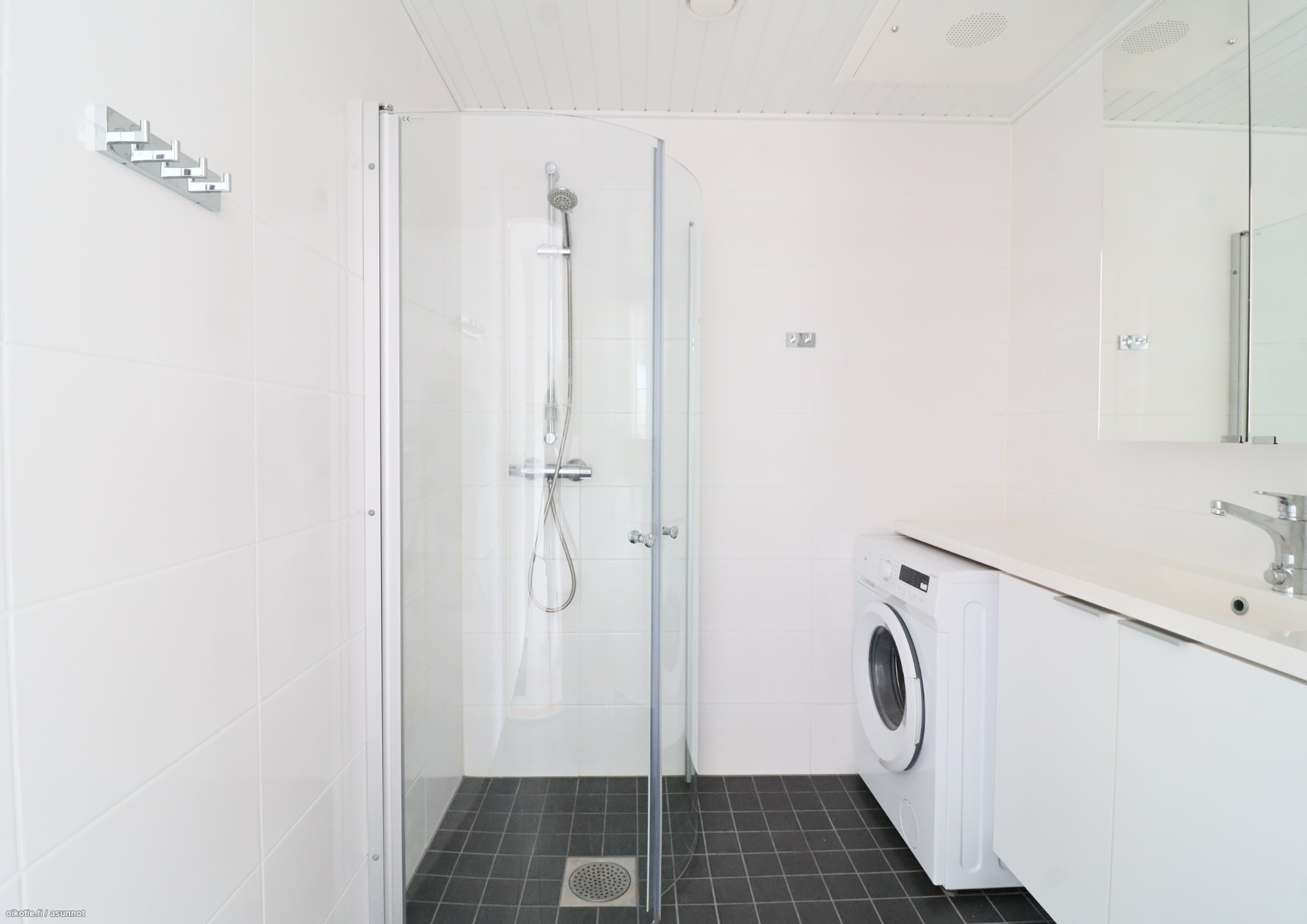Asunnon pohjaratkaisu tekee sisustamisesta helppoa ja kivaa. Keittiö nykyaikaisilla laadukkailla integroiduilla varusteilla, esim. astianpesukone ja uuni/mikroaaltouuni yhdistelmällä. Asunnossa on laminaattilattia ja seinät vaalealla maalipinnalla. Kylppäristä löytyy liitäntä pyykinpesukoneelle.