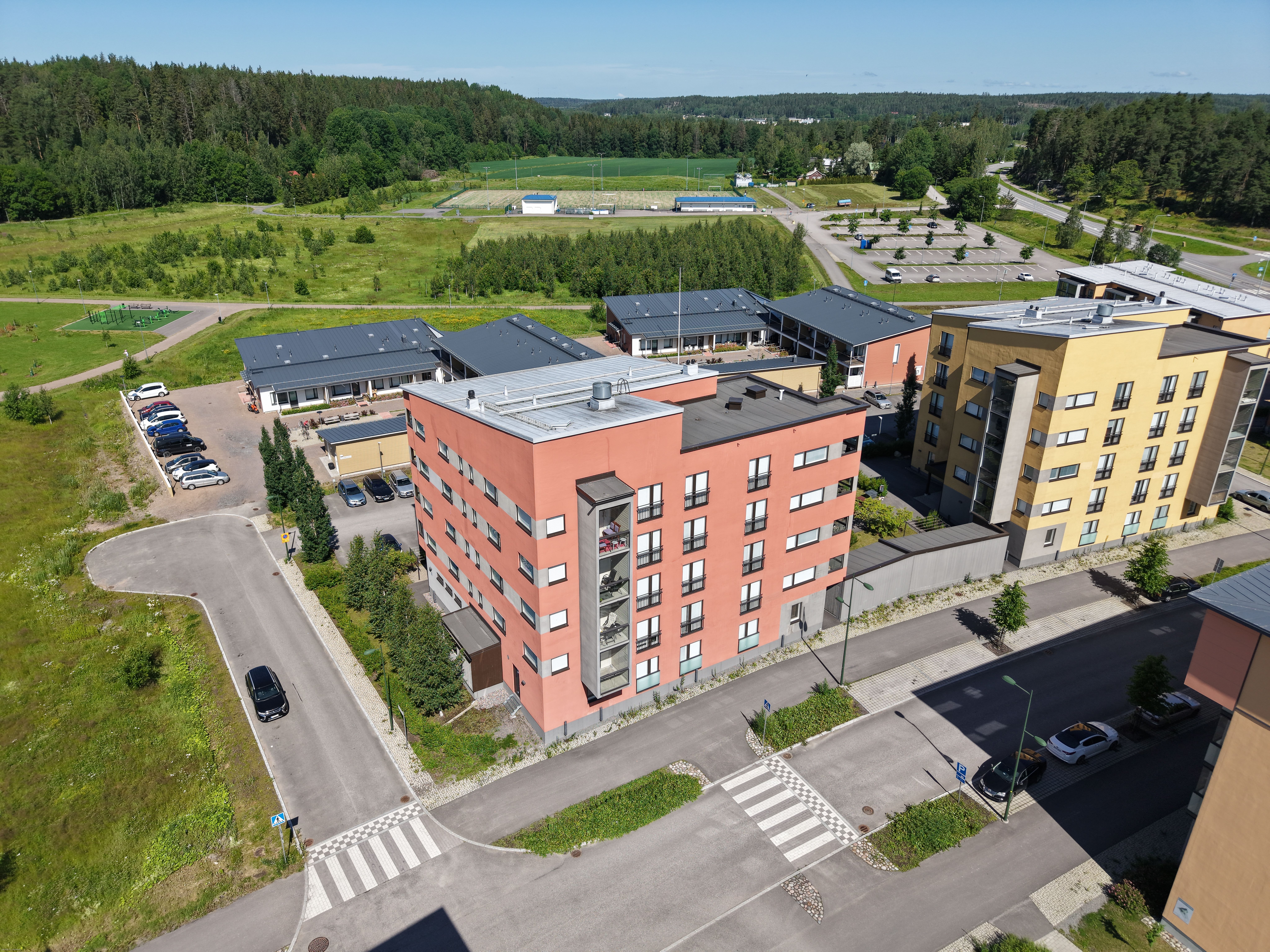 Lähistöltä löytyvät loistavat liikuntamahdollisuudet, mm. lenkkipolut, tekonurmi, jääkiekkokaukalo. Kirkonkylän palvelut myös kivenheiton päässä. Moottoritielle pääsee muutamassa minuutissa ja esimerkiksi Helsinkiin pääsee omalla autolla puolessa tunnissa.