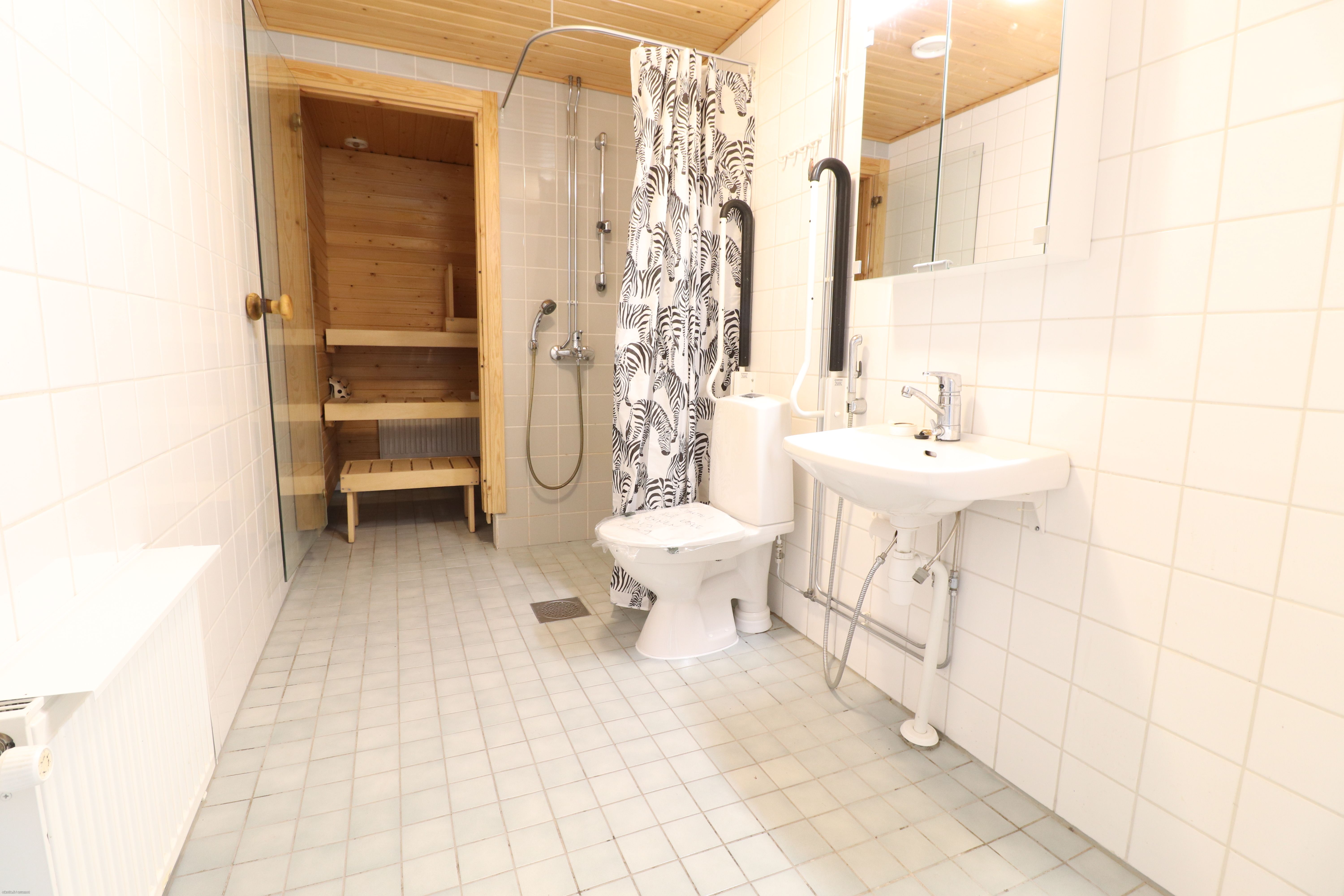 Oma sauna ja lasitettu tilava parveke lisää asumisviihtyisyyttä.