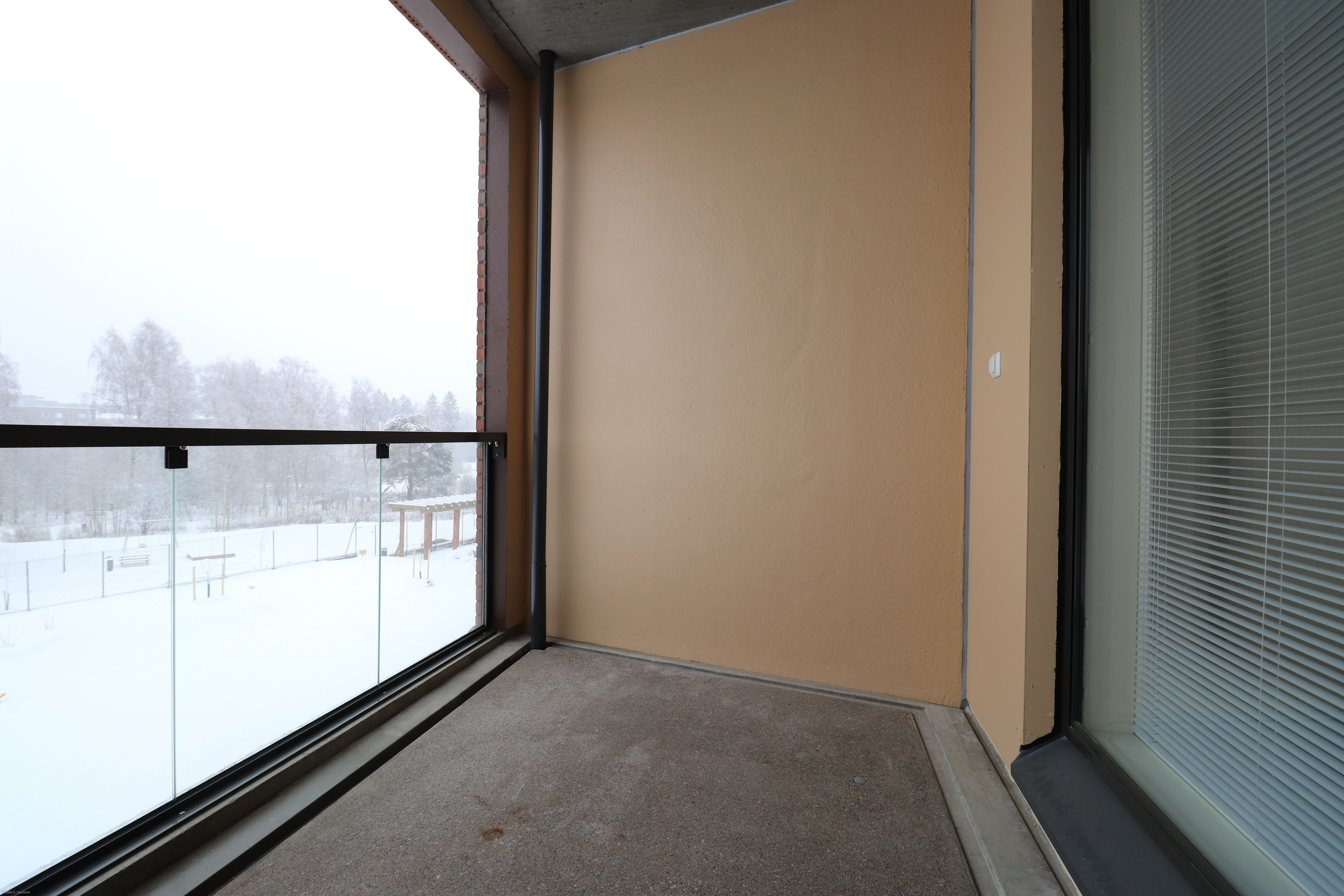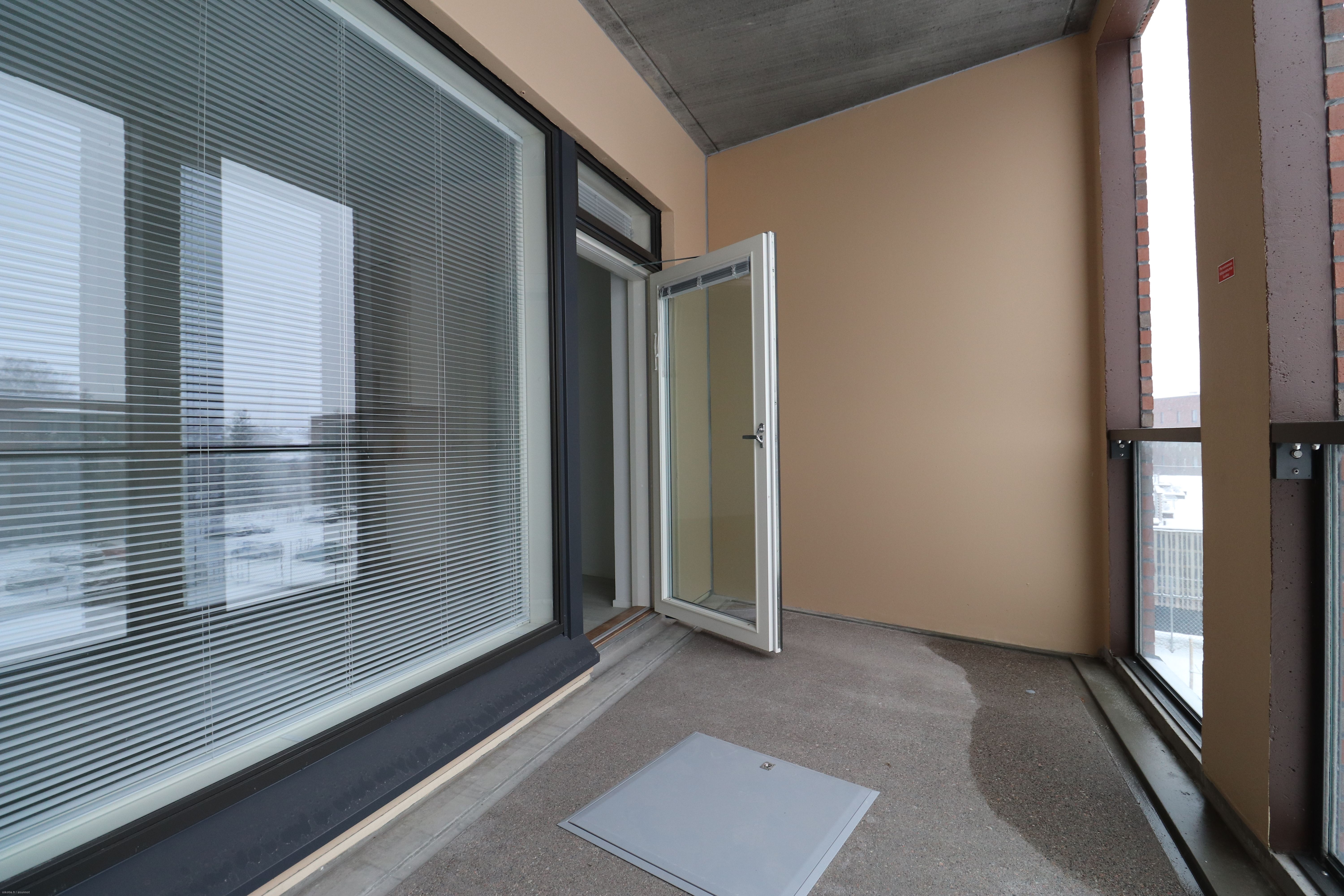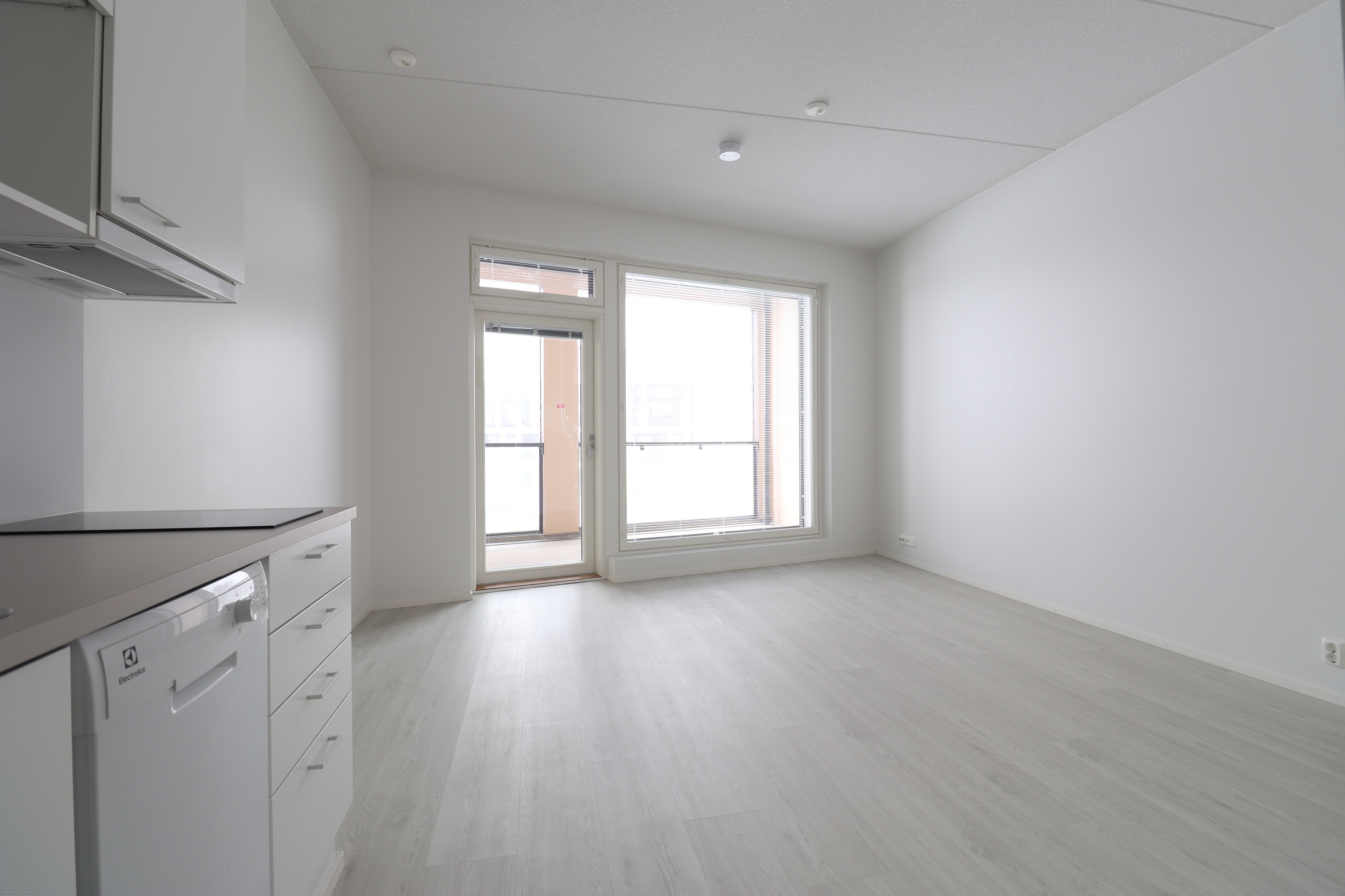 Asunnon lattia on tammilautaparkettia ja seinät raikkain maalipinnoin. Keittiöstä löytyy seuraavat kodinkoneet: astianpesukone, kalusteuuni, kahden levyn keraaminen liesitaso sekä jääkaappi pakastelokerolla. Tilavassa kylpyhuoneessa on liitäntä pyykinpesukoneelle. Todella tilava parveke on kuin yksi huone lisää.