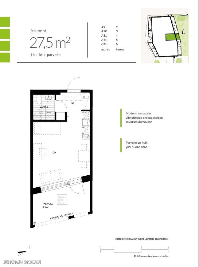 | Huoneiston kokoonpano | 1h+kt+kh+parv. |