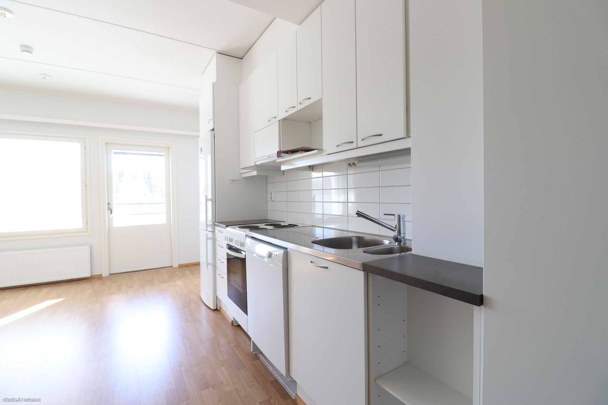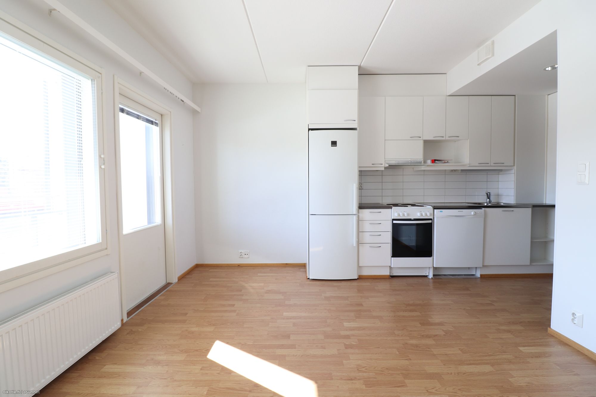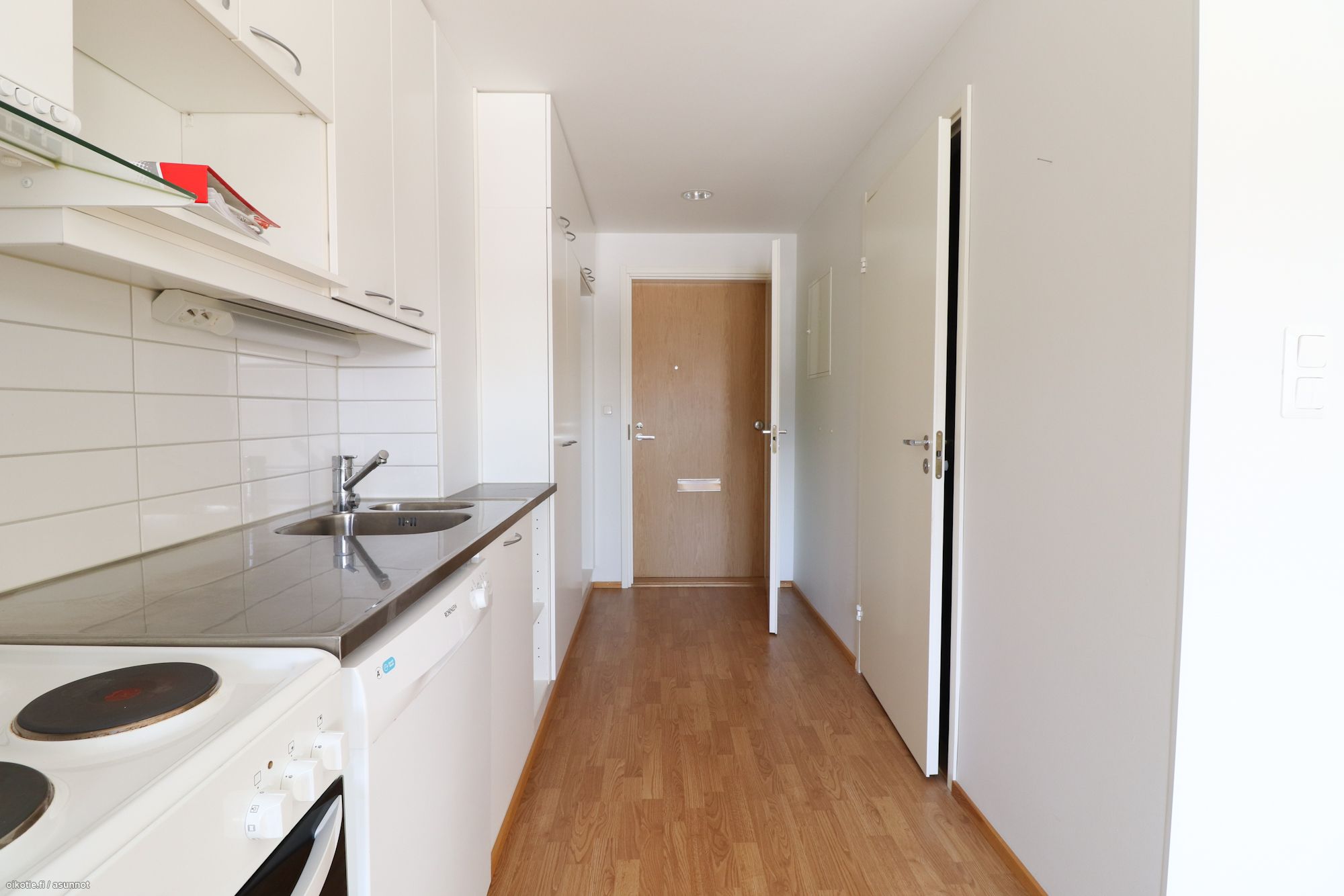 Tässä kivassa yksiössä on vaaleat seinät ja laminaattilattia. Keittiön varustukseen kuuluu astianpesukone, liesi/uuni sekä jääkaappipakastin. Kaakeloituun kylpyhuoneeseen mahtuu oma pyykinpesukone tai vaikka kokonainen pesutorni. Oma parveke tuo yhden lisähuoneen aina keväästä alkaen. Asunnon mukana vuokrataan pistokkeellinen autopaikka hintaan 20€/kk.