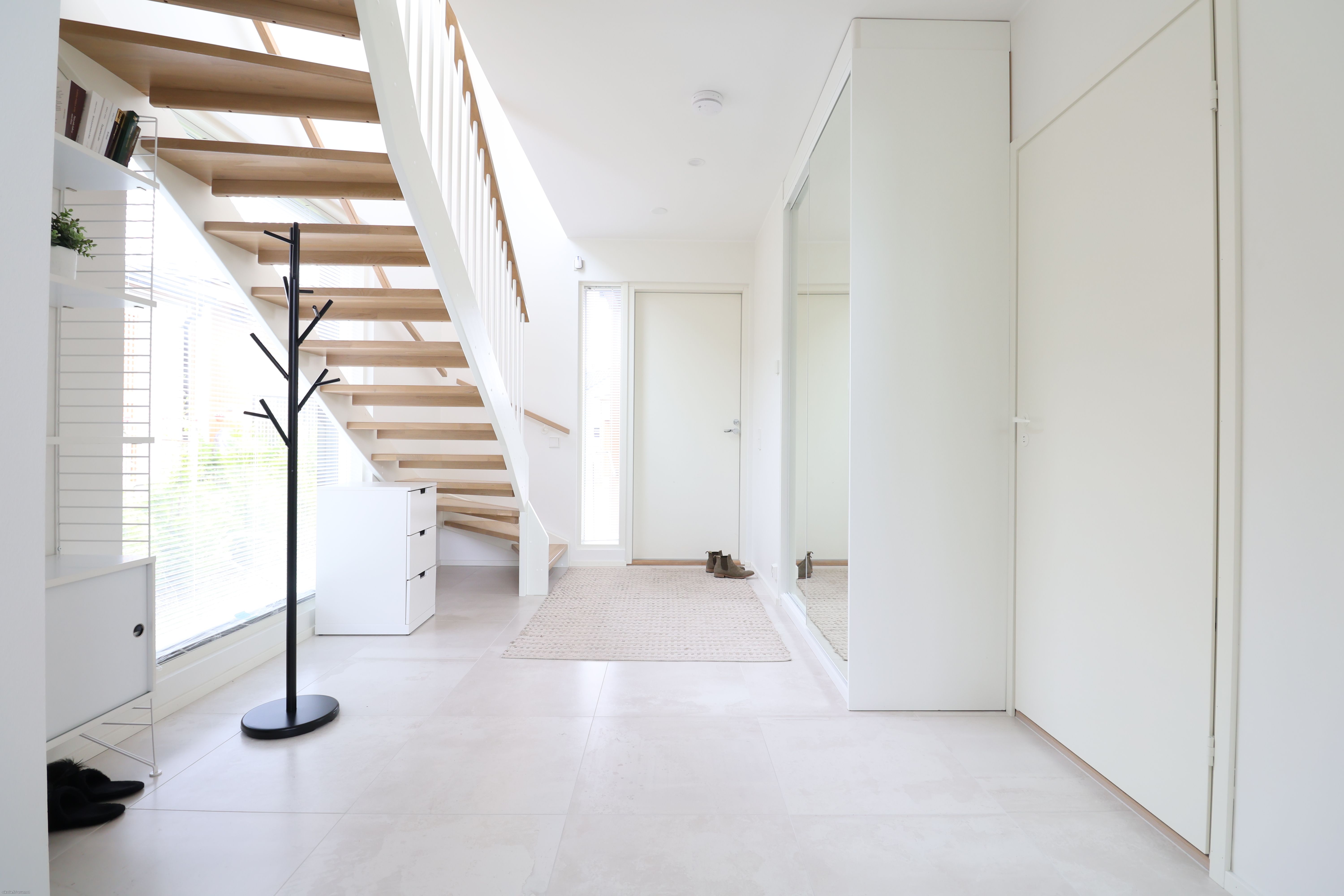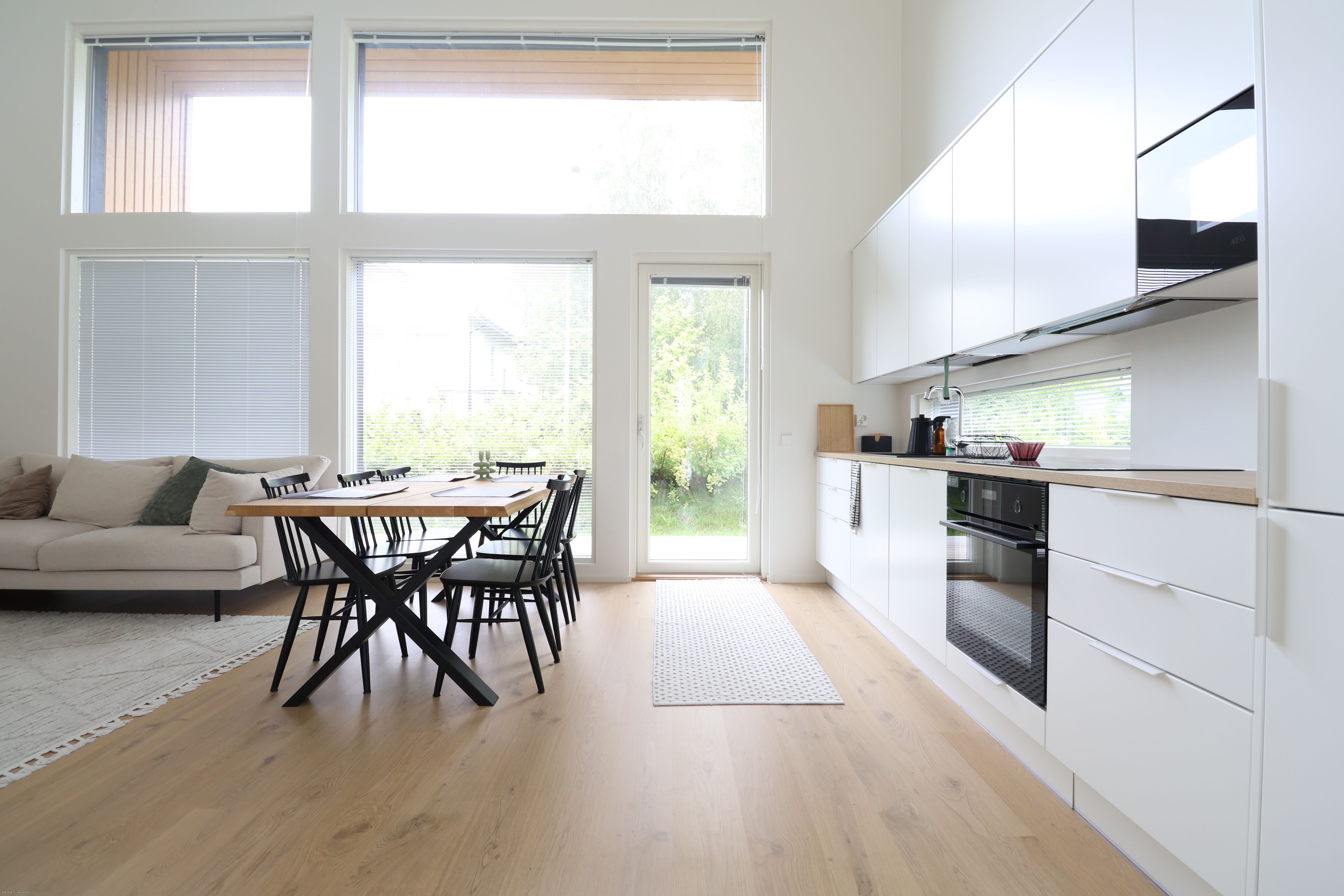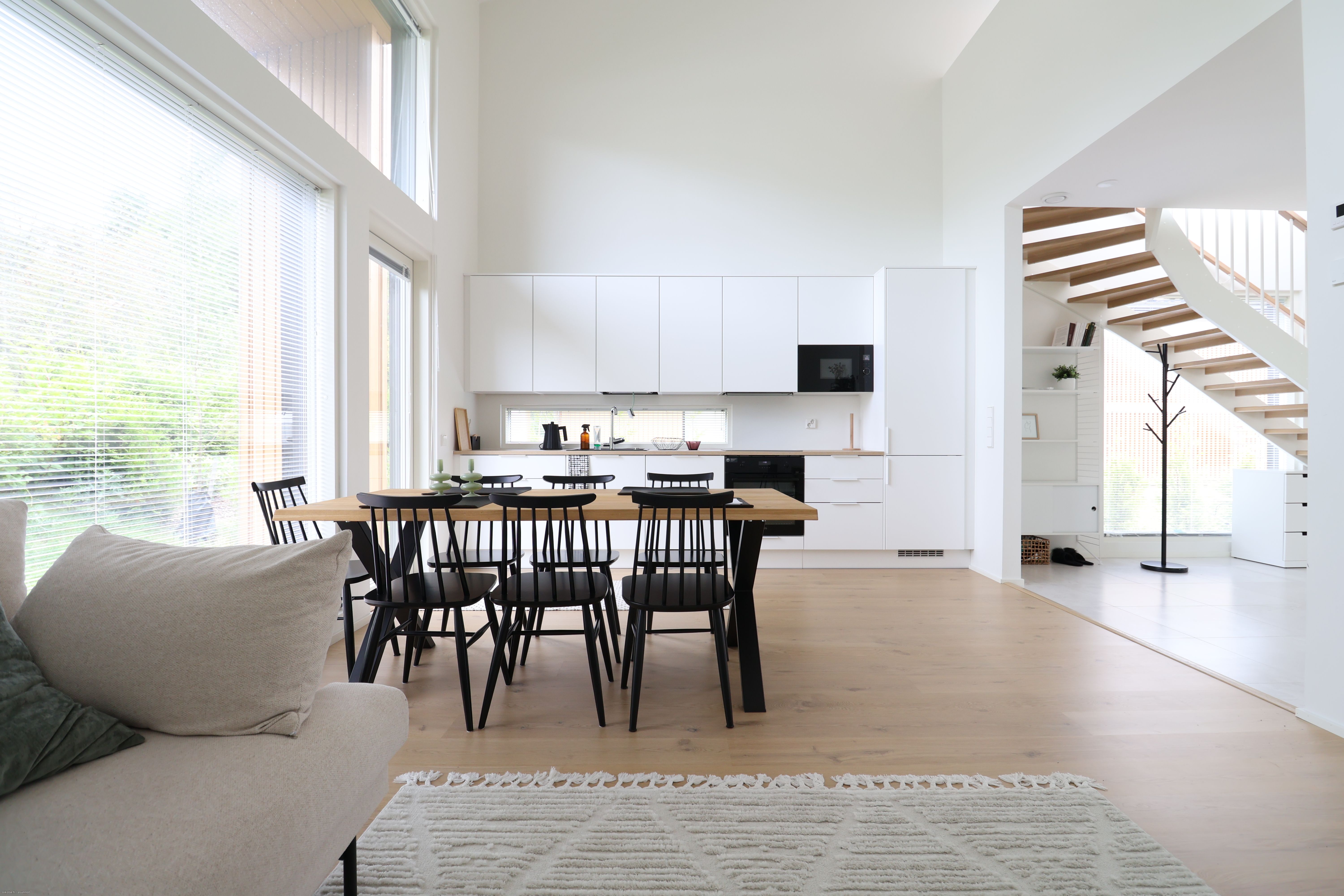 Kodikas ja toimivapohjainen koti hurmaa erityisesti avaruudellaan ja valoisuudellaan. Eteinen toivottaa tervetulleeksi laattalattian ja reilujen säilytystilojen kera. Vaaleilla sävyillä viimeistelty Puustellin avokeittiö on varustettu laadukkailla AEG:n kodinkoneilla, ja ruokailutilaan mahtuu suurempikin seurue. Olohuoneessa huikea, jopa viiden metrin huonekorkeus yhdistyy suurten maisemaikkunoiden tuomaan runsaaseen luonnonvaloon, mikä luo poikkeuksellisen ilmavan tunnelman.