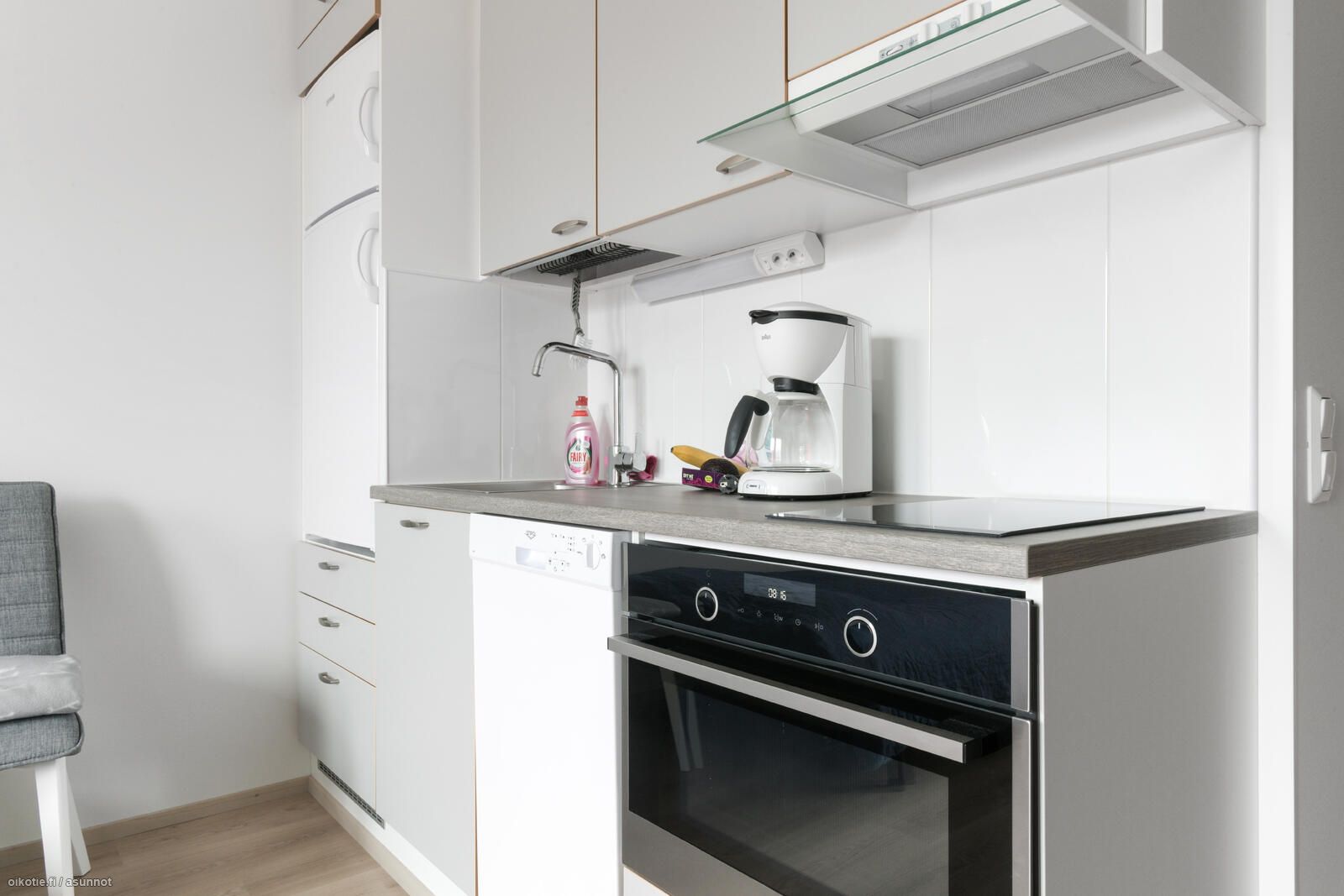 Huoneiston lattiat laminaattia, huoneistokohtainen ilmanvaihto lämmön talteenotolla. Keittiössä induktioliesitaso, mikro-uuniyhdistelmä, astianpesukone, kylpyhuoneessa tila asukkaan omalle pyykinpesukoneelle. Talon alimmassa kerroksessa on maksuttomasti asukkaiden käytössä oleva kuivaushuone sekä tilavat ulkoiluvälinevarastot ja huoneistolle kuuluva irtaimistovarasto.