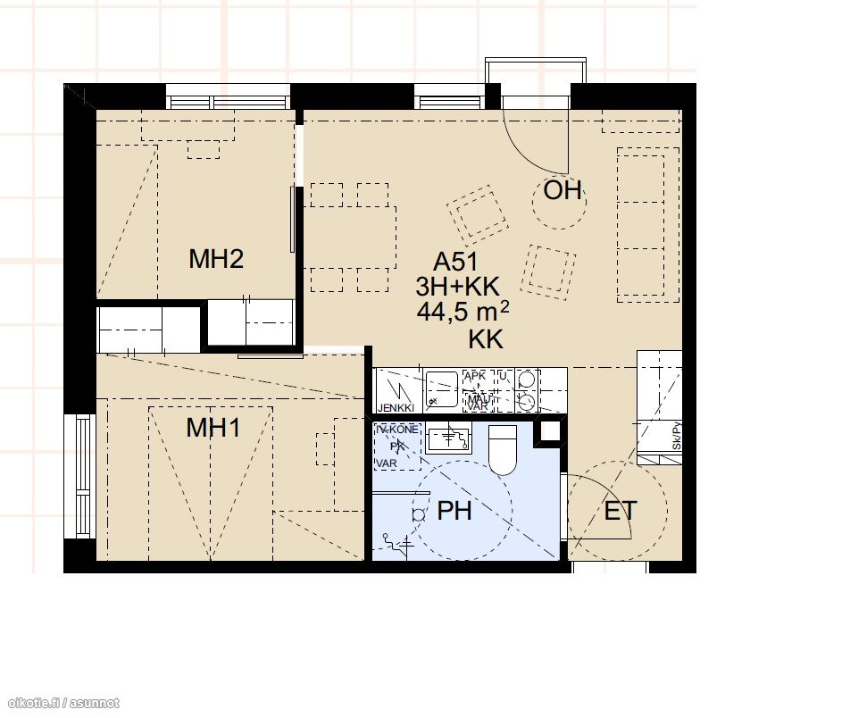| Asuinpinta-ala | 44.5 m² |