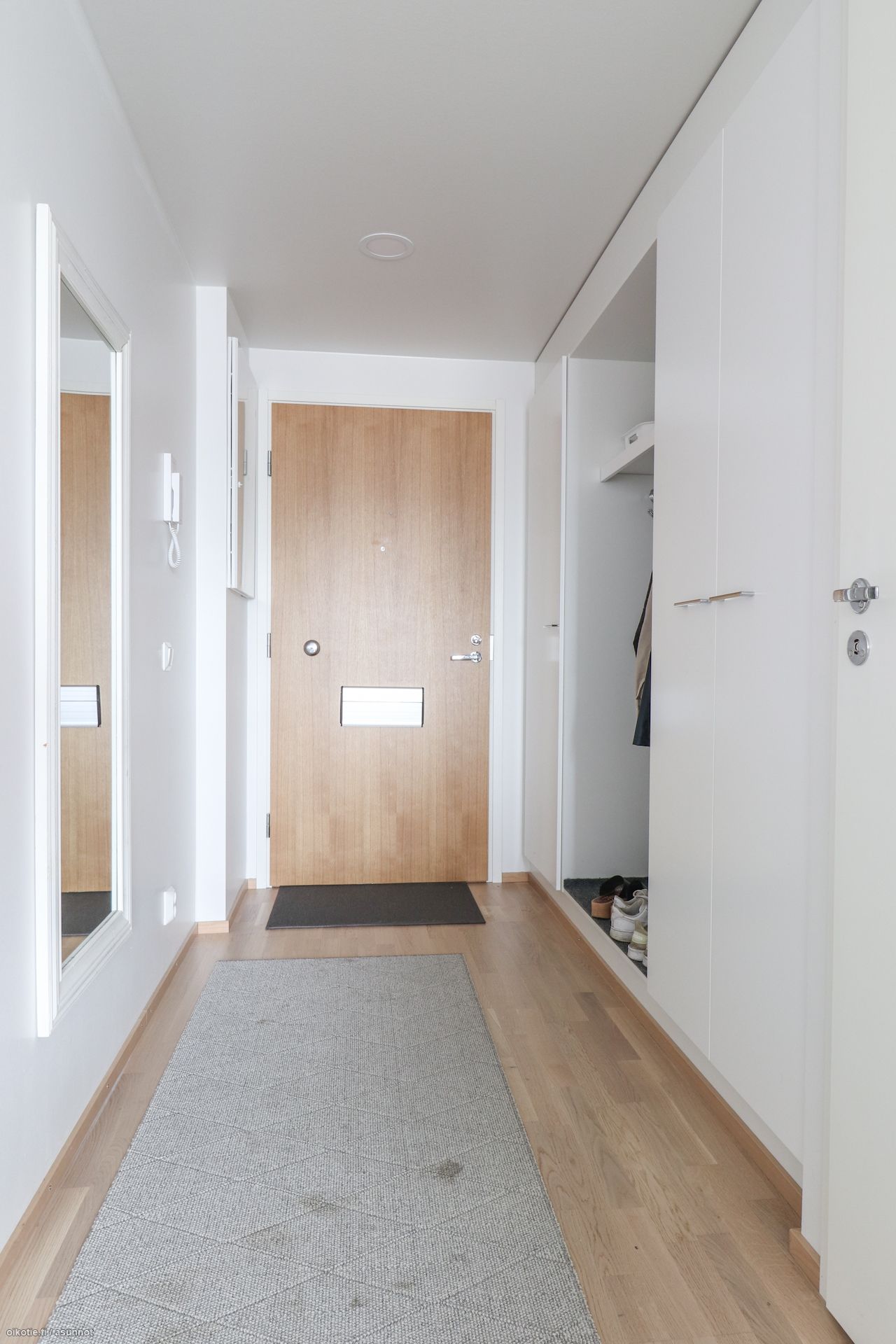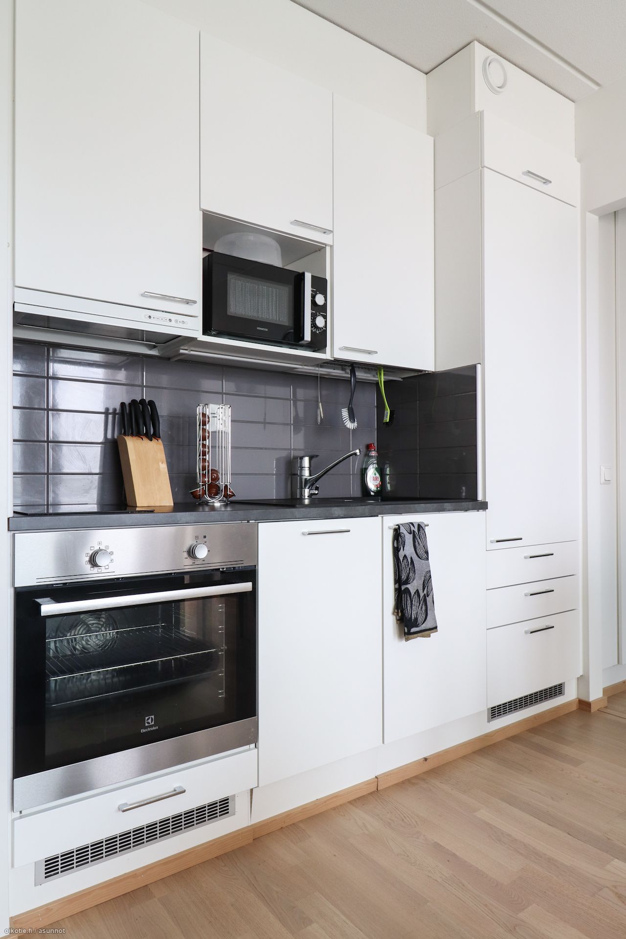 Tässä kolmannen (3/8) kerroksen valoisassa kaksiossa on laadukas parkettilattia, ja huoneiston seinät ja katto on maalattu valkoiseksi. Keittiö on varustettu kalusteuunilla, keraamisella keittotasolla, jääkaappipakastimella sekä astianpesukoneella. Kaakeloitu kylpyhuone on varustettu mukavuuslattialämmityksellä. Kylpyhuoneessa on pyykkikoneelle ja kuivausrummulle liitännät ja tilavaraus. Lisäksi oma iso parveke sekä makuuhuoneesta löytyvä vaatehuone lisää asumisen mukavuutta. Jokaiselle huoneistolle löytyy oma häkkivarasto, ja asukkaiden pyörille on erillinen pyörävarasto. Halutessasi voit varata itsellesi saunavuoron taloyhtiön saunasta.
