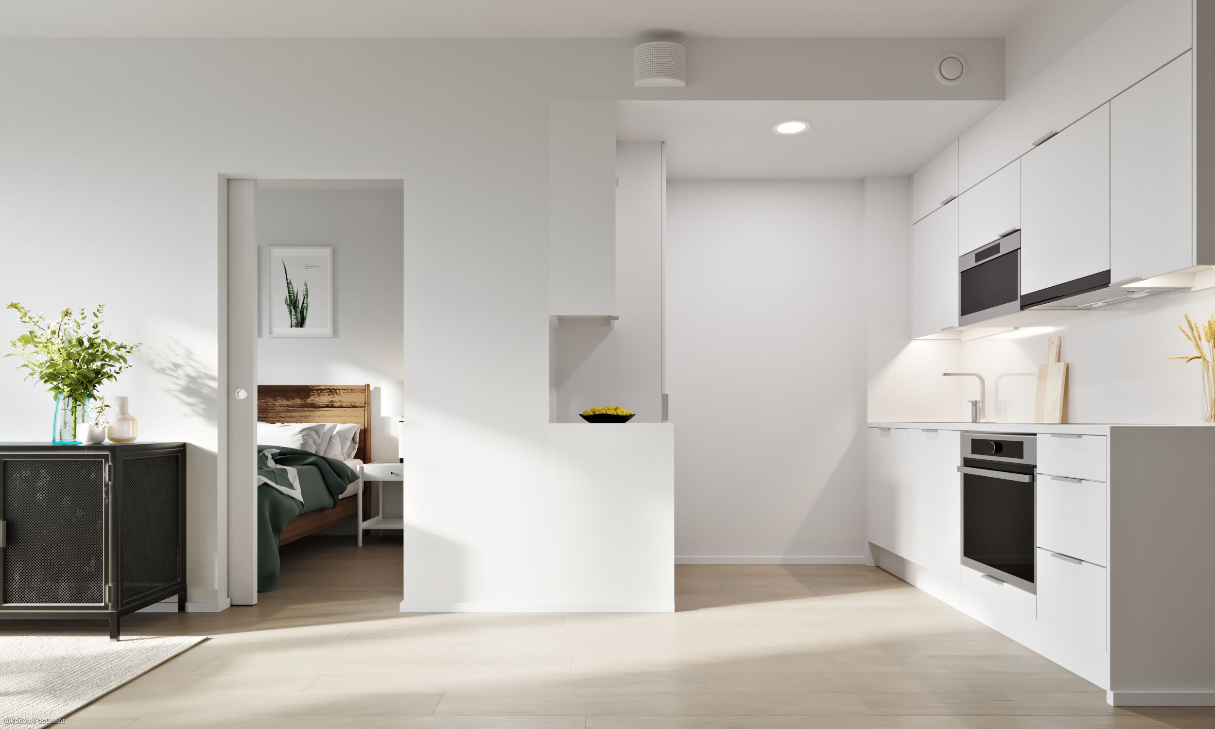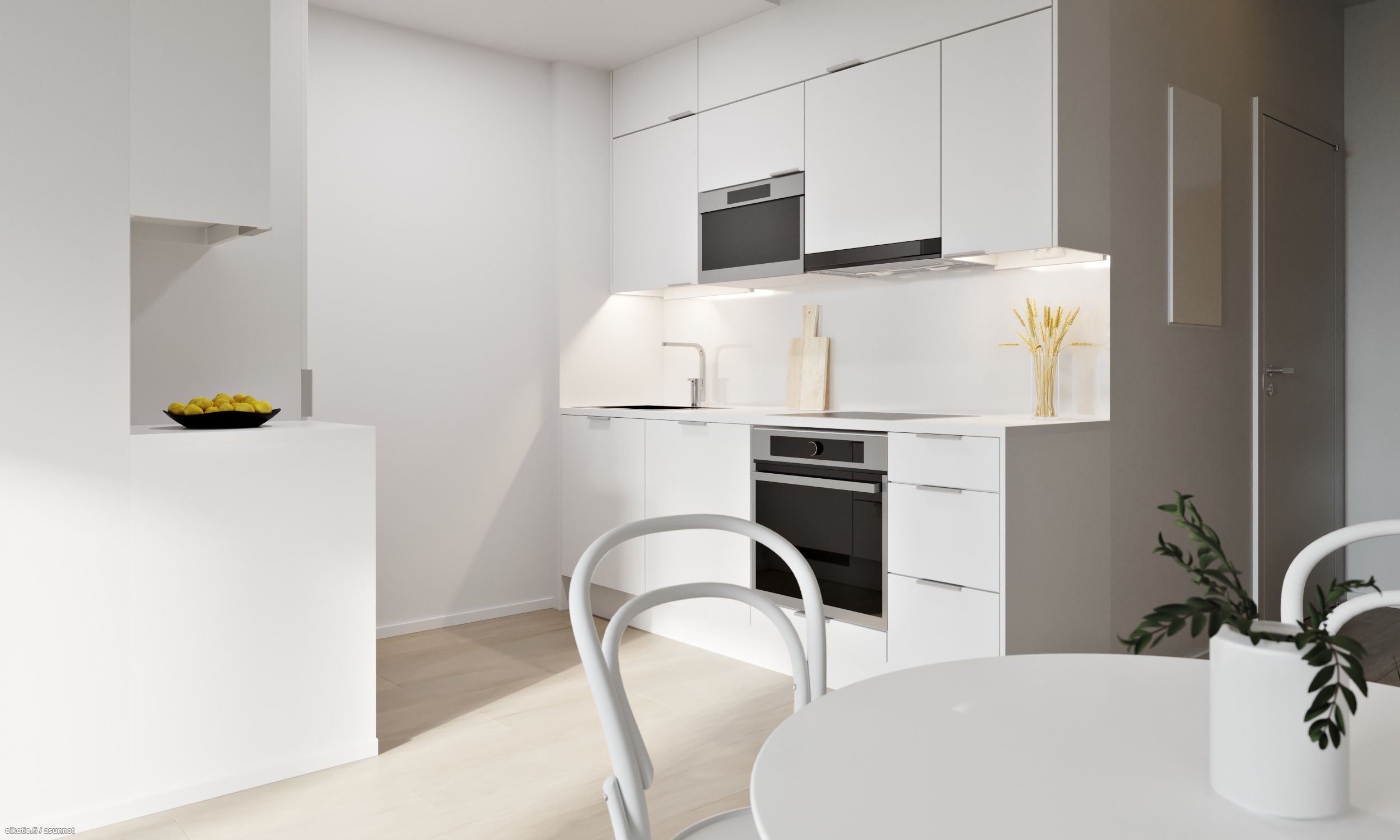 Kaikissa asunnoissa on kustannustehokas vesikiertoinen lattialämmitys. Modernista avokeittiöstä löytyvät integroidut kodinkoneet ja mukavasti kaappitilaa. Kylpyhuoneessa sähkökäyttöinen lattialämmitys, seinämallinen wc-istuin ja hyvin kaappitilaa. 2-osainen keittiö, jossa integroidut kodinkoneet. Asunnossa ranskalainen parveke!