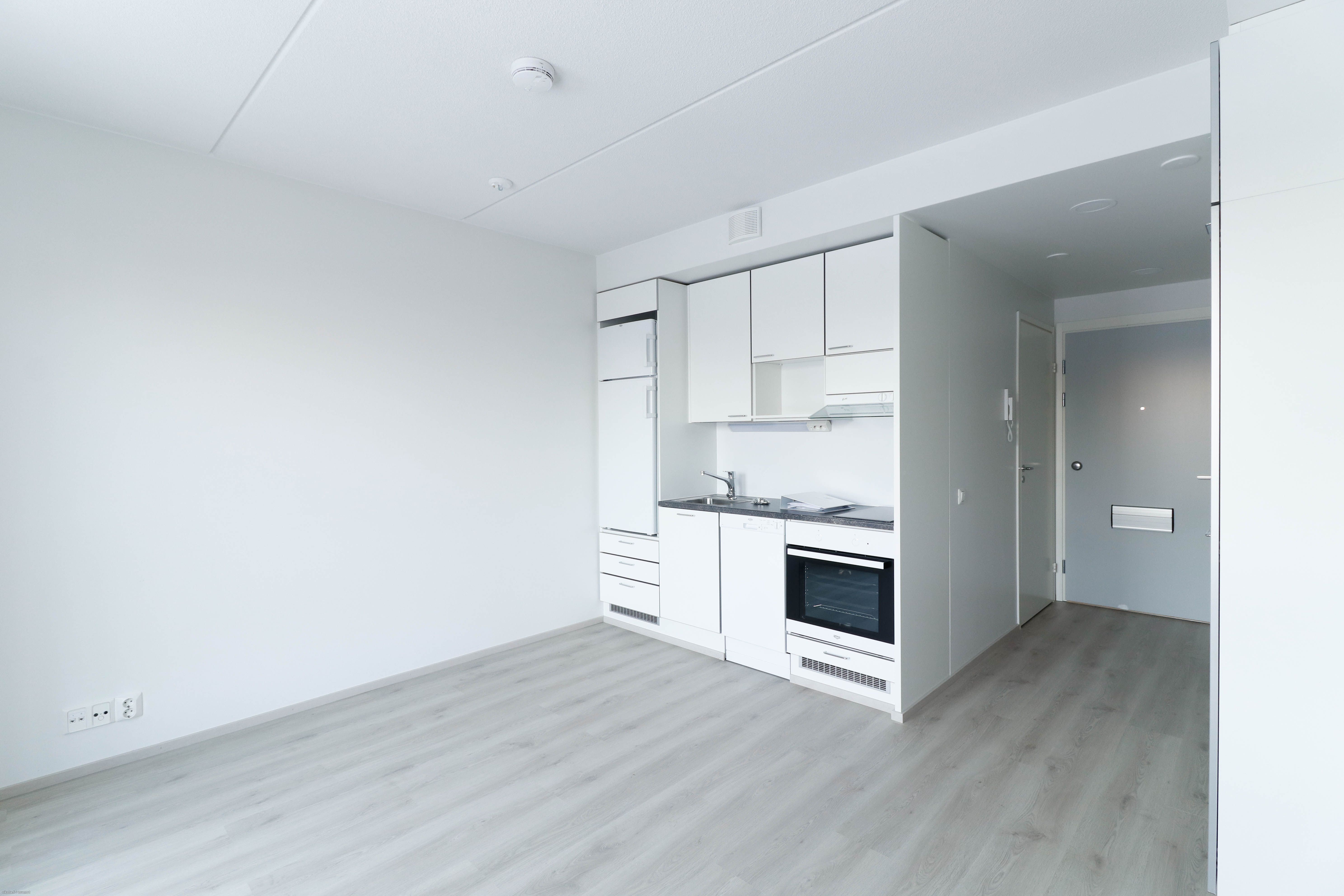 Tässä ensimmäisen (1/5) kerroksen asunnossa on vaaleat laminaattilattiat. Huoneistojen seinät ja katot ovat valkoisella maalipinnalla. Keittiöissä on 2-levyinen liesitaso, kalusteuuni, puolikorkea jää-pakastinkaappi (ns. jenkkikaappi) ja astianpesukone. Välitila on pinnoitettu laminaatilla. Tilava kylpyhuone on kauttaaltaan laatoitettu, katto on puolestaan kuusipaneelia. Kylpyhuoneessa on myös liitännät sekä tilava paikka pyykinpesukoneelle ja vaikka kuivausrummulle. Asunnossa on ranskalainen parveke lisäämässä asumisen mukavuutta.