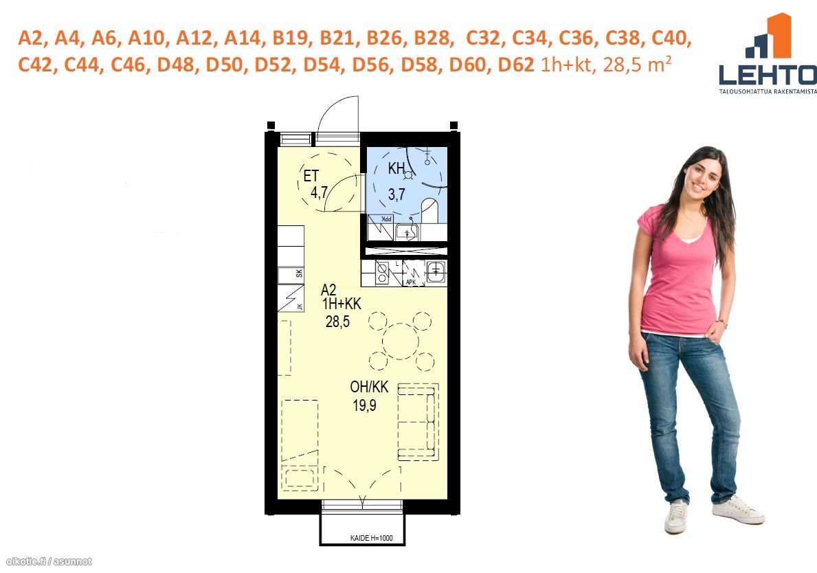 | Huoneiston kokoonpano | 1h,kt |