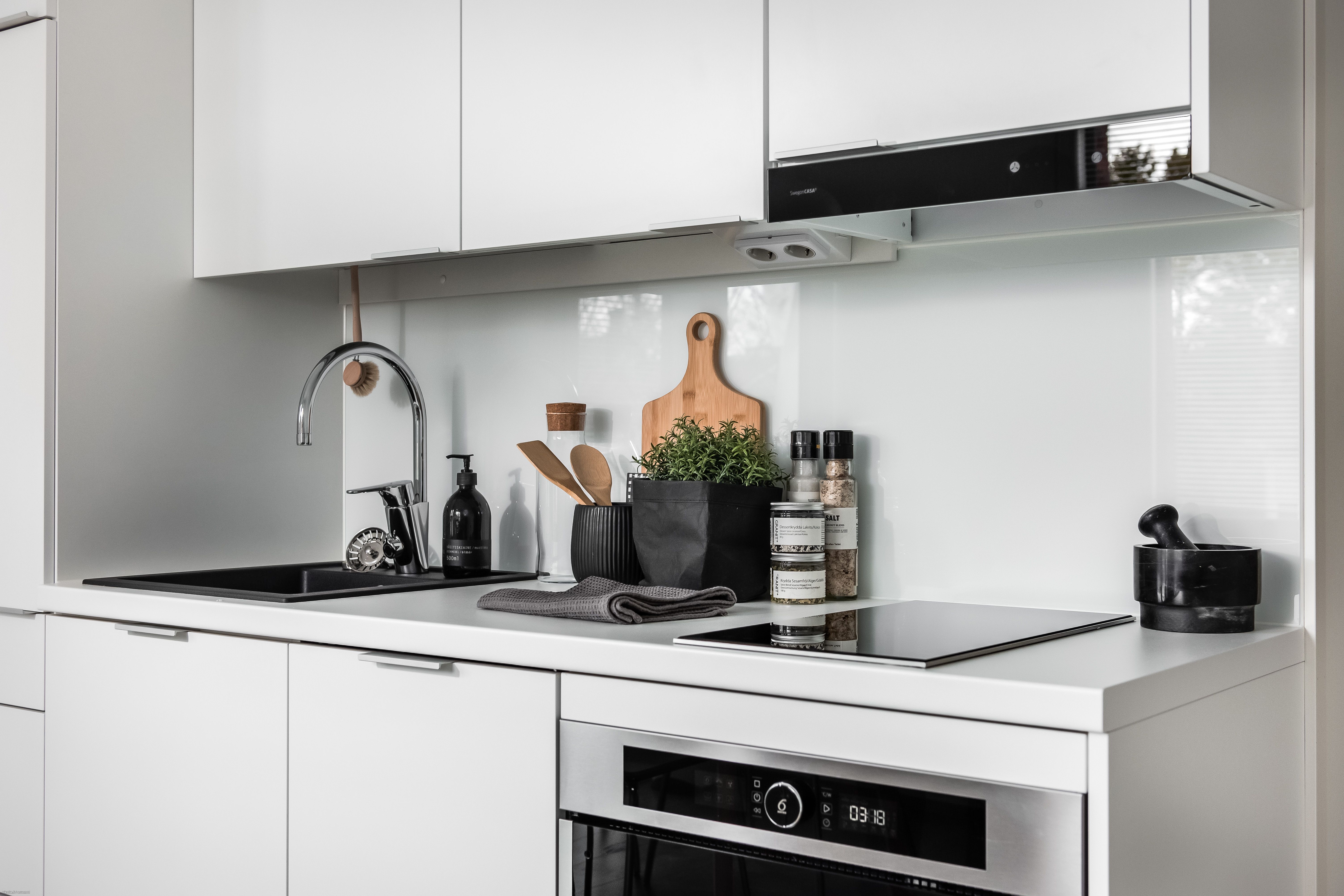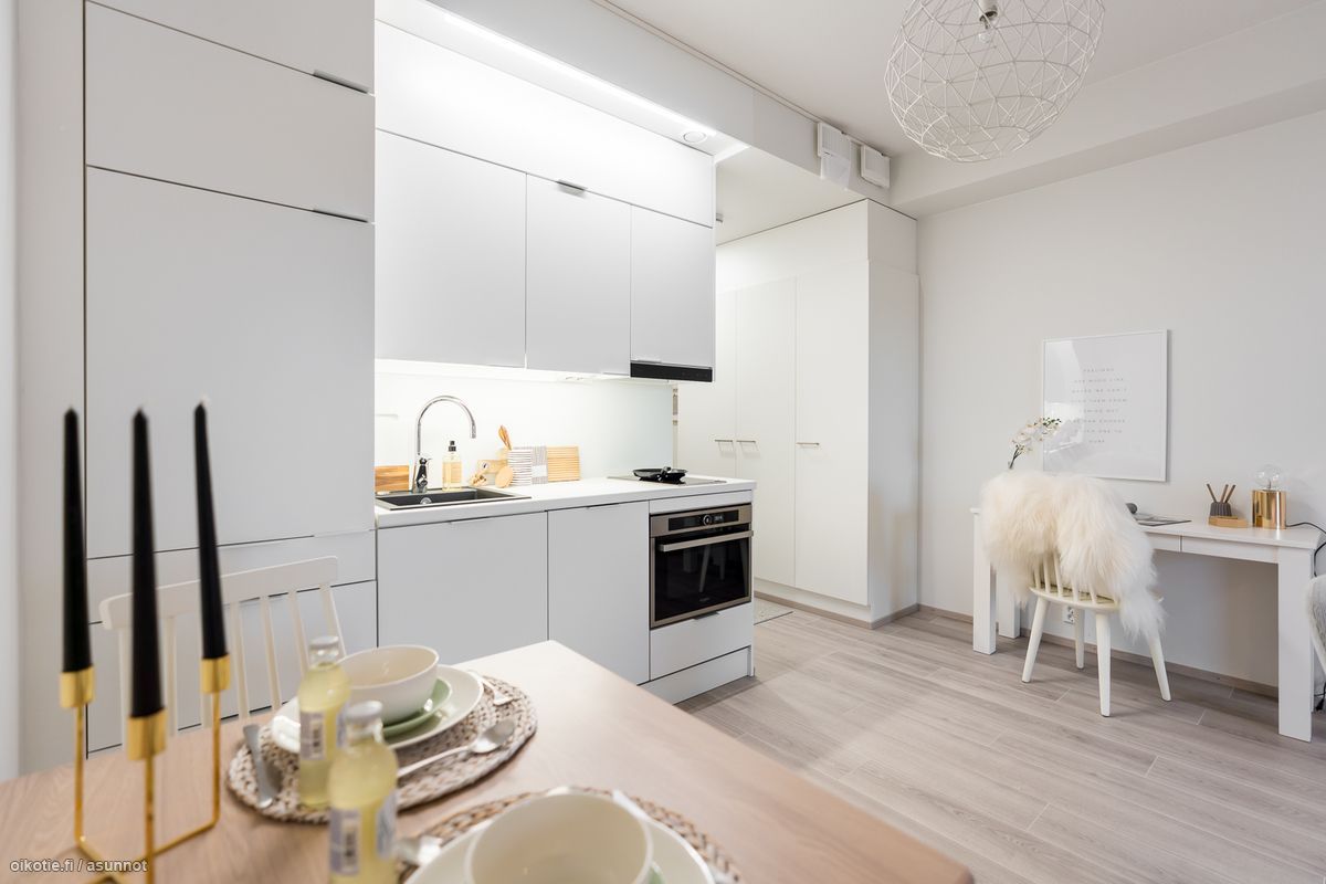 Asunto itsessään on varustettu todella fiksulla pohjalla, joten se on helppo kalustaa. Lämmitys hoituu vesikiertoisella lattialämmityksellä, joten myöskään pattereita ei ole sisustamisen tiellä. Asunnossa on runsaasti kaappitilaa. Keittiön varustukseen kuuluu liesi, erillisuuni, astianpesukone sekä jääkaappi. Kylpyhuoneessa on paikka ja liitännät pyykinpesukoneelle.