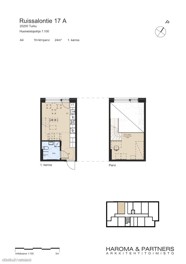 | Huoneiston kokoonpano | 1h+kt+parvi+rp |