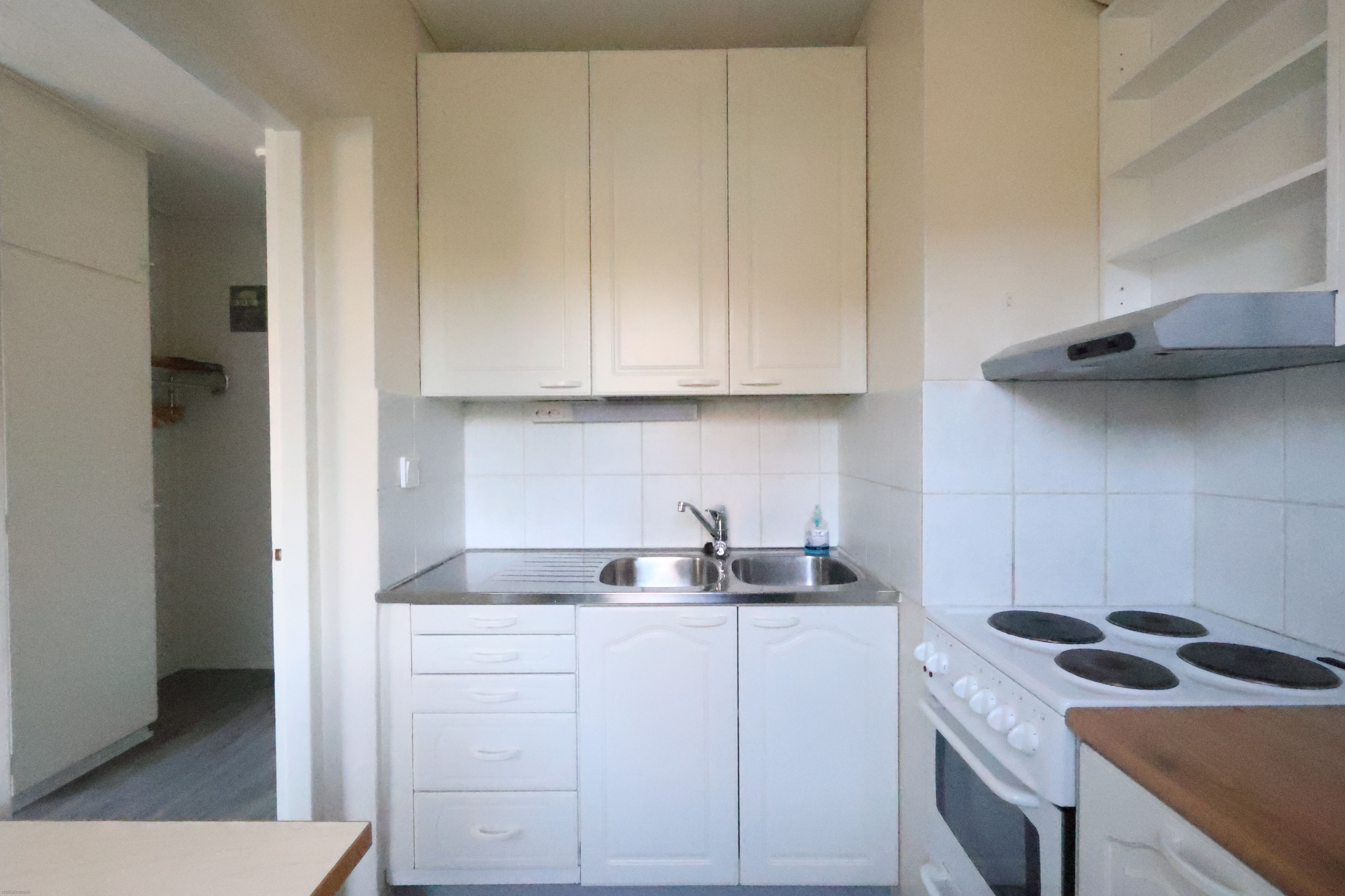 Asunnon kylpyhuoneessa on paikka ja liitännät pyykinpesukoneelle. Keittiöstä löytyy jääkaappi (ei pakastinta), hella sekä mukavasti laskutilaa. Eteisessä on hyvin kaappitilaa. Asunnossa lattiat ovat viinyliä ja seinät maalaten. Asunnon ikkunat on varustettu sälekaihtimilla.