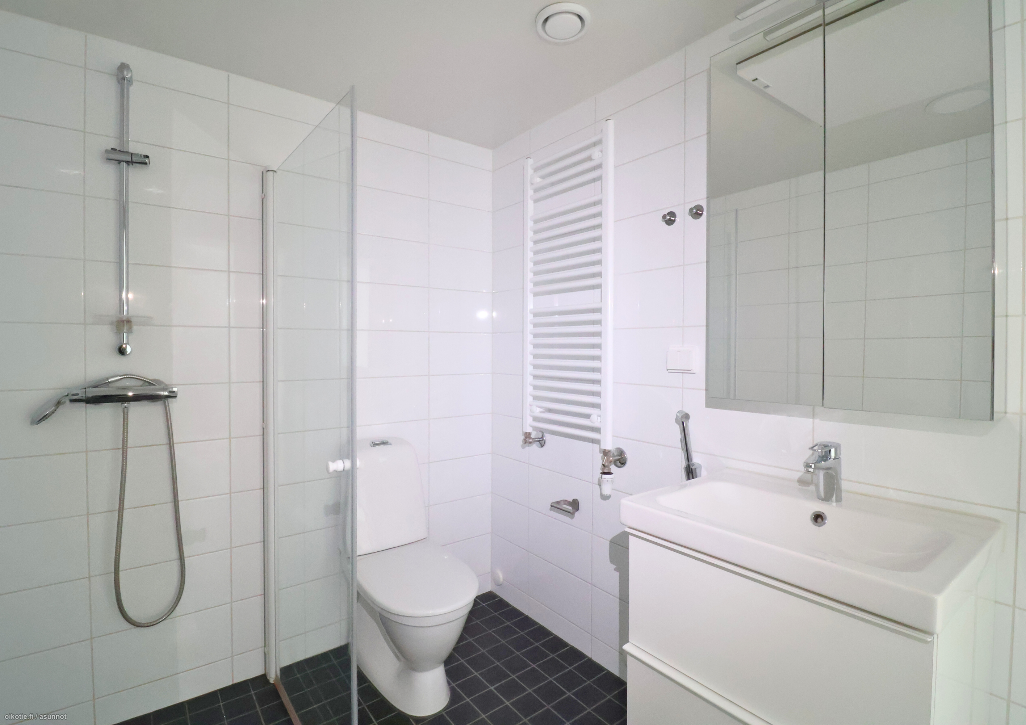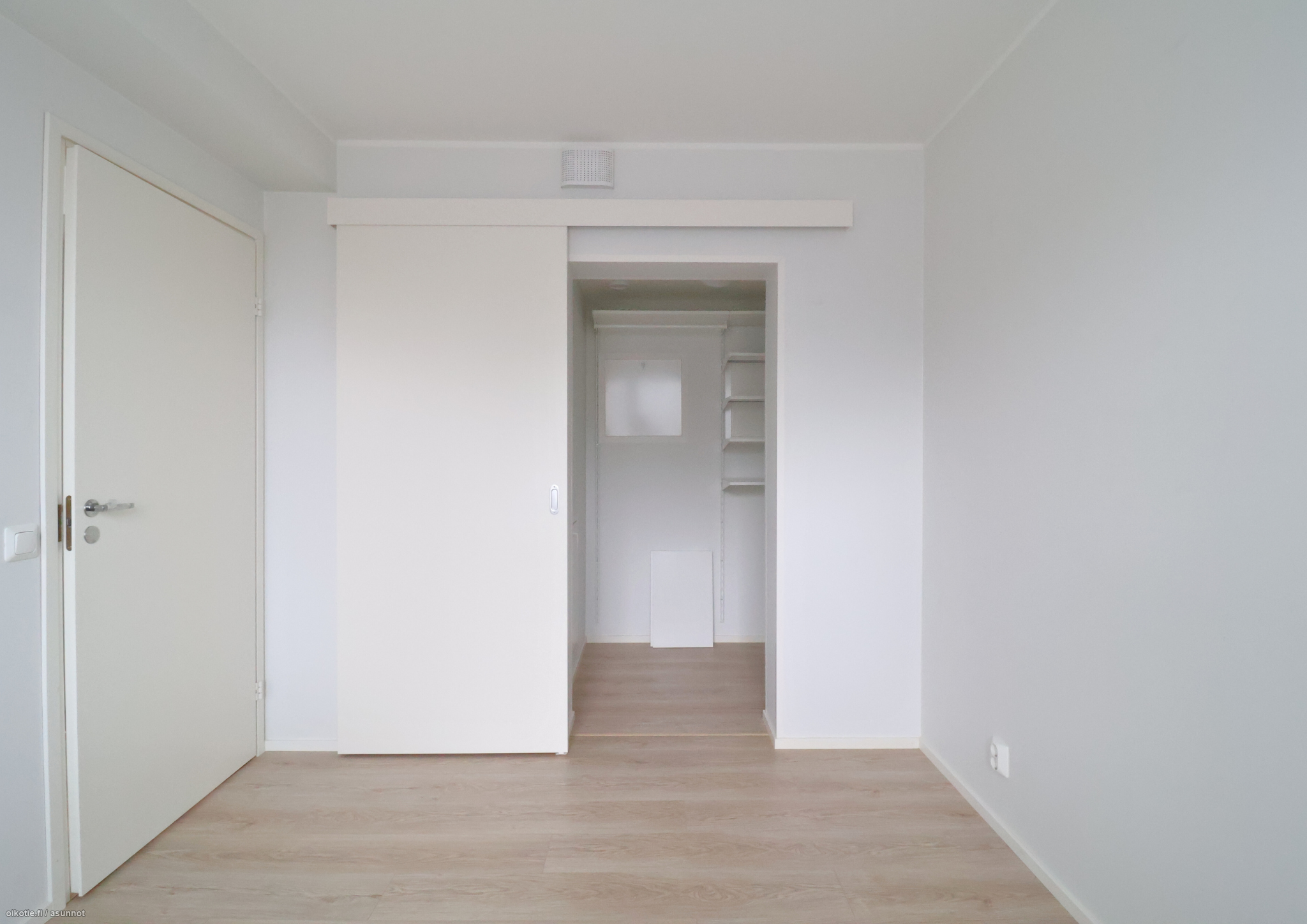 Asunto on varusteltu laadukkailla kodinkoneilla ja tyylikkäillä vaaleilla pintamateriaaleilla. Tilavassa kylpyhuoneessa on paikka ja liitännät pyykkikoneelle. Toisessa makuuhuoneessa lisäksi vaatehuone. Olohuoneesta käynti pienelle terassille.