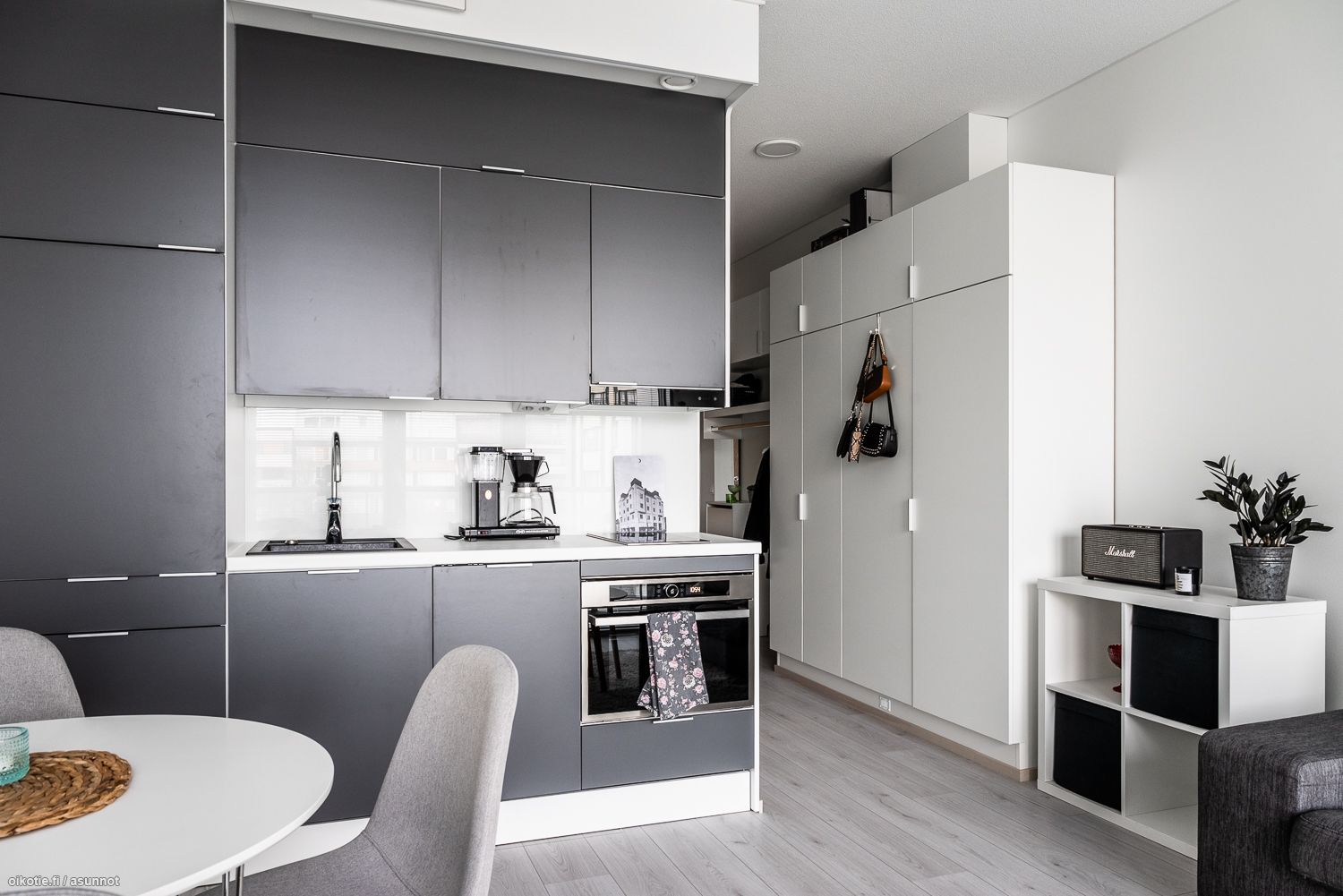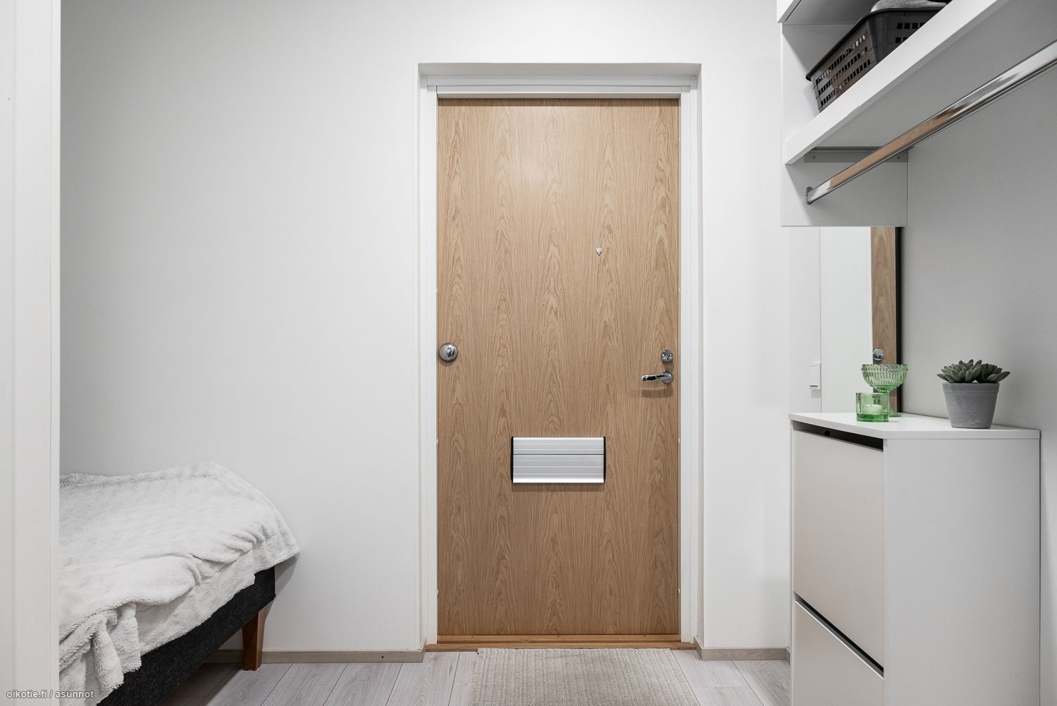 Tässä kolmannen (3/6) kerroksen näppärässä yksiössä on vaaleat seinäpinnat ja kaunis laminaattilattia. Keittiössä on yhdistelmäuuni jossa mikroaalto- ja kiertoilmatoiminto, 2-levyinen induktioliesitaso, liesikupu ja integroitu astianpesukone ja jääkaappi pakastelokerolla. Tilavassa laatoitetussa kylpyhuoneessa löytyy liitännät pyykinpesukoneelle ja kuivausrummulle. Oma parveke tuo yhden lisähuoneen lisää aina keväästä alkaen!