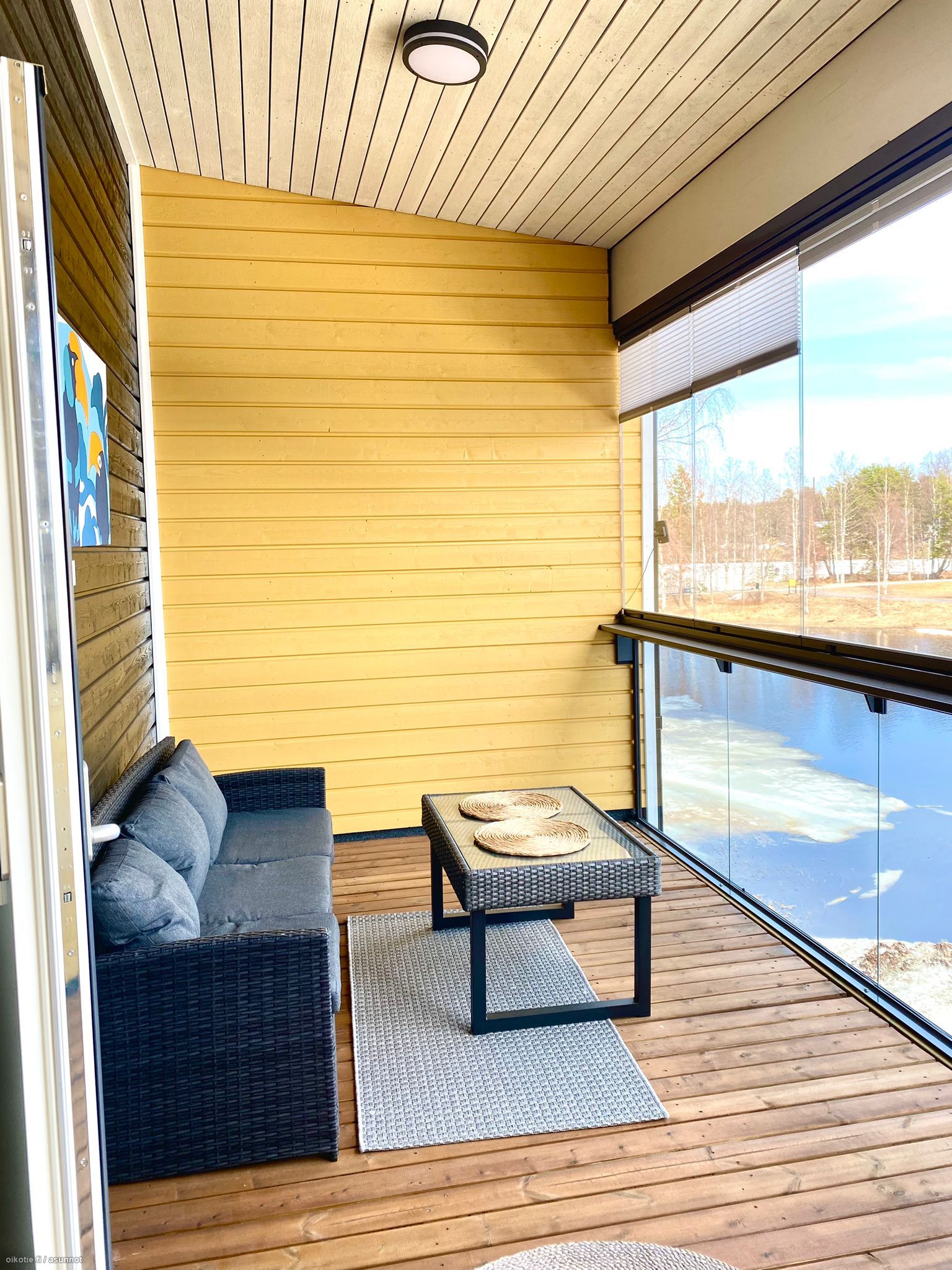 Pirttijärven rantaan, kivenheiton päähän Sotkamon keskustasta rakentui vuonna 2022 persoonallinen luhtitalo kokonaisuus, josta vuokrattavana tämä toisen (2/2) kerroksen asunto 1.3.2026 alkaen (sovittavissa aikaisemminkin). Nimensä Asunto Oy Sotkamon Konstanranta saa viereisellä tontilla sijaitsevasta Veikko Huovisen talosta, jossa kirjailija asui.