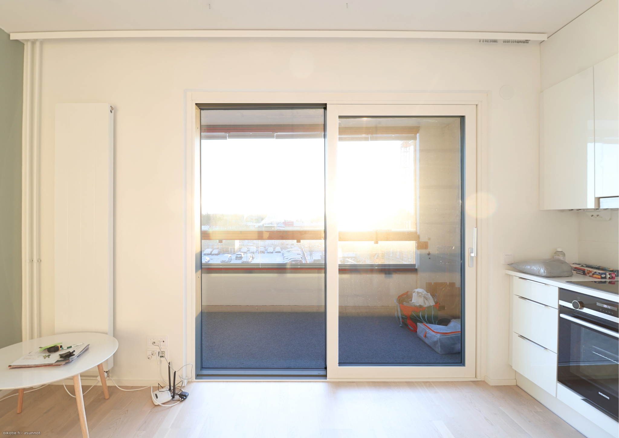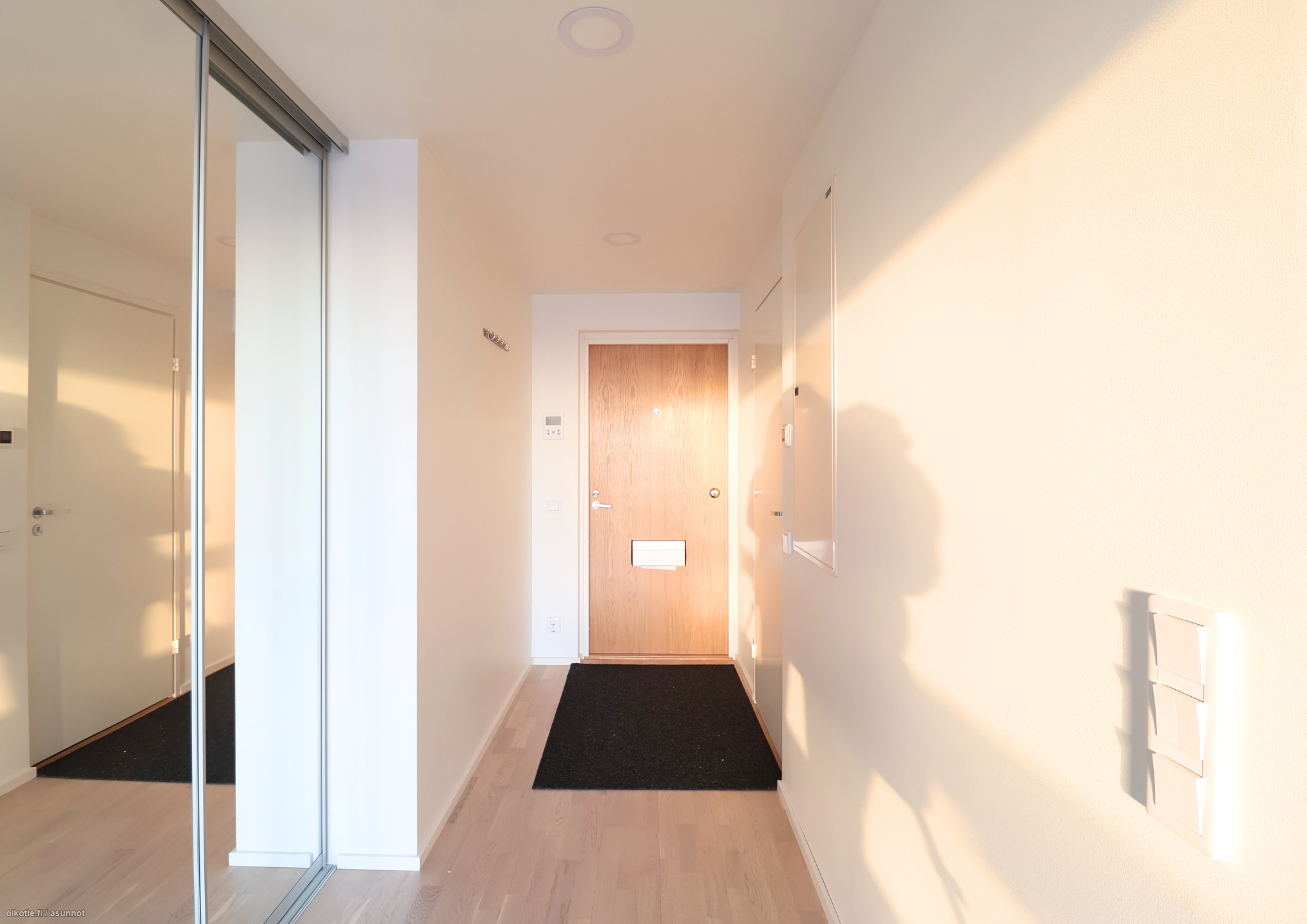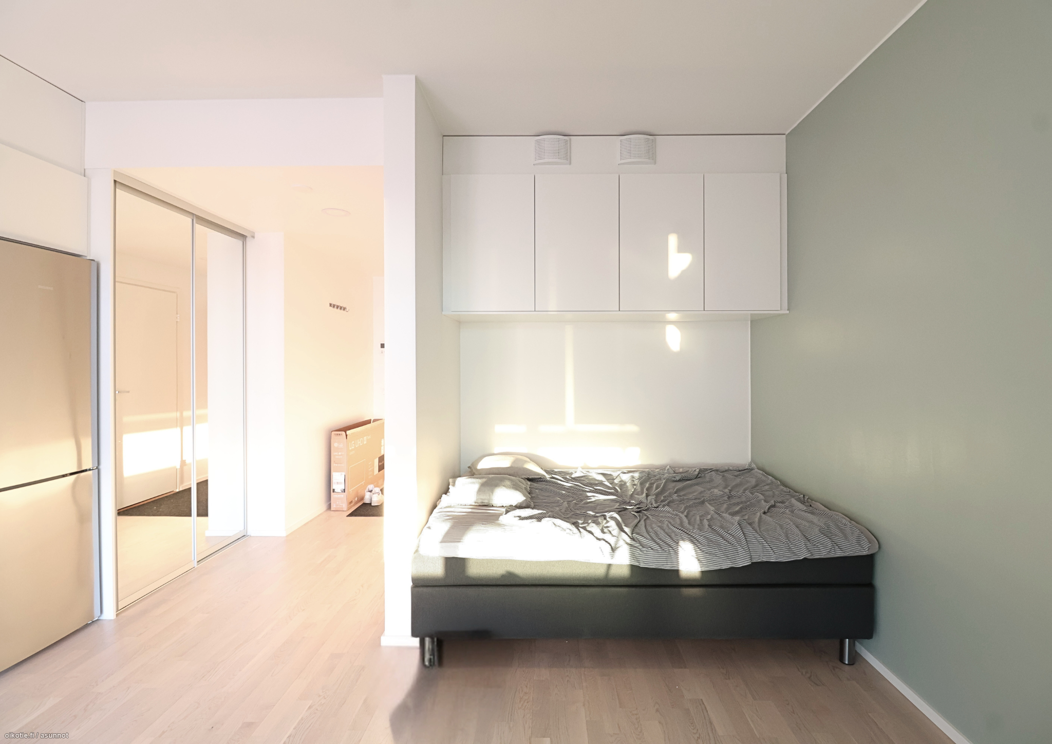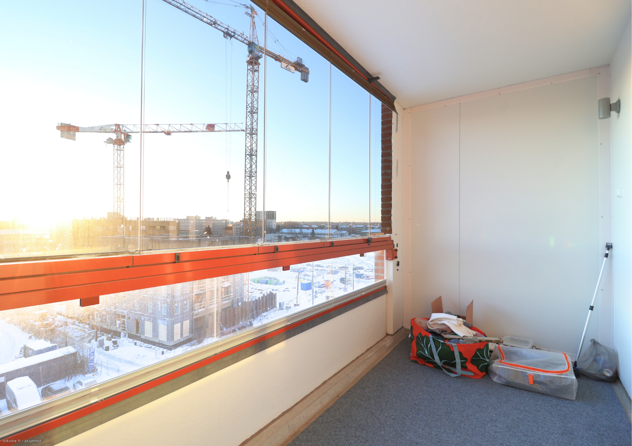 Asunto sijaitsee 6. kerroksessa. Näkymät suurelta parvekkeelta ovat upeat ja kantavat kauas Herttoniemen kattojen ylle. Asuntoon tulvii valoa isojen ikkunoiden ansiosta ja saa asunnon tuntumaan suuremmalta kuin onkaan. Keittiön varustukseen kuuluu uuni ja liesi, jääkaappipakastin sekä integroitu astianpesukone ja mikro. Alkovi jakaa tilaa kätevästi ja sinne mahtuu hyvin hieman leveämpikin sänky. Kaikki tila on käytetty hyödyllisesti, sillä alkovista löytyy kaappeja tuomassa lisää säilytystilaa. Eteisessä on suuret kaapit peilillisillä liukuovilla. Kylpyhuone on tilava ja sieltä löytyy tilavaraus sekä liitännät pyykinpesukoneelle.